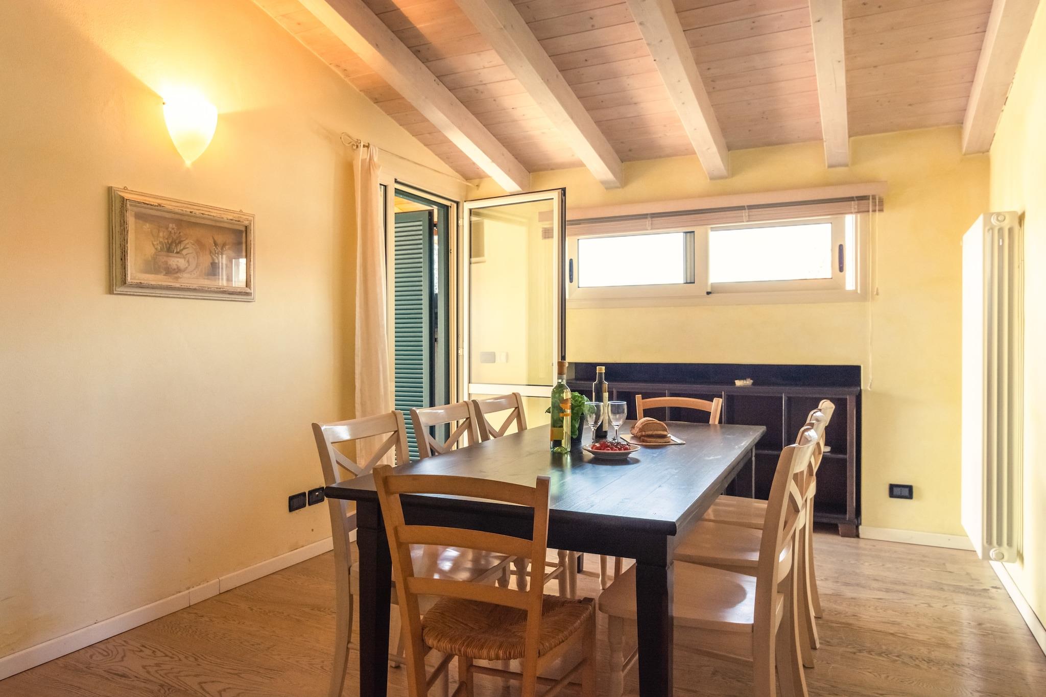 Bare et par kilometer fra søen og centrum af Salò er en agriturismo med tretten hektar jord, olivenlunde, en sø og et tårn fra 1400. For golfspillere er der en golfbane med ni huller, Driving Range, Putting Green , Pitching Green. Der er også en swimmingpool med hydromassage, bar og restaurant. De fuldt renoverede lejligheder tilbyder komfort er aircondition, satellit-tv, pengeskab, mikroovn, opvaskemaskine og liggestole. Et indkøbscenter med isbutikker, pizzeriaer og restauranter ligger 200 m væk. Salò er et elegant feriested med promenade, smalle gyder, pladser og charmerende huse. Området er kuperet. Nyd en dejlig afslappende ferie i en hyggelig lejlighed med privat terrasse.