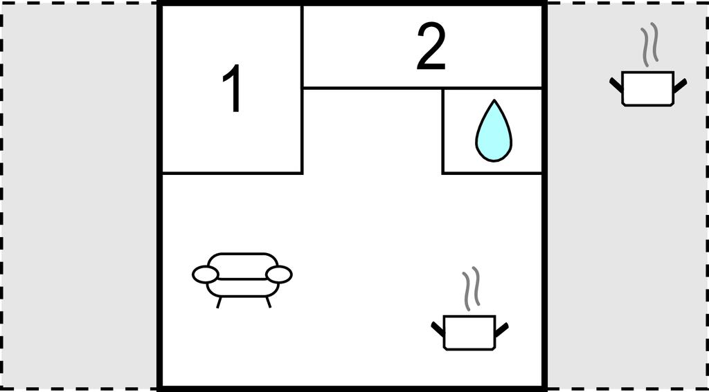 Opholdsstue/køkken 40m2 - 2 Sovepladser. (Sofa, madras eller lignende).