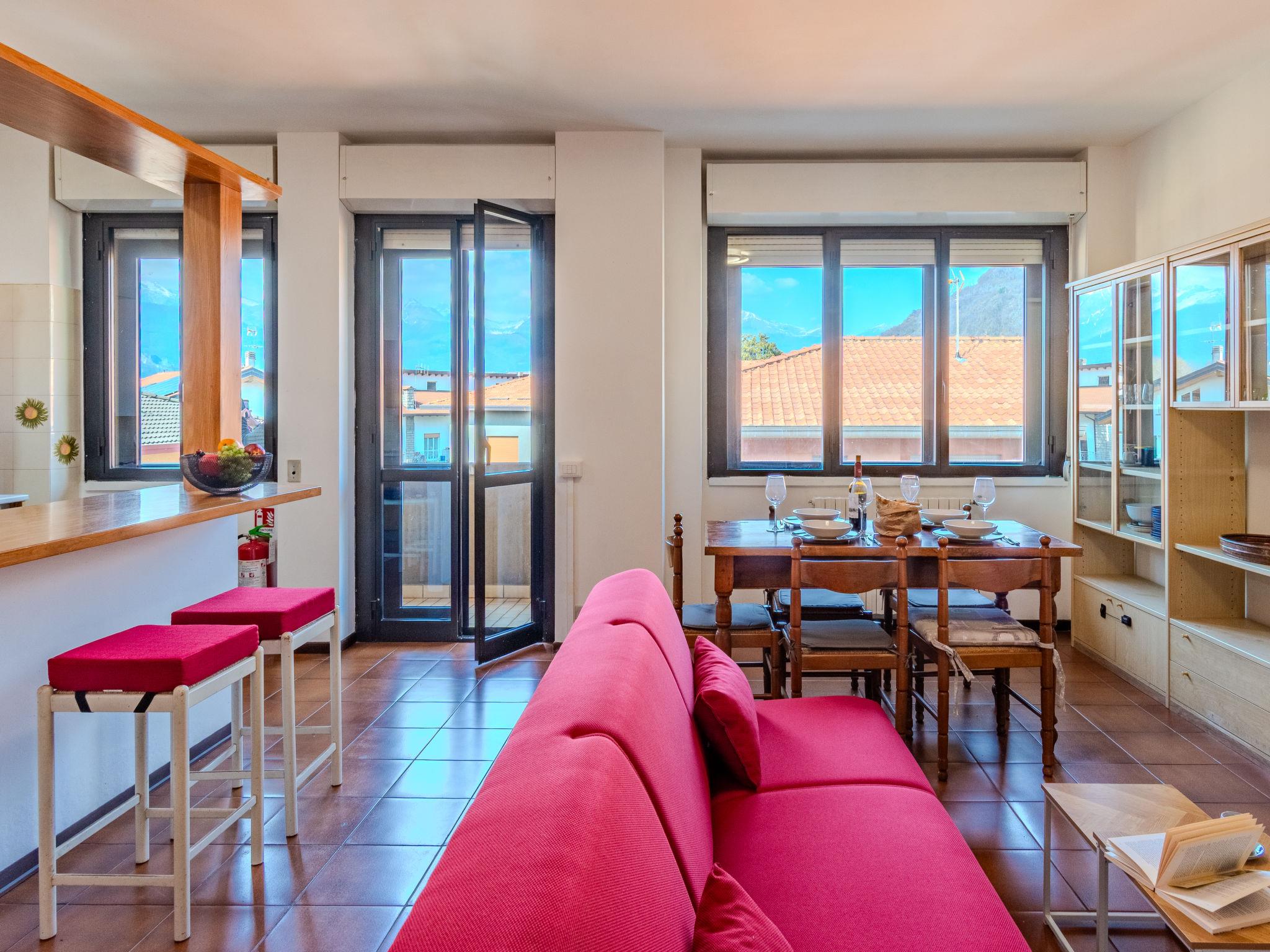 "Como Lake Blu & Green", 3-room apartment 100 m2 on 2nd floor. Comfortable furnishings: large living/dining room with dining table and TV. Exit to the balcony. 1 room with 1 double bed. Exit to the balcony. 1 room with 2 beds. Exit to the balcony. Open kitchen (oven, 2 induction hot plates, toaster, kettle, electric coffee machine) with bar. Shower/bidet/WC. Gas heating. Heating available only from 15.10. to 15.04. 3 small balconies. Balcony furniture. Beautiful view of the countryside. Facilities: washing machine, children's high chair, baby cot for up to 2 year olds, hair dryer. Internet (WiFi, free). Please note: non-smokers only. Maximum 1 pet/ dog allowed. Fire extinguisher. IT097030C2FO97EJ3K