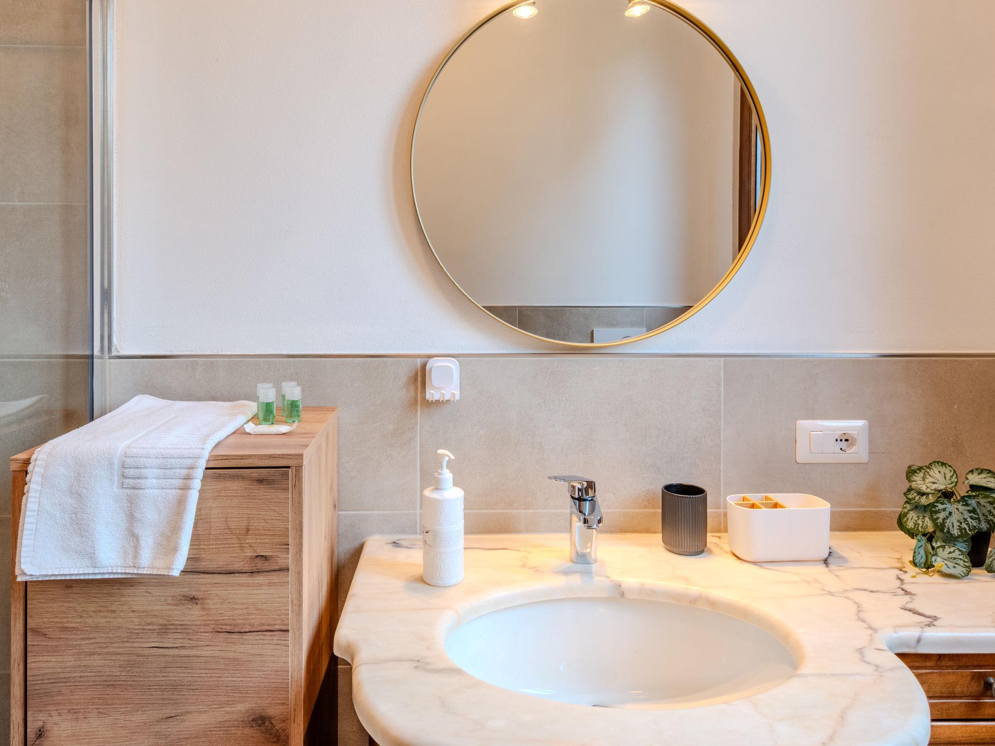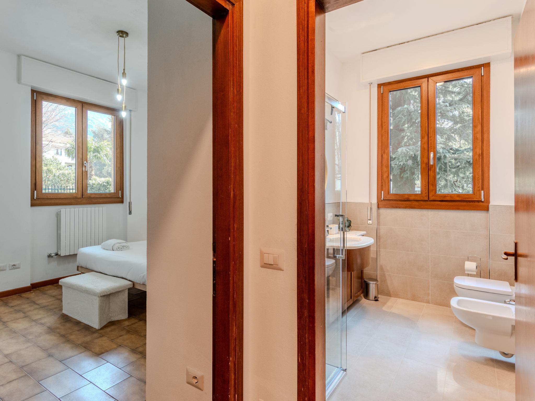 "Giardino Bonsai", 3-room apartment 70 m2, on the upper ground floor. Bright, comfortable furnishings: open living/sleeping room with 1 sofabed and TV. Exit to the garden, to the terrace. 1 room with 1 double bed. 1 room with 2 beds. Kitchen (dishwasher, 4 induction hot plates, toaster, microwave, electric coffee machine). Shower/bidet/WC. Gas heating. Heating available only from 15.10. to 15.04. Terrace, small garden. Terrace furniture. Facilities: washing machine, hair dryer. Internet (WiFi, free). Garage (1 car), height 220 cm, width 240 cm. Please note: non-smokers only. Maximum 1 pet/ dog allowed. Private entrance, fire extinguisher. IT097030C2AZHJMM5X