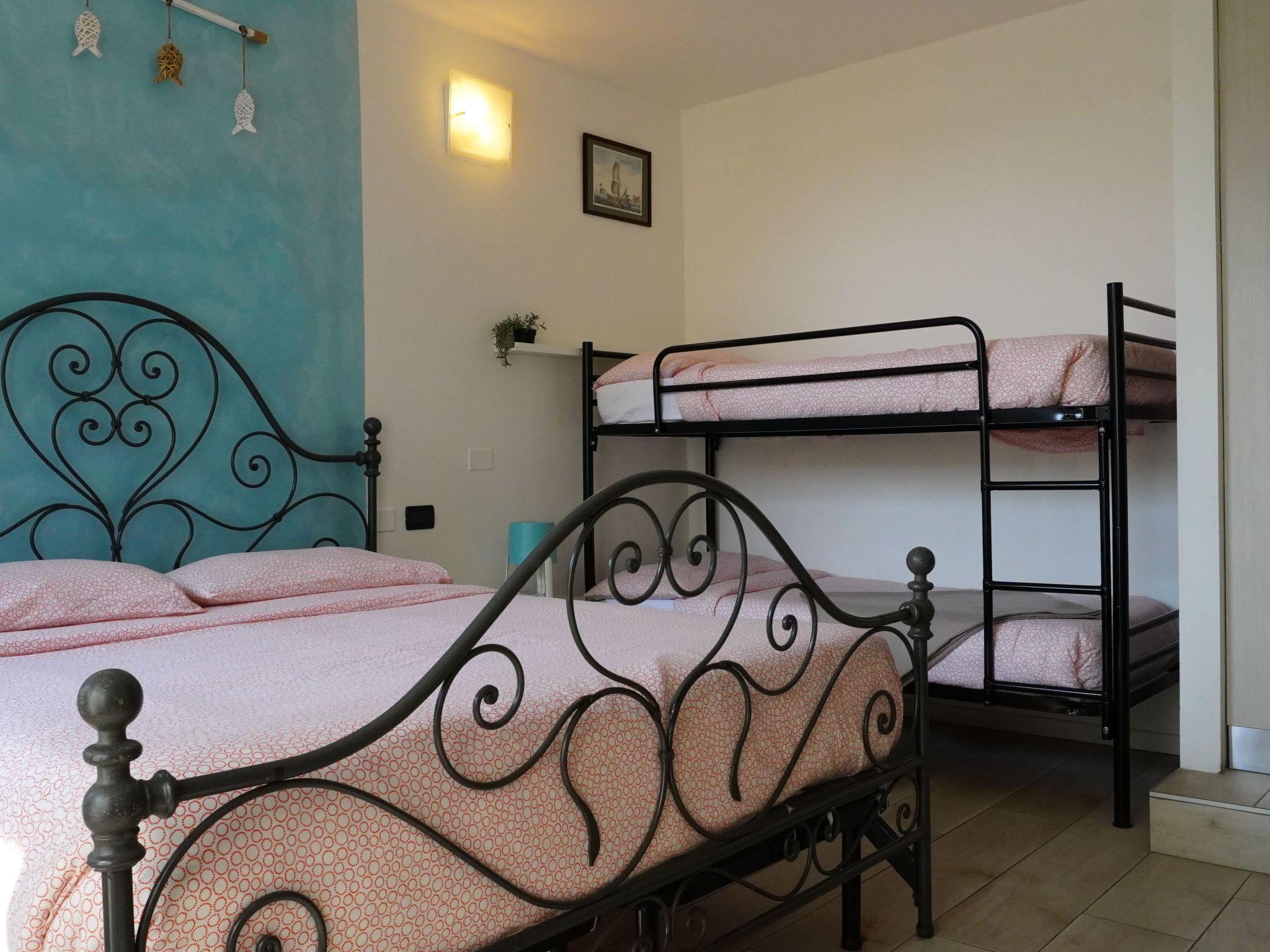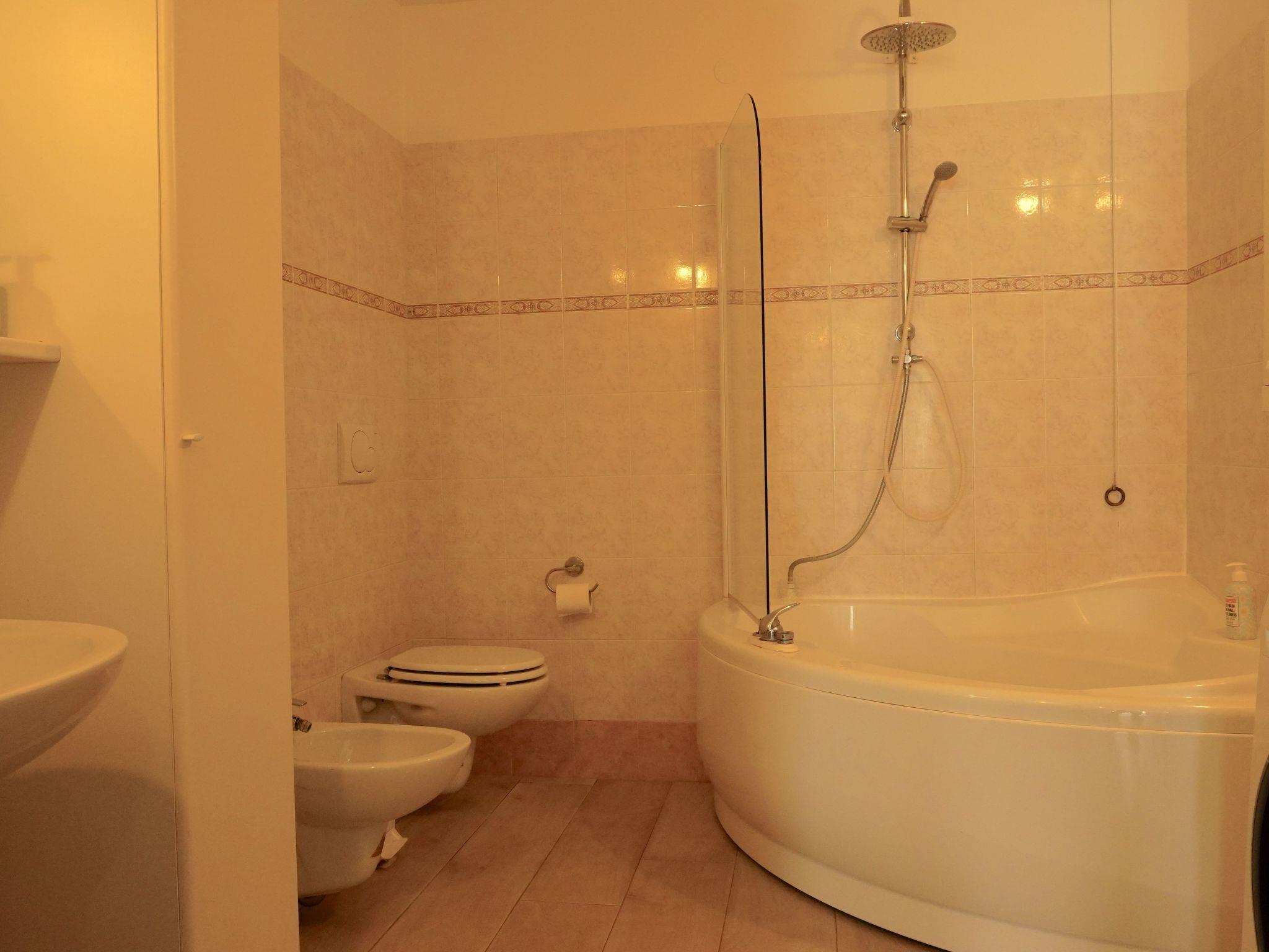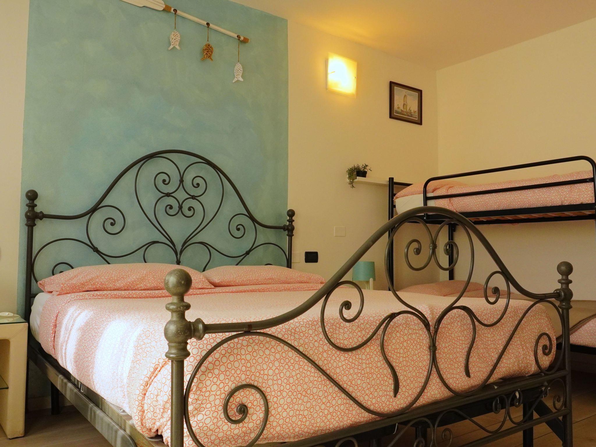 The interior of the studio is designed for maximum comfort and practicality. It is furnished with a double bed and a bunk bed, ideal for accommodating both families and small groups of friends. For those times when you prefer to dine indoors, you will find a practical dining area with a small kitchenette. In addition, the flat boasts a large bathroom with a luxurious corner bath, perfect for relaxing after a busy day.