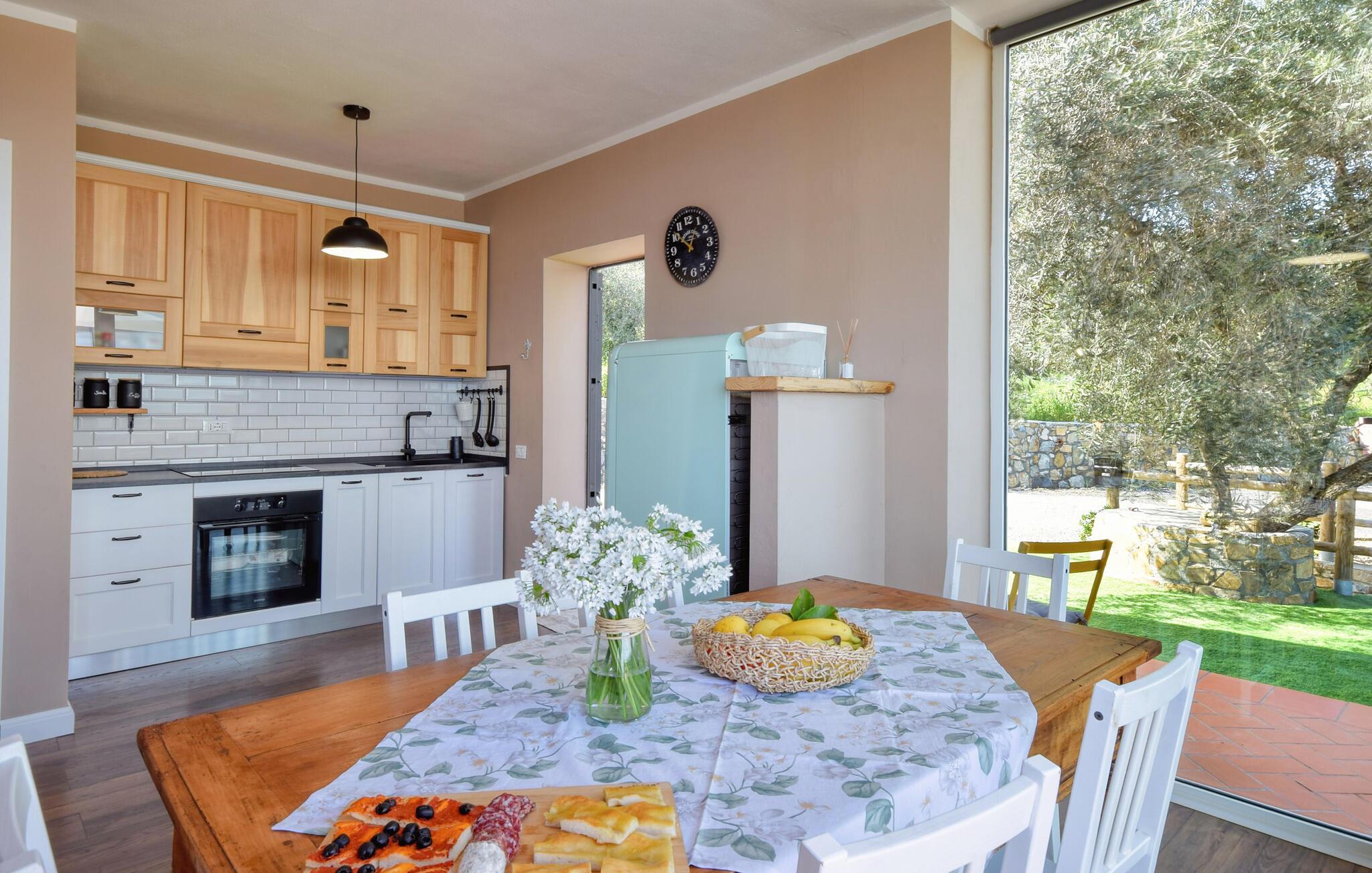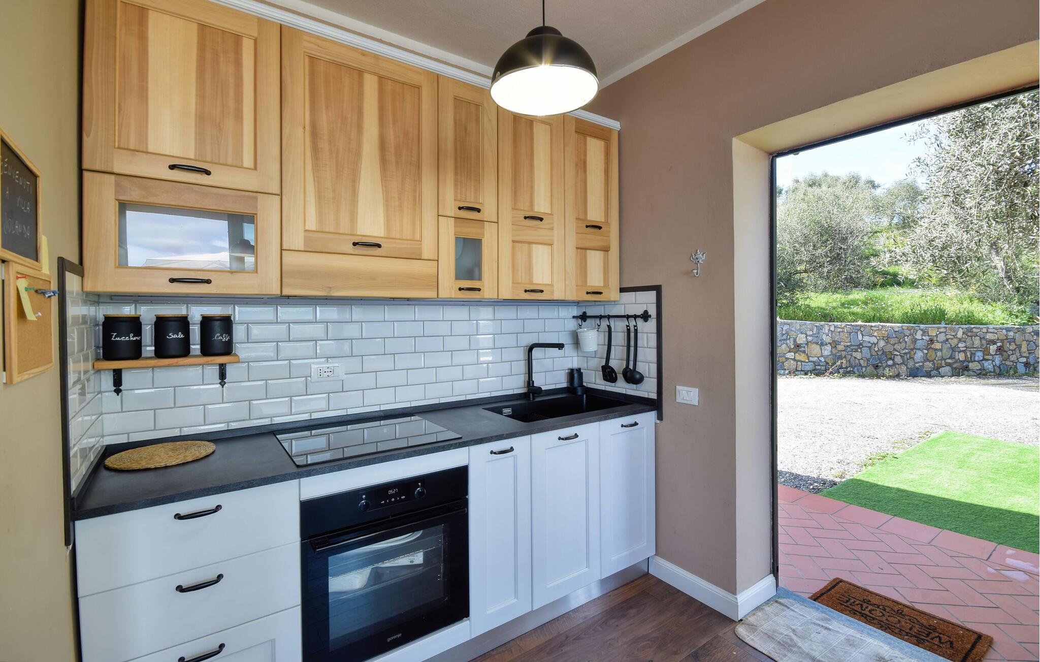 Velkommen til dette hyggelige hus, der har en helt fantastisk beliggenhed med udsigt over havet. Her får I som par eller lille familie alt, I behøver til en afslappende og ubekymret ferie. Indretningen fremtræder lyst og venligt, og med de gode faciliteter kan I hygge jer med at tilberede noget lækkert mad, som I kan nyde ved spisebordet med en smuk udsigt gennem de store vinduer.