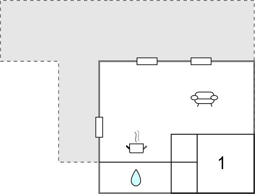 Opholdsstue/køkken 30m2 - 1 Soveplads. (Sofa, madras eller lignende).