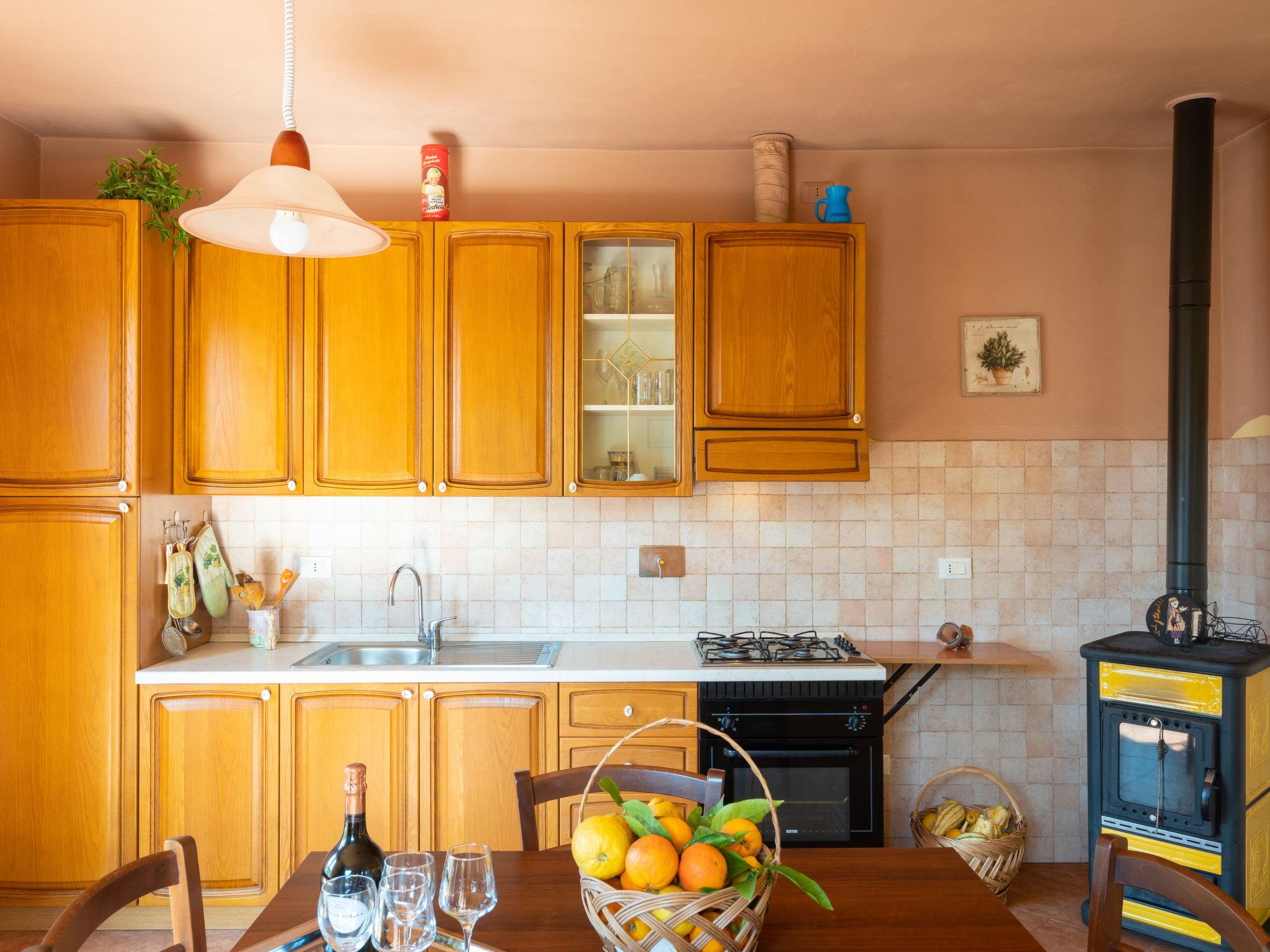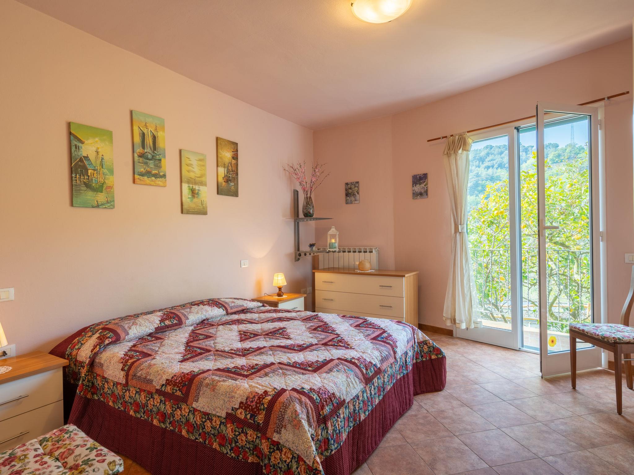"Trinità", 2-room house 50 m2. Cosy furnishings: living/sleeping room with 1 double sofabed, dining table, satellite TV and wood-burning stove. Exit to the terrace. 1 room with 1 french bed (160 cm). Open kitchen (oven, 4 gas rings, toaster, freezer, electric coffee machine) with wood-burning stove. Hip bath/WC. Gas heating. Heating available only from 01.11. to 30.04. Terrace. Terrace furniture, barbecue (portable), deck chairs (2). Beautiful distant view of the valley, the countryside and the ocean. Facilities: washing machine, baby cot for up to 2 year olds. Internet (WiFi, free). Maximum 3 pets/ dogs allowed. IT008028C2QAHCM25B
