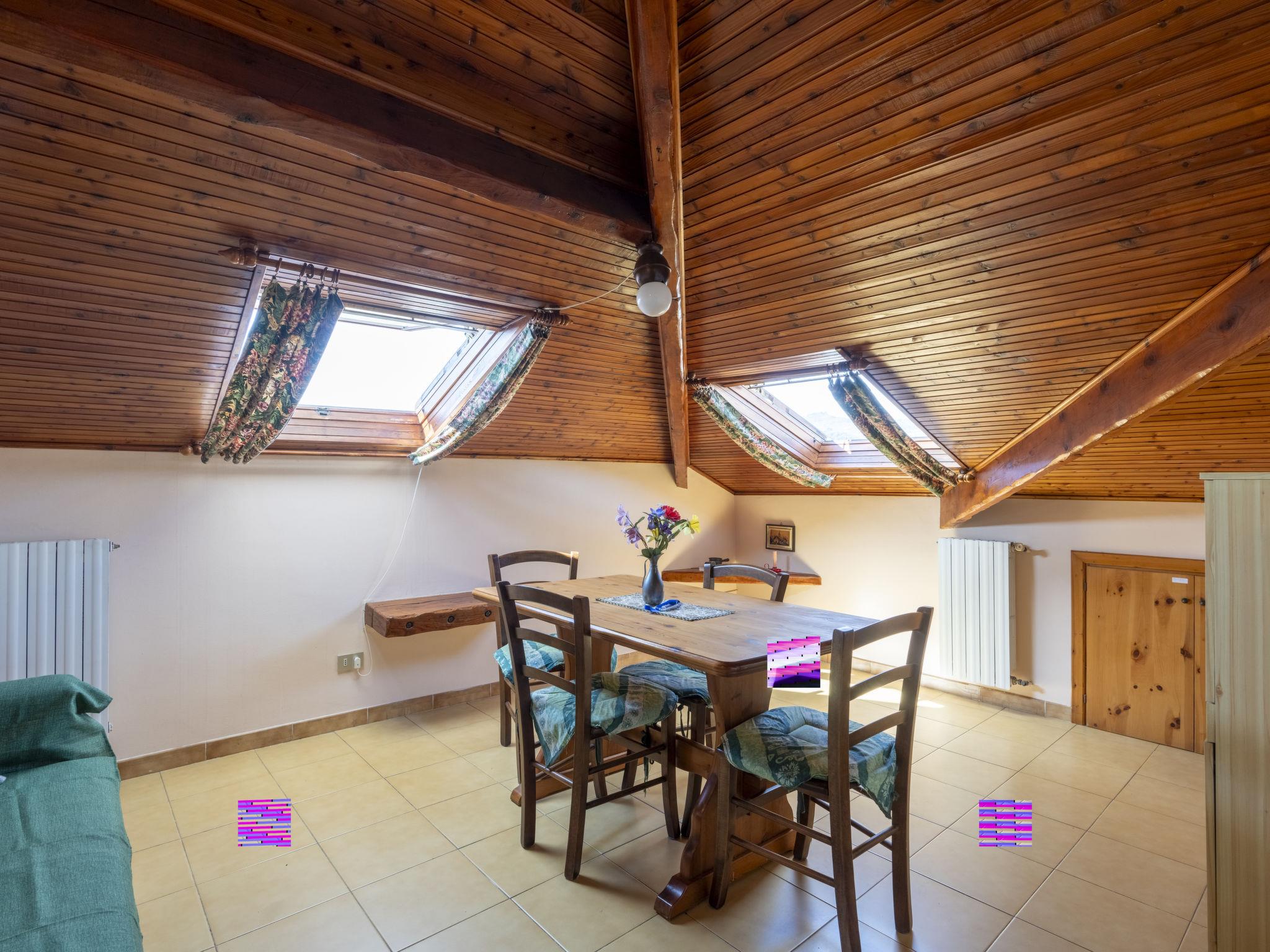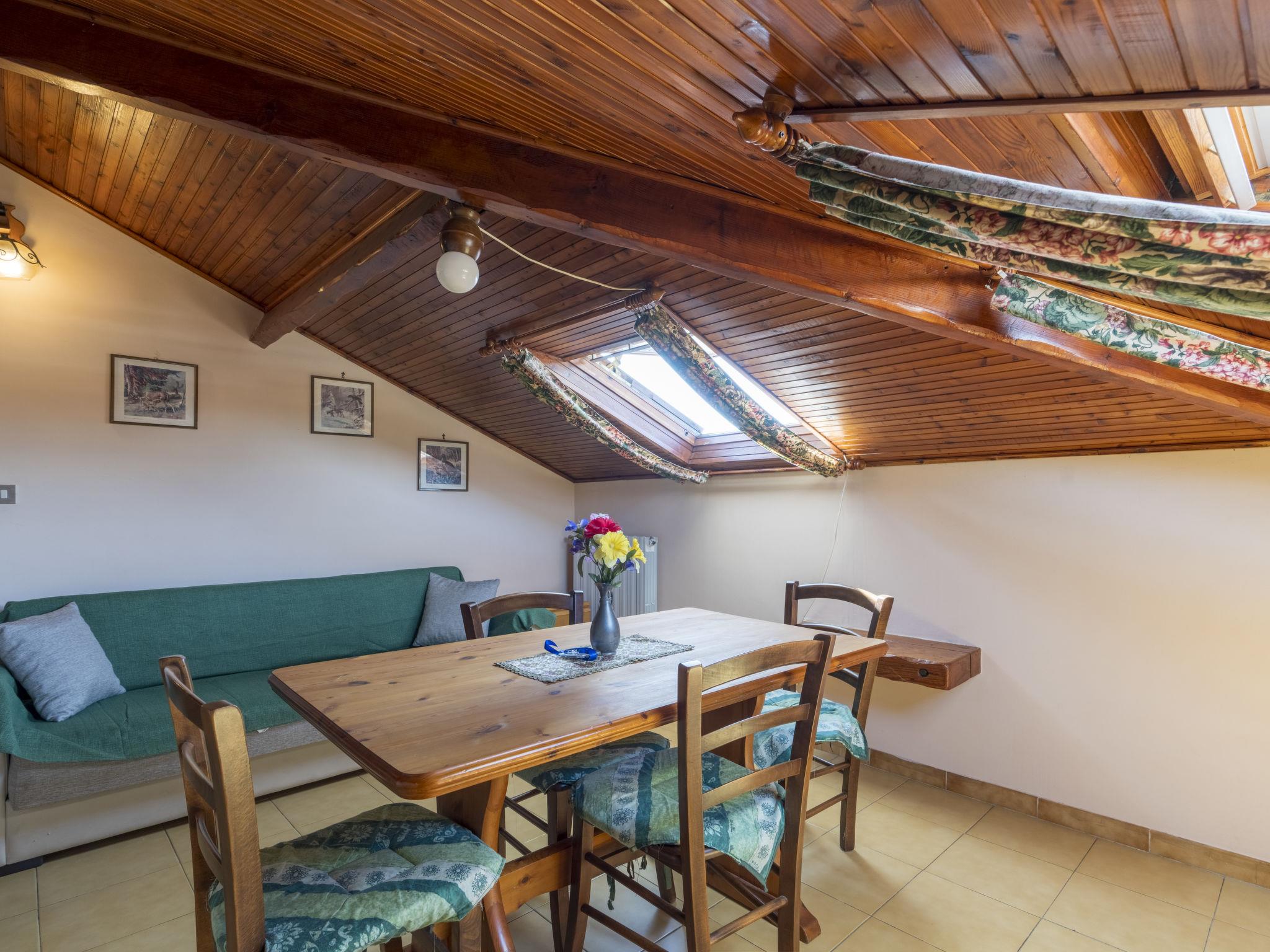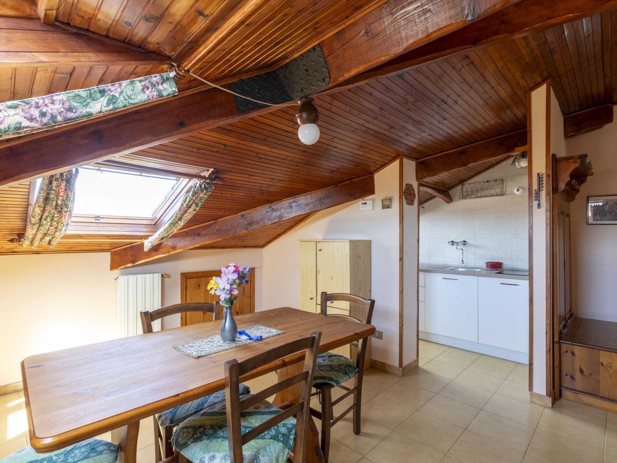 "Mansarda della zia", 2-room apartment 65 m2 on 5th floor. With sloping ceilings, practical and cosy furnishings: living/dining room with rooflight with 1 double sofabed (140 cm, length 200 cm). 1 double bedroom with rooflight. Kitchenette (2 induction hot plates, toaster, kettle). Bath/bidet/WC. No heating option. View of the countryside. Facilities: baby cot for up to 2 year olds, hair dryer. Internet (WiFi, extra). IT008027C2W4TGWGZ8