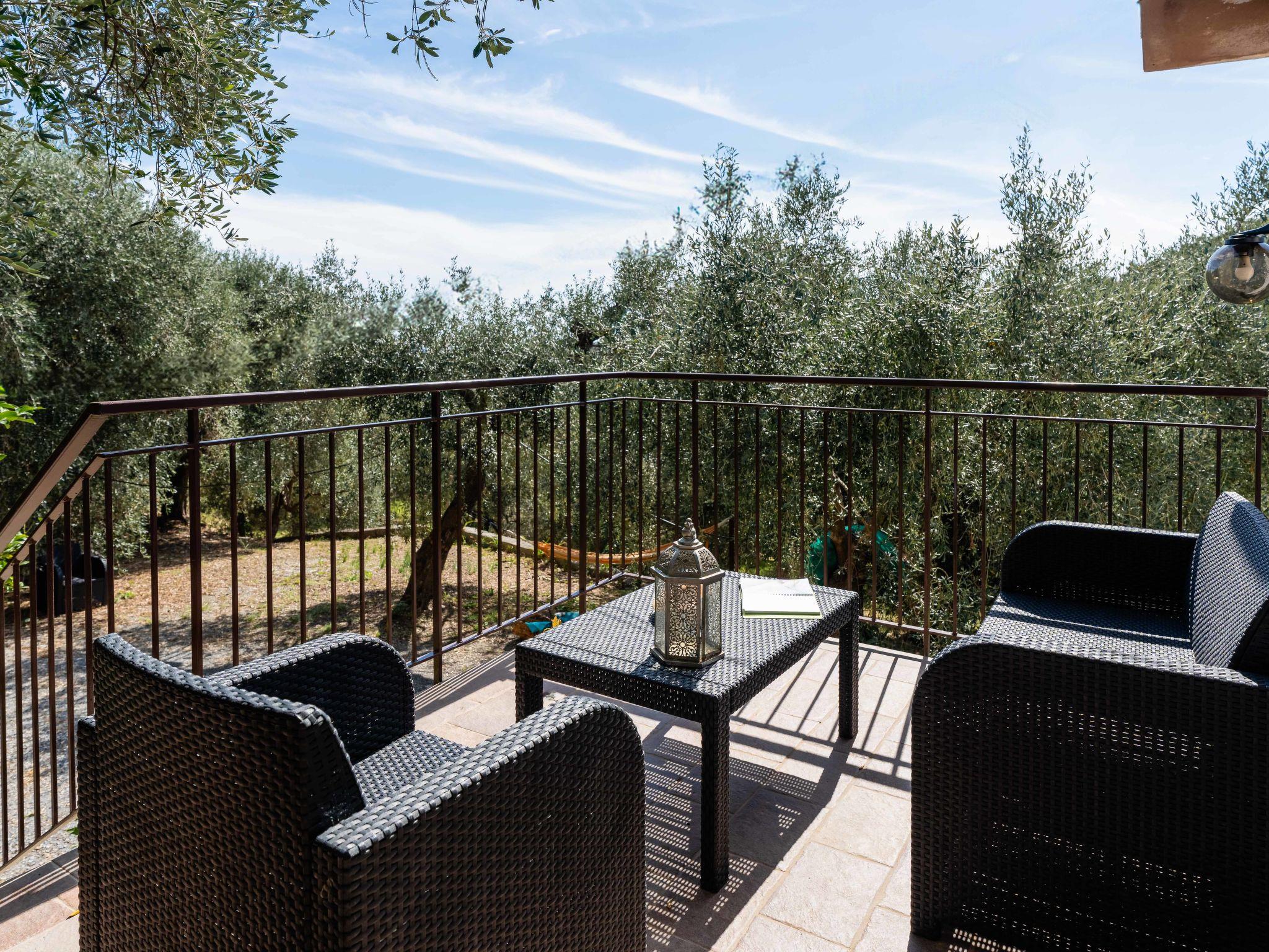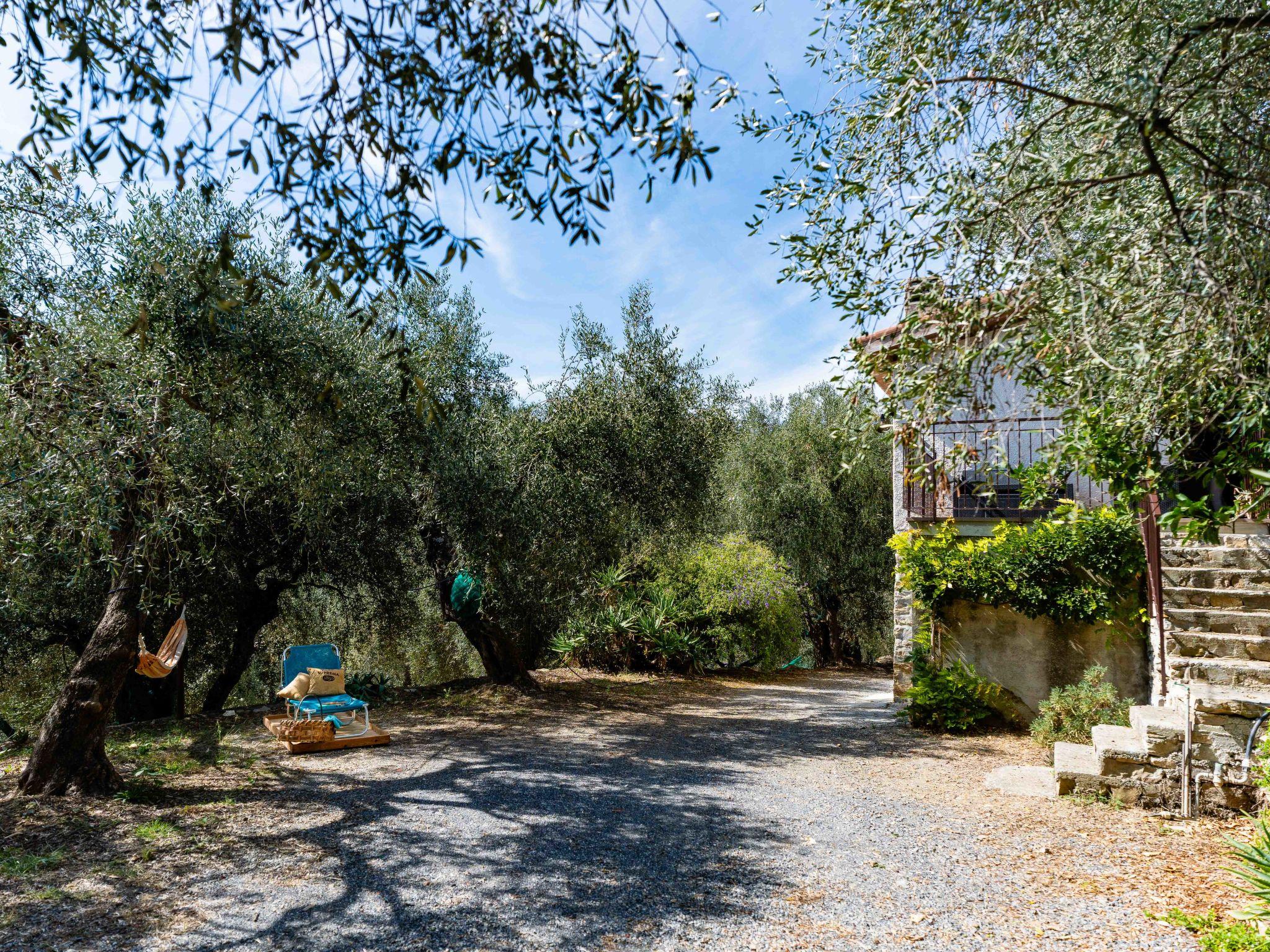 Cosy single-family house. Diano San Pietro 3.5 km from the centre of Diano Marina, 4 km from the centre of Cervo, 17 km from the centre of Alassio, 3.5 km from the sea. Private: natural garden 2'000 m2. 1.2 km long bumpy motor access to the house (1.2 km via unmade road). Stepped path (8 steps) to the house. Width of access road: 220 cm. Supermarket 3 km, shopping centre 3 km, restaurant 2 km, café 2 km, bus stop 10.2 km, sandy beach "Diano Marina" 3.5 km. Please note: car recommended.