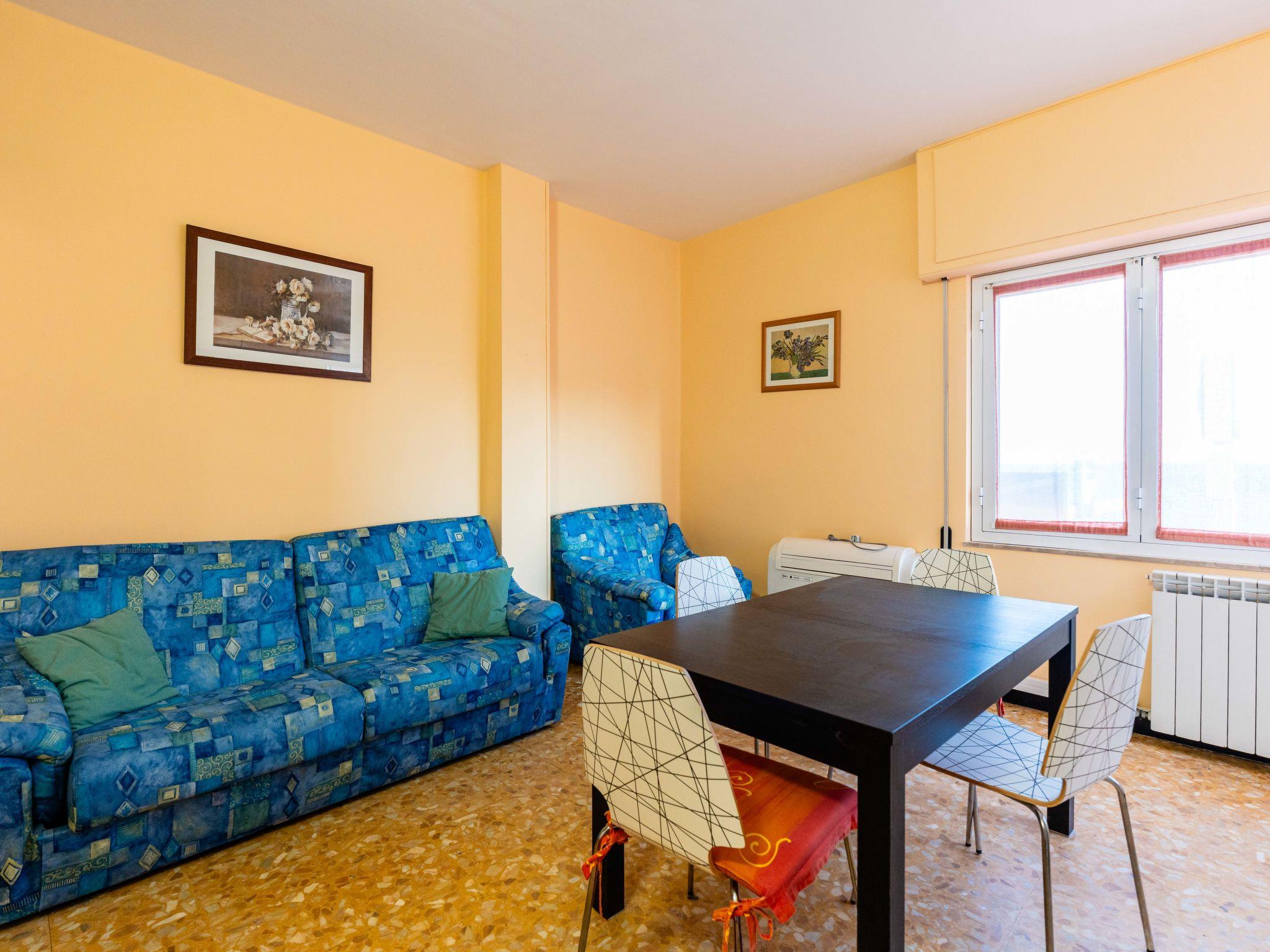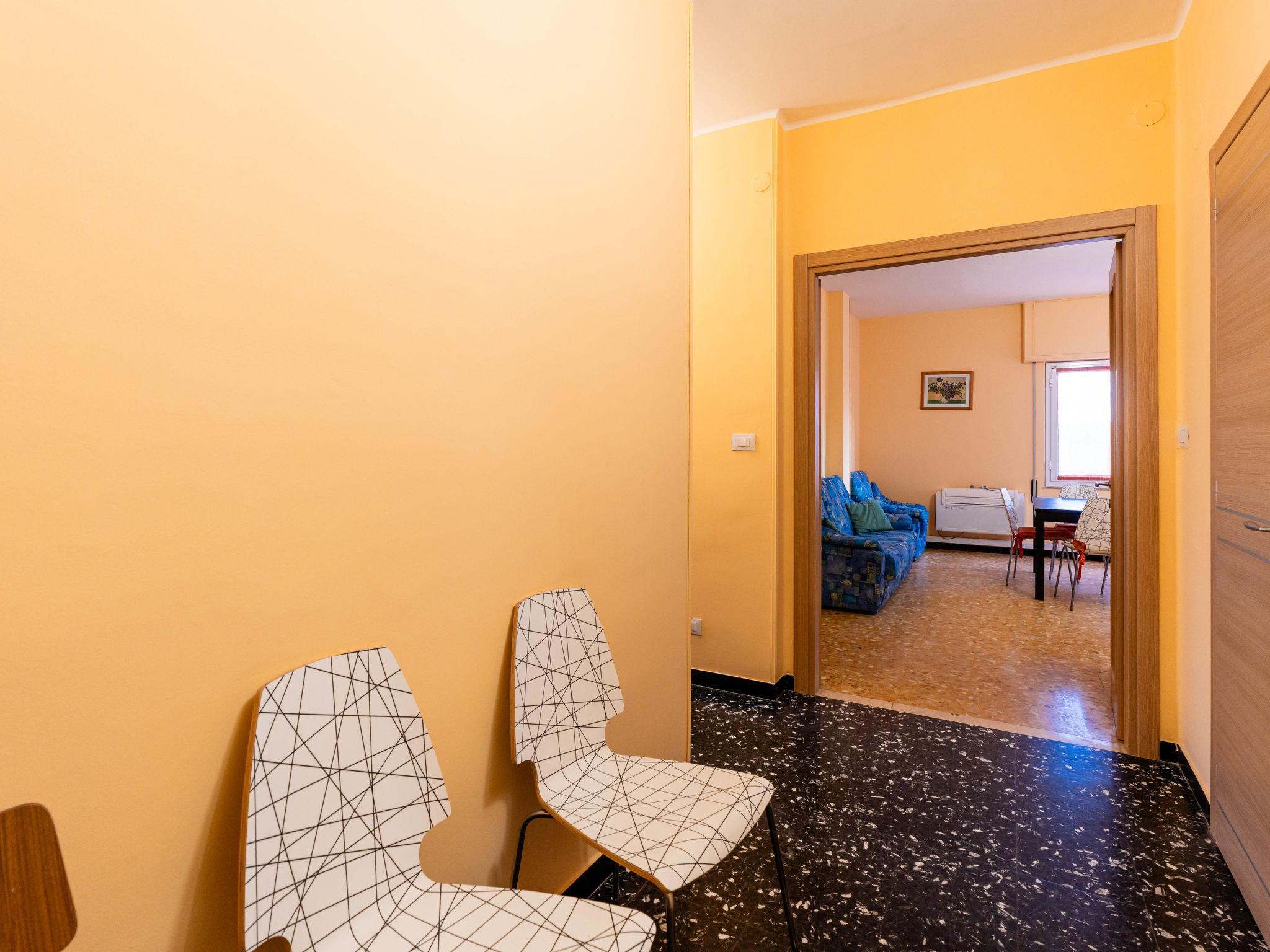 "Holiday Home", 2-room apartment 70 m2 on 2nd floor. Stylish and cosy furnishings: living/dining room with 1 sofabed (140 cm, length 190 cm). 1 double bedroom with 2 x 1 bunk beds (90 cm, length 200 cm), 1 double bed (160 cm, length 200 cm). Kitchen-/living room (mini-oven, oven, dishwasher, 4 gas rings, toaster, kettle). Shower/bidet/WC. Gas heating, air-conditioning, forced-air heating. Heating available only from 08.11. to 15.04. Side view of the sea and the resort. Facilities: washing machine, children's high chair, baby cot for up to 2 year olds (extra), hair dryer. Internet (WiFi, free). Parking at the house. Please note: non-smoking house. 1 pet/ dog allowed. Smoke alarm, fire extinguisher. IT008027C2NAQXTNM9
