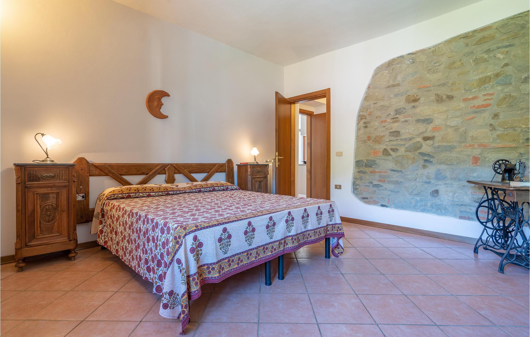 Cirka otte km fra Dicomarco ligger dette feriehus med privat saltvandspool, i en romantisk daludløber i Mugello, i udkanten af en lille landsby. Fra forhaven og terrassen er der adgang til køkkenalrummet, som de forskellige soveværelser og badeværelser er ligger op ad. I stueetagen står der en taverne med bordfodbold til rådighed for jer. Ovenfor huset findes det solrige poolområde med liggestole og parasoller med skøn udsigt til kirken og den smukke dal. Huset er velegnet til feriegæster der gerne opholder sig i det fri og gerne vil kombinere afslapning og aktiviteter i ferien. På grunden er der børnelegeplads, bordtennis og på lidt større afstand en hel bane til boldspil. Også forskellige vandre- og cykelstier gennemskærer naturparken ved Monte Falterona. Den venlige husejer bor i huset ved siden af og står gerne til rådighed med gode udflugtsideer. Som supplement til de mange aktiviteter på grunden kan en afslappende dag ved poolen eller en udflugt til Firenze anbefales. Firenze kan nås via Mugello-banen, som afgår fra landsbyen Dicomano. Barneseng ved forespørgsel.