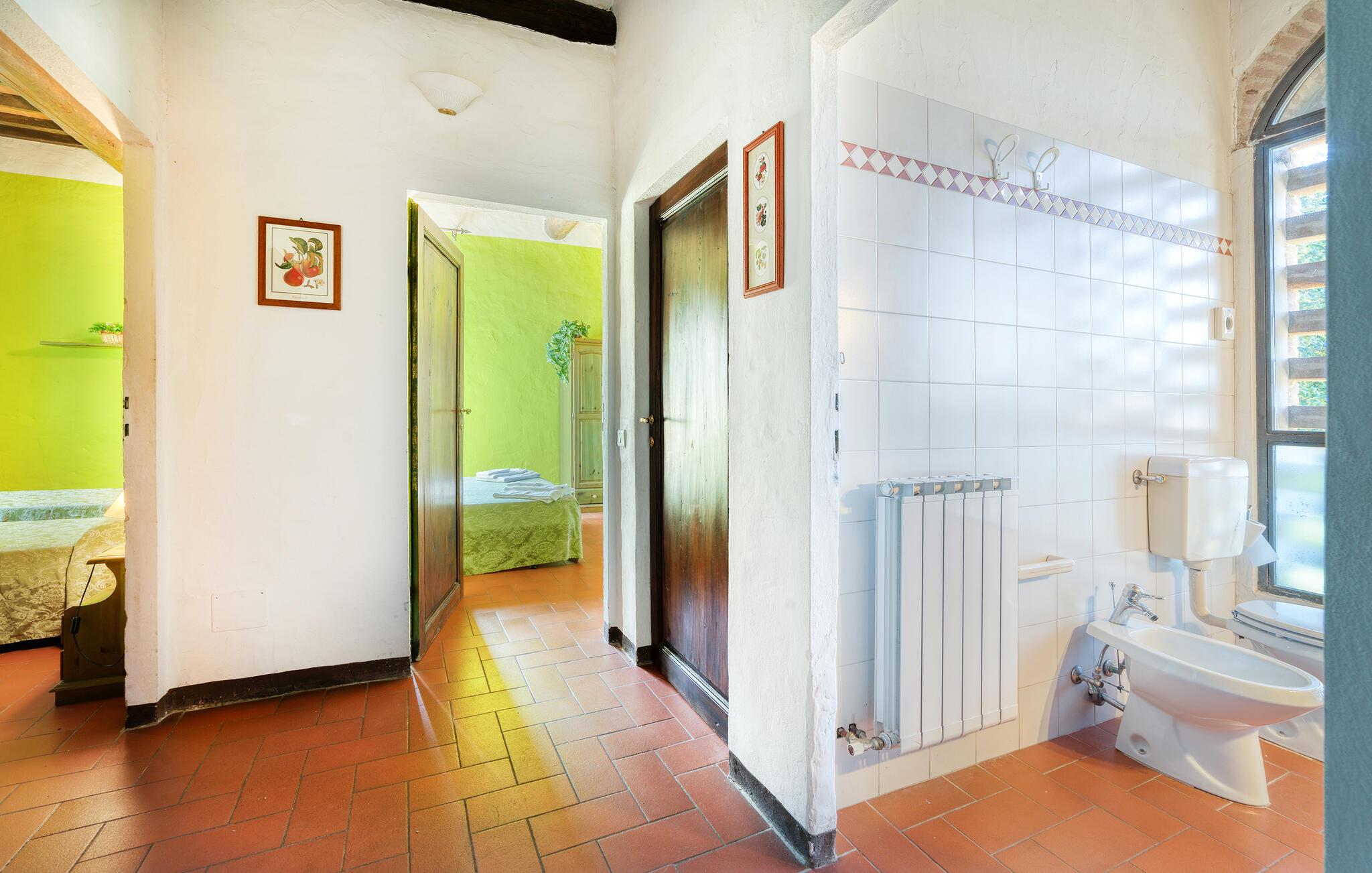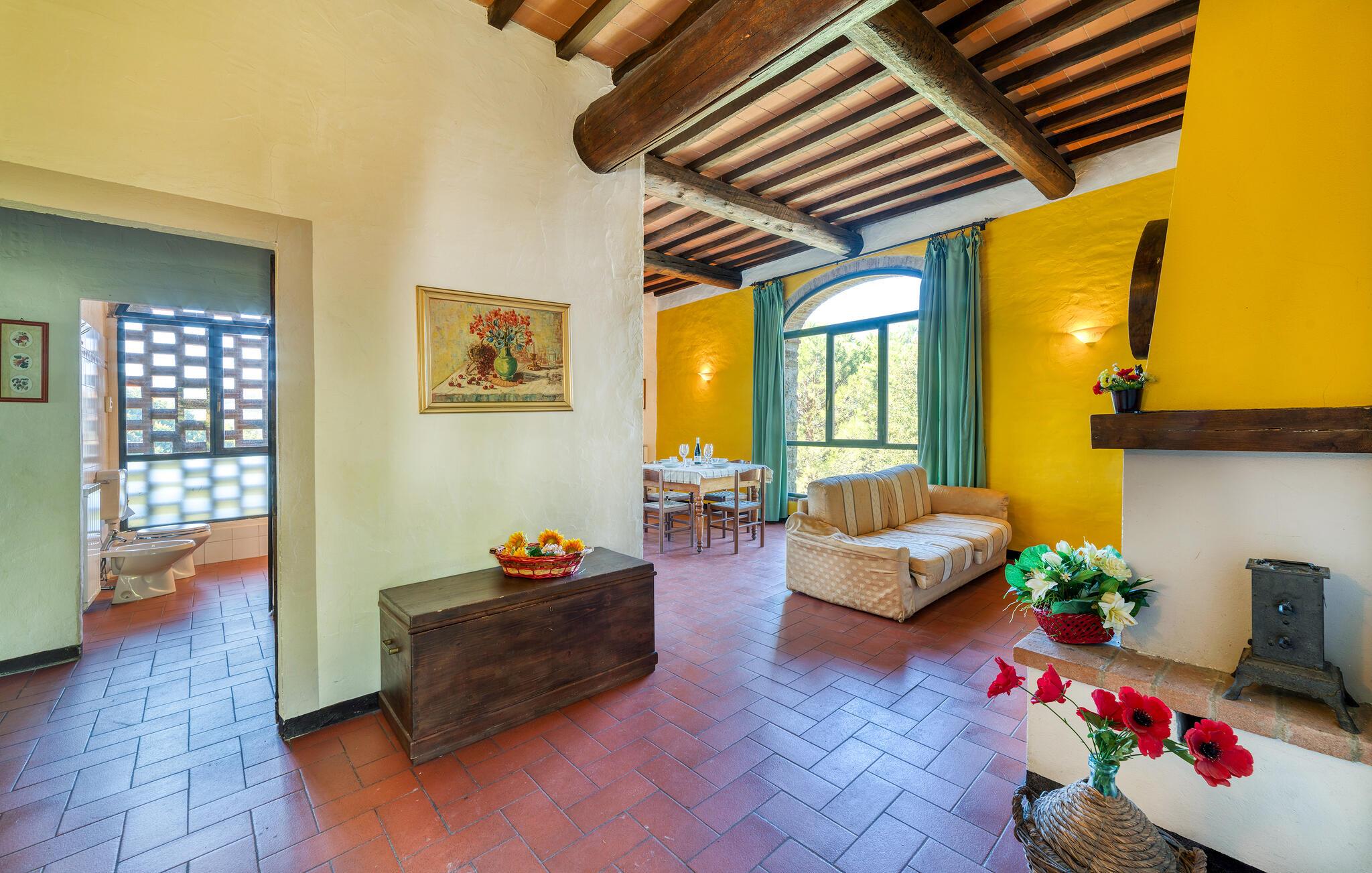 Dette charmerende og farverige feriehus i Dicomano, omgivet af bløde bakker og frodig natur, giver jer en perfekt mulighed for at slippe væk fra hverdagen. Nyd komforten og roen i dette autentiske landhus, samtidig med at I får glæde af moderne faciliteter. Huset er indrettet med kærlighed og skaber en indbydende atmosfære. Den rummelige opholdsstue med traditionelle træbjælker og terrakottagulve udstråler varme og hygge. Brug den åbne pejs til hyggelige aftener, eller tilbered lækre retter med lokale ingredienser i det åbne køkken. Spisestuen har god plads til fælles måltider. Her kan I kan skabe uforglemmelige minder sammen med familien eller venner.