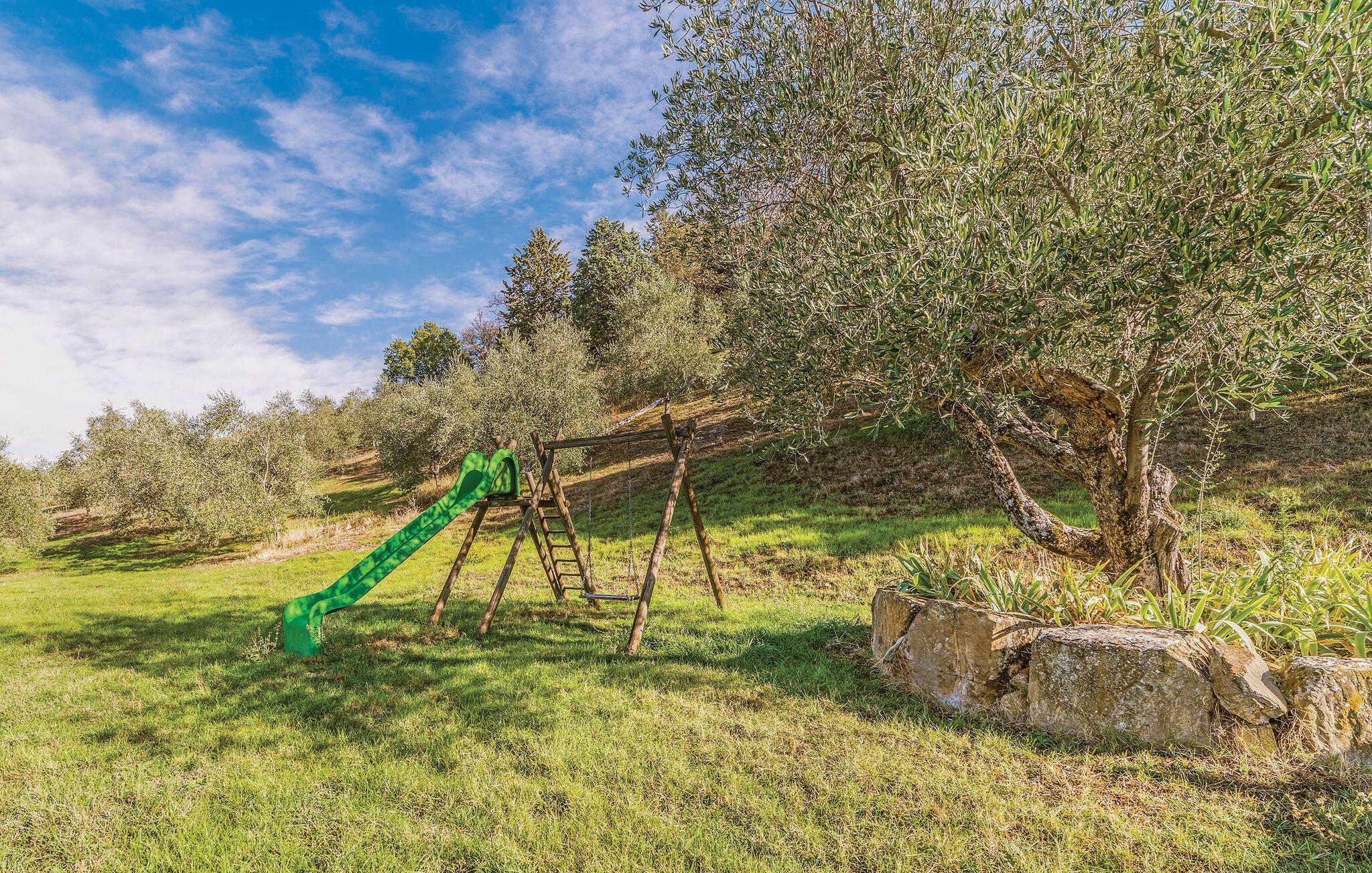 Udendørsområdet er et sandt paradis. Slap af ved den store fællespool med liggestole og parasoller, eller nyd en picnic på den grønne plæne. For børnene er der en gynge, en rutsjebane og masser af plads til leg. Brug terrassen til måltider under åben himmel, mens I nyder den fantastiske udsigt over det toscanske landskab.