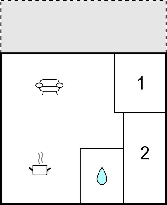 Opholdsstue/køkken - 2 Sovepladser. (Sofa, madras eller lignende).