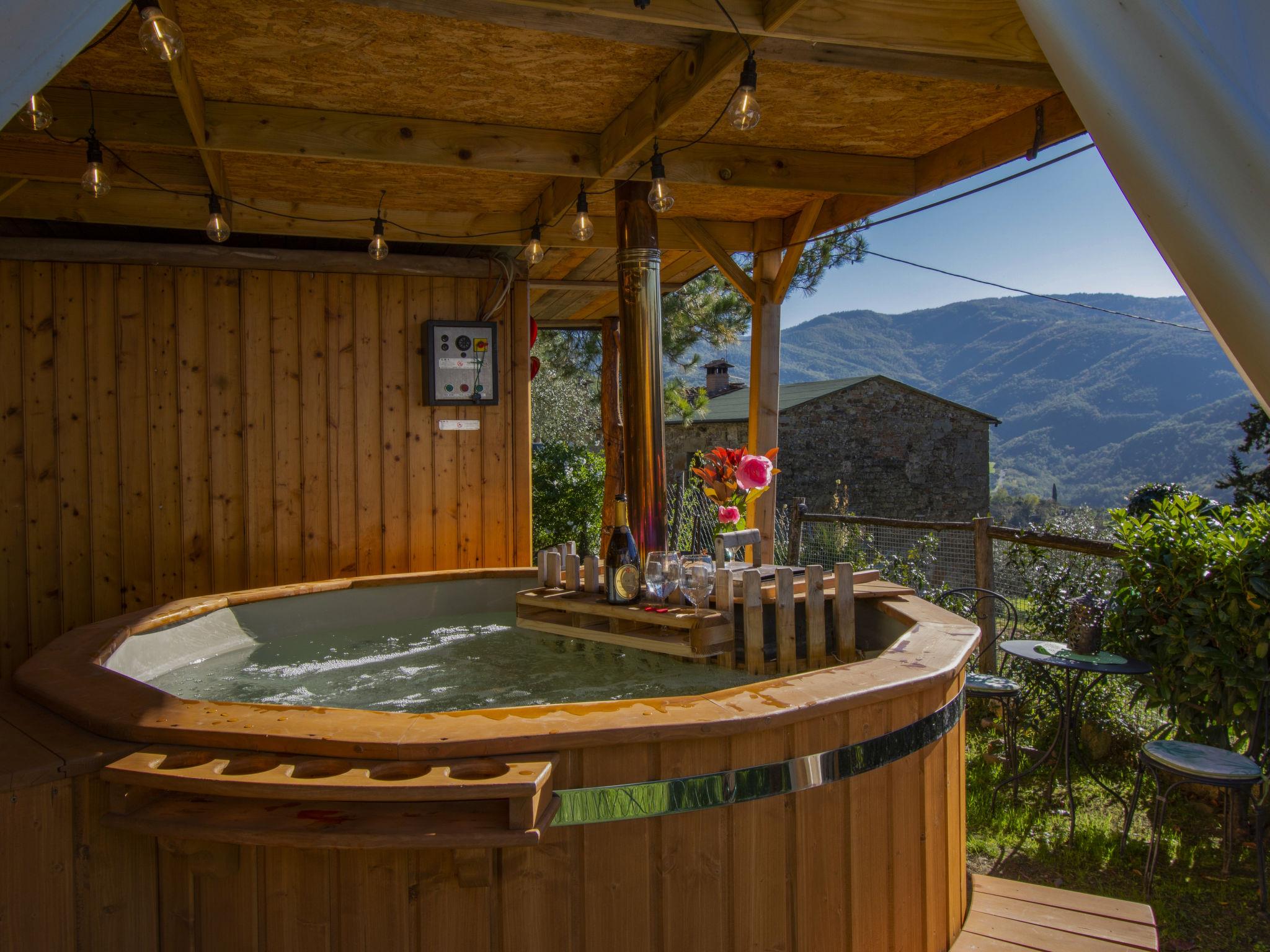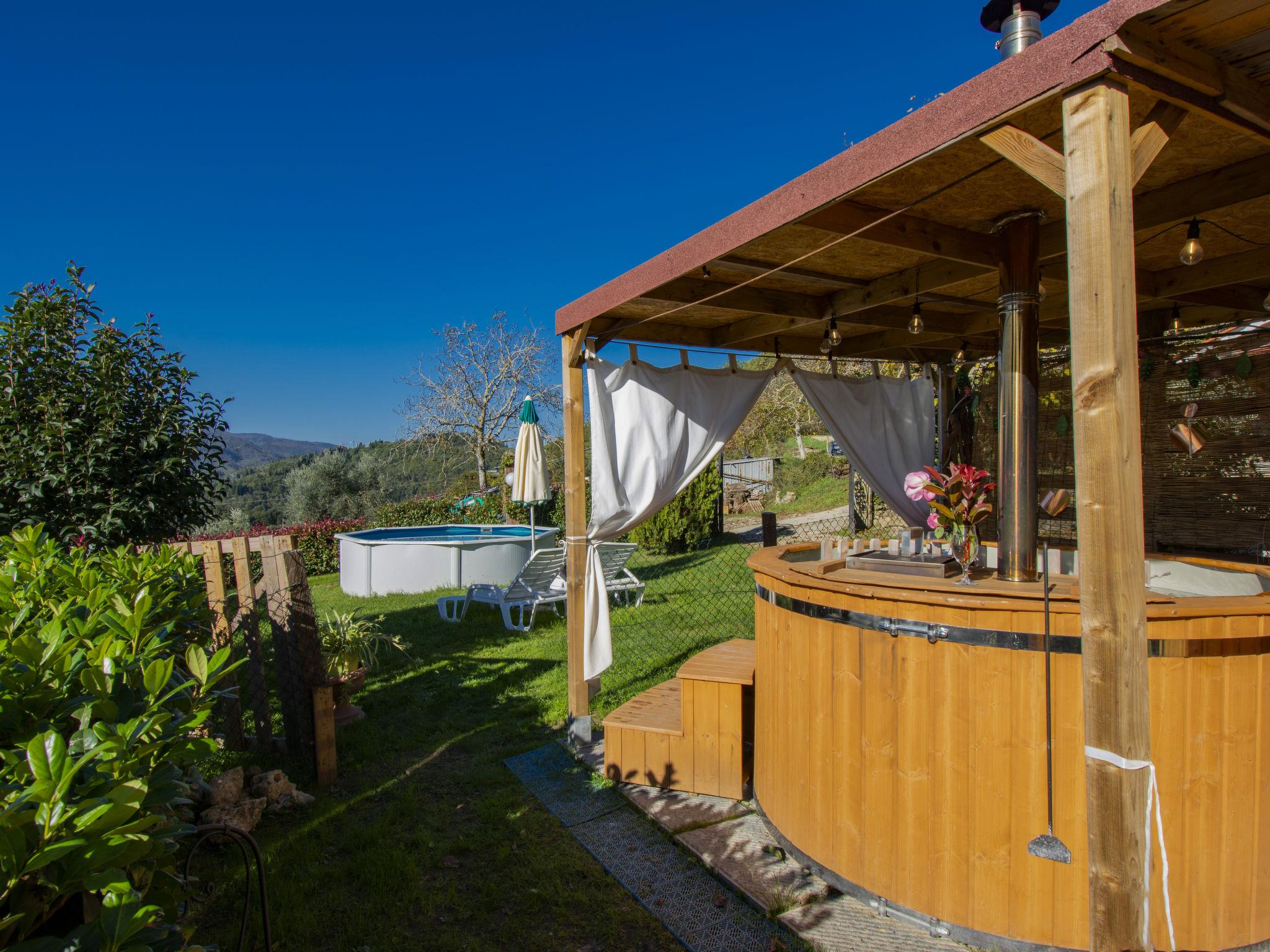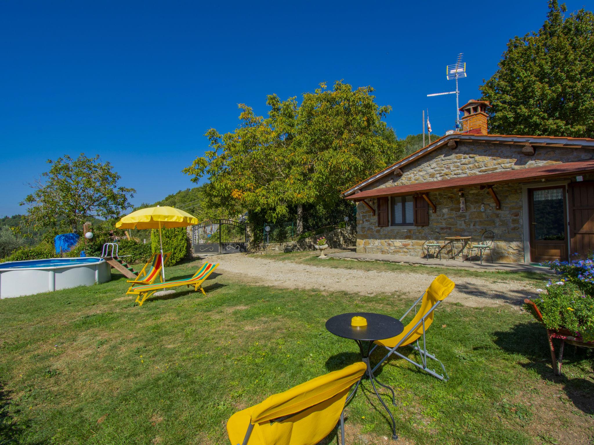 Single-family house "Il Poderino", 500 m a.s.l., renovated. 7 km from the centre of Dicomano, 14 km from the centre of Rufina, 40 km from the centre of Firenze, 3 km from the lake, in the countryside. Private: natural state property 700 m2, garden 300 m2 (fenced), swimming pool (above ground) (3.5 m diameter, seasonal availability: 01.May. - 30.Sep.). Arbour, terrace (30 m2), garden furniture, barbecue. In the house: sauna, hot tub (extra). Heating available only from 15.Nov. - 15.Apr.. 600 m long steep, narrow motor access (700 m via unmade road). Parking. Supermarket 3 km, bus stop 4 km, railway station "Contea Londa" 5 km. Groups of teenagers on request only.