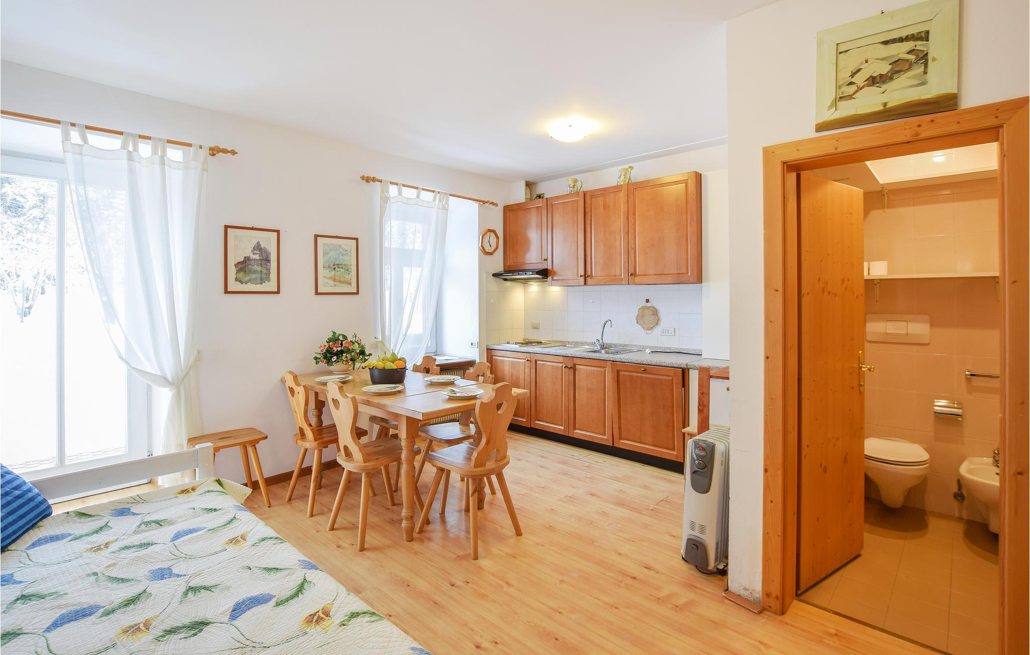 Her er der gode, hyggelige rammer til jeres familieferie. Træmøblerne giver lejligheden en hjemlig atmosfære, så I kan slappe af efter nogle aktive timer i bjergene. Giv jer god tid til madlavningen og fyld aftenerne med hyggelige aktiviteter som gode film og brætspil.