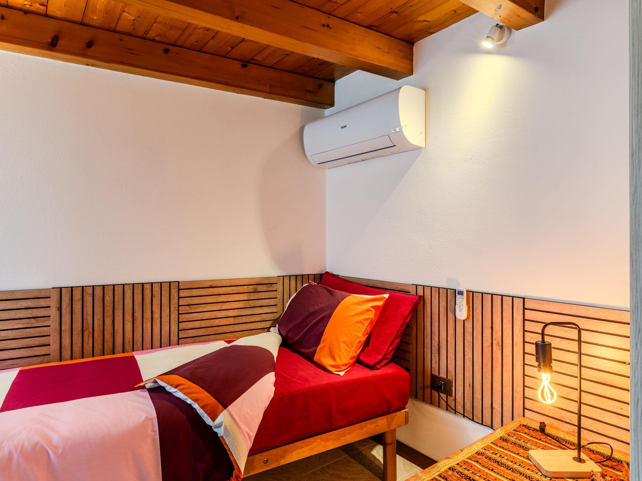 3-room house 60 m2 on 3 levels. Partly renovated in 2024, beautiful and rustic furnishings: open living/dining room with dining nook and TV (flat screen). Open kitchen (oven, 4 induction hot plates, toaster, kettle, microwave, freezer). Upper floor: 1 room with 1 bed and air conditioning. Shower/bidet/WC. 2nd upper floor: open, with sloping ceilings, 1 double bedroom with air conditioning. Gas heating, air-conditioning. Heating available only from 01.10. to 15.05. Parquet floors, natural stone floors. Small balcony. Balcony furniture. Marvellous panoramic view of the lake, the mountains and the resort. Facilities: iron, hair dryer. Internet (WiFi, free). Please note: non-smoking house, no parking. Smoke alarm, fire extinguisher. IT013089C2XHZ6D8LT