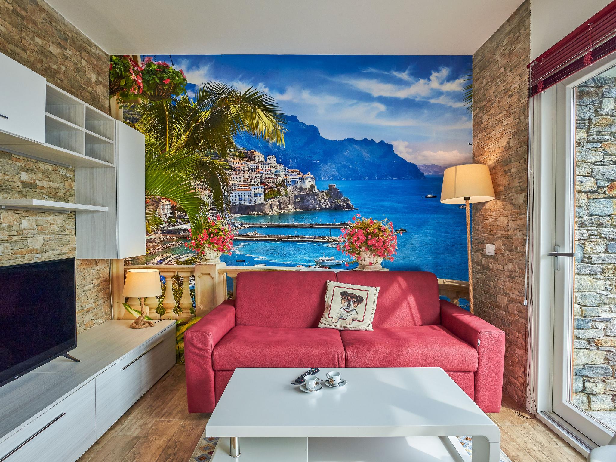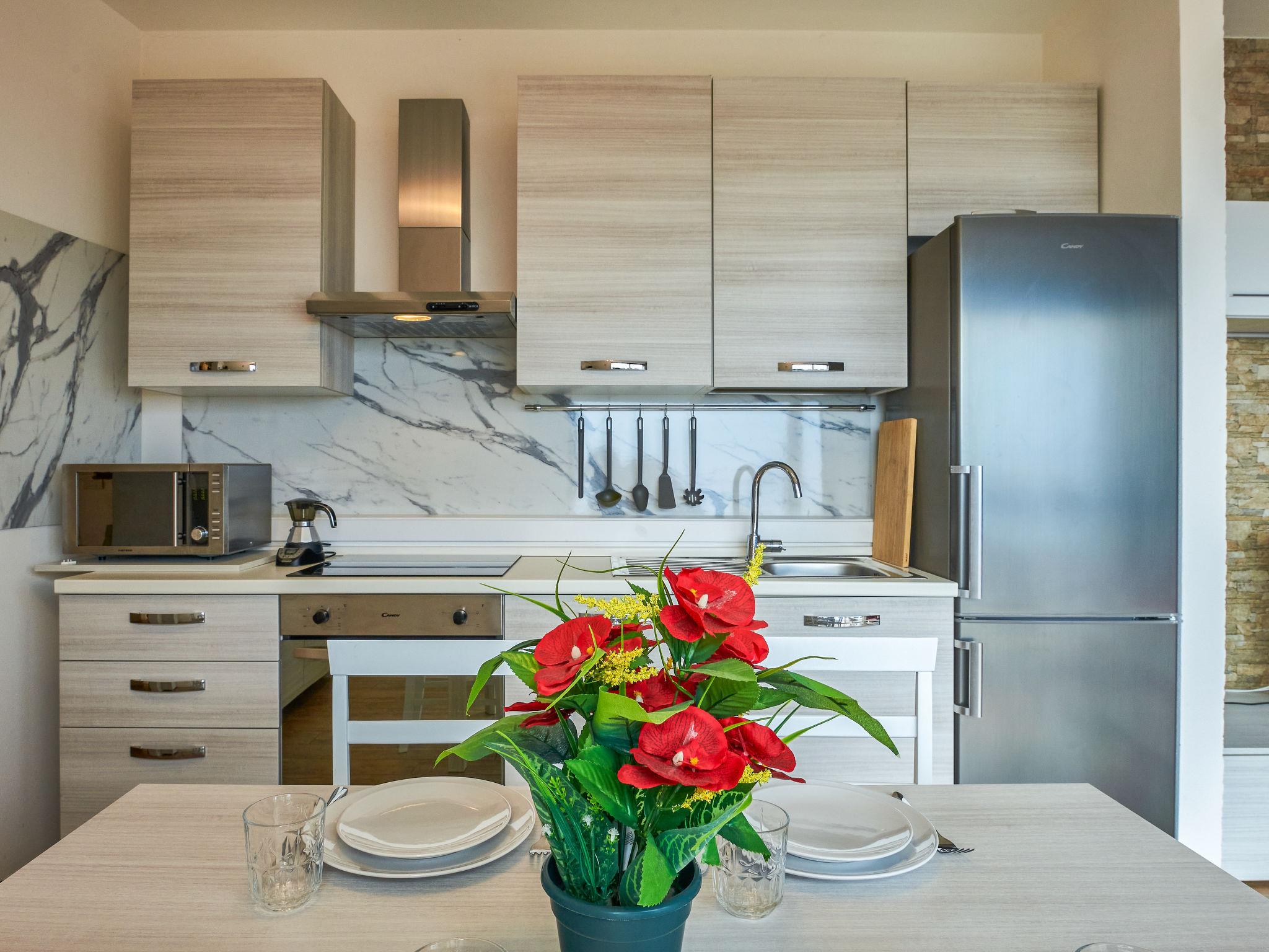 3-room villa 100 m2 on 2 levels. Fully renovated in 2021, modern furnishings: living/dining room with sliding door, panoramic window with 1 double sofabed (140 cm), satellite TV (flat screen). Exit to the terrace. 1 double bedroom with satellite TV. Exit to the terrace. Open kitchen (oven, dishwasher, 4 induction hot plates, microwave, freezer, electric coffee machine). Exit to the terrace. Shower/bidet/WC. Upper floor: 1 room with 2 beds and satellite TV. Shower/bidet/WC. Air-conditioning, forced-air heating (extra). Natural stone floors. 2 large terraces 25 m2, small terrace. Terrace furniture, electric barbecue (portable), deck chairs (4). Marvellous panoramic view of the lake, the mountains and the resort. Facilities: washing machine, hair dryer. Internet (WiFi, free). Parking (fenced). Please note: non-smoking house, parking space for small car only. Entry gate is 190cm wide, larger cars can be left outside the gate. IT013090C25ZQDADGN