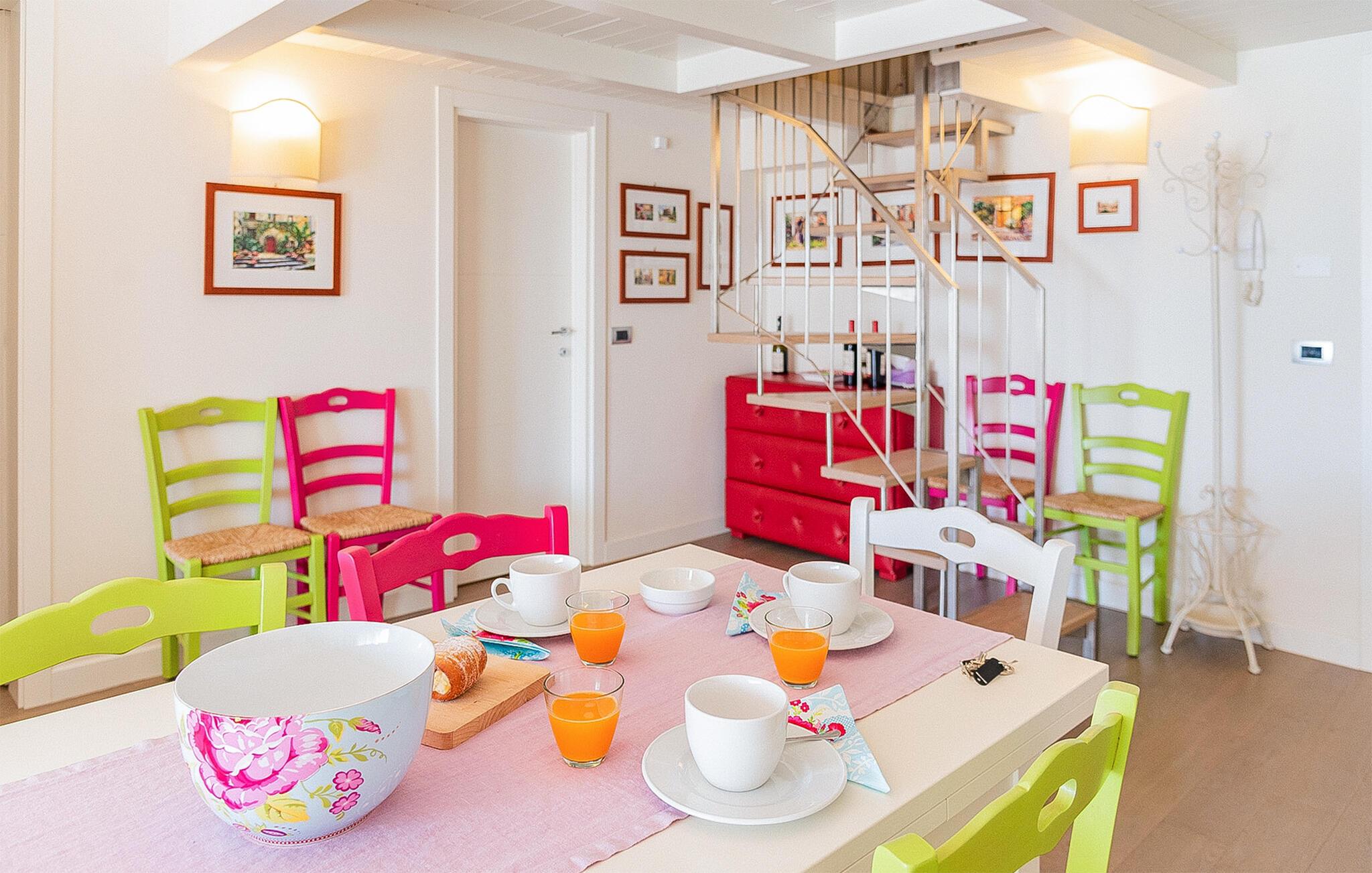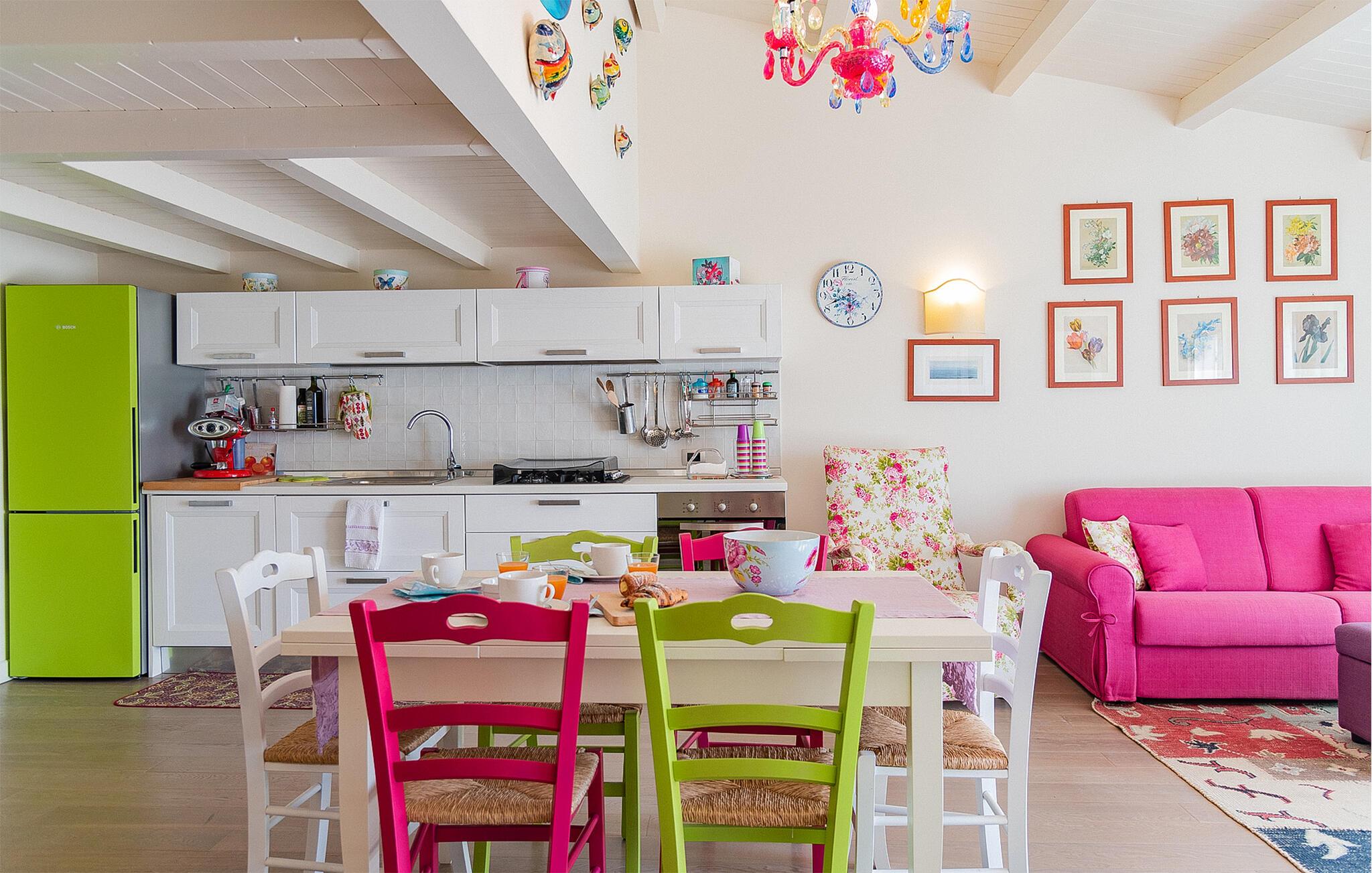 den gamle fiskerby Donnalucata. Huset byder på en virkelig karakteristisk og farverig indretning, der med de mange sjove detaljer skaber en nærmest eventyrlig atmosfære, man ikke kan andet end slappe af i. Tag jer god tid til madlavningen i køkken-alrummet og nyd måltiderne på terrassen, hvor I kan runde dagen af med kølige drinks i aftensolen. I bor kun en kort gåtur fra stranden, hvor I kan tage en frisk dukkert og lege i sandet.