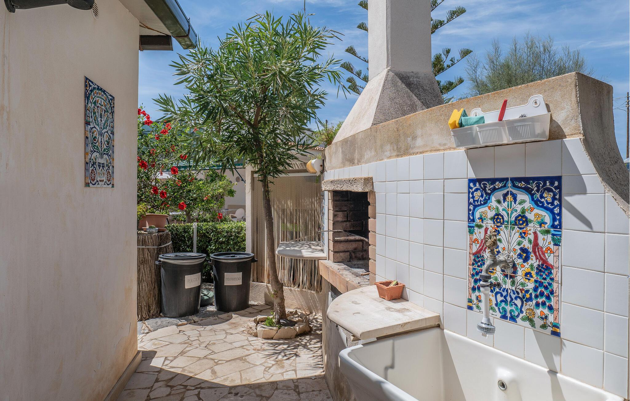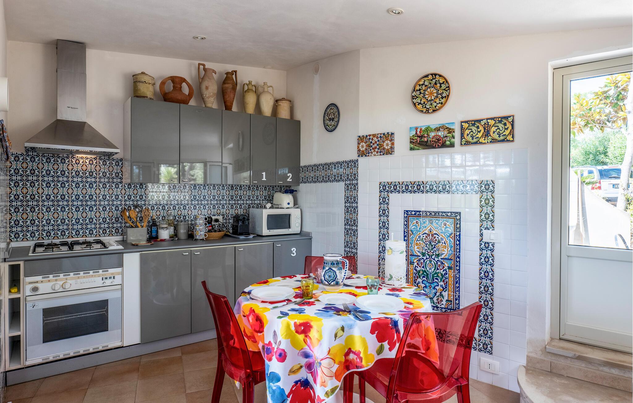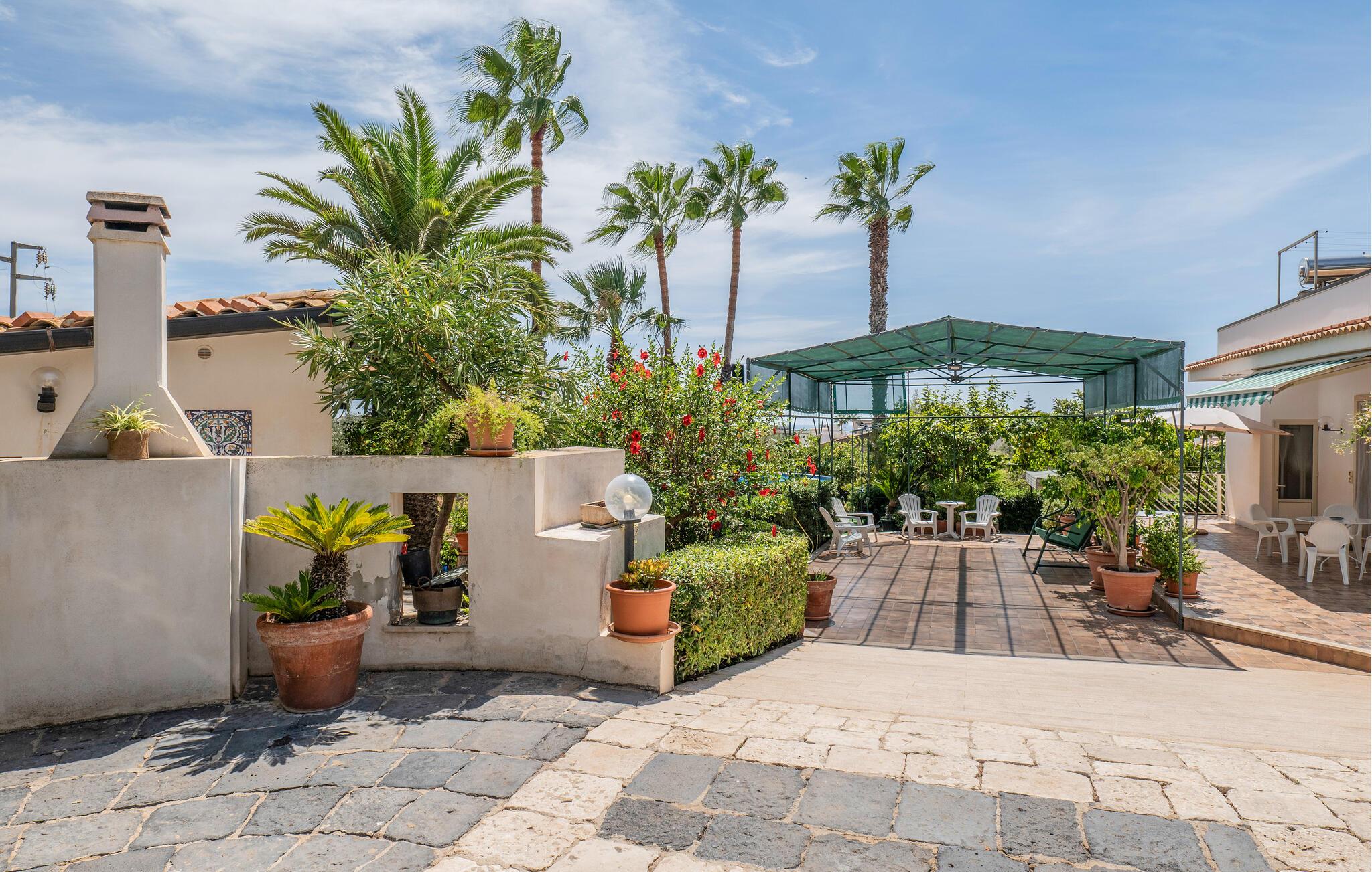 Tilbring en foryngende ferie i dette fortryllende feriehus med pool, der ligger kun få skridt fra sandstranden på Siciliens sydkyst. Læg hverdagens verden bag jer og nyd den store haves middelhavsplanter – uanset om I solbader, læser en god bog eller tager en forfriskende dukkert i jeres private pool. Begynd dagene med morgenmad på terrassen, og om aftenen kan I nyde et glas vin, mens I kigger ud over landskabet. Det hyggelige køkken lægger op til at tilberede regionale delikatesser og nyde dem i en afslappet atmosfære.
