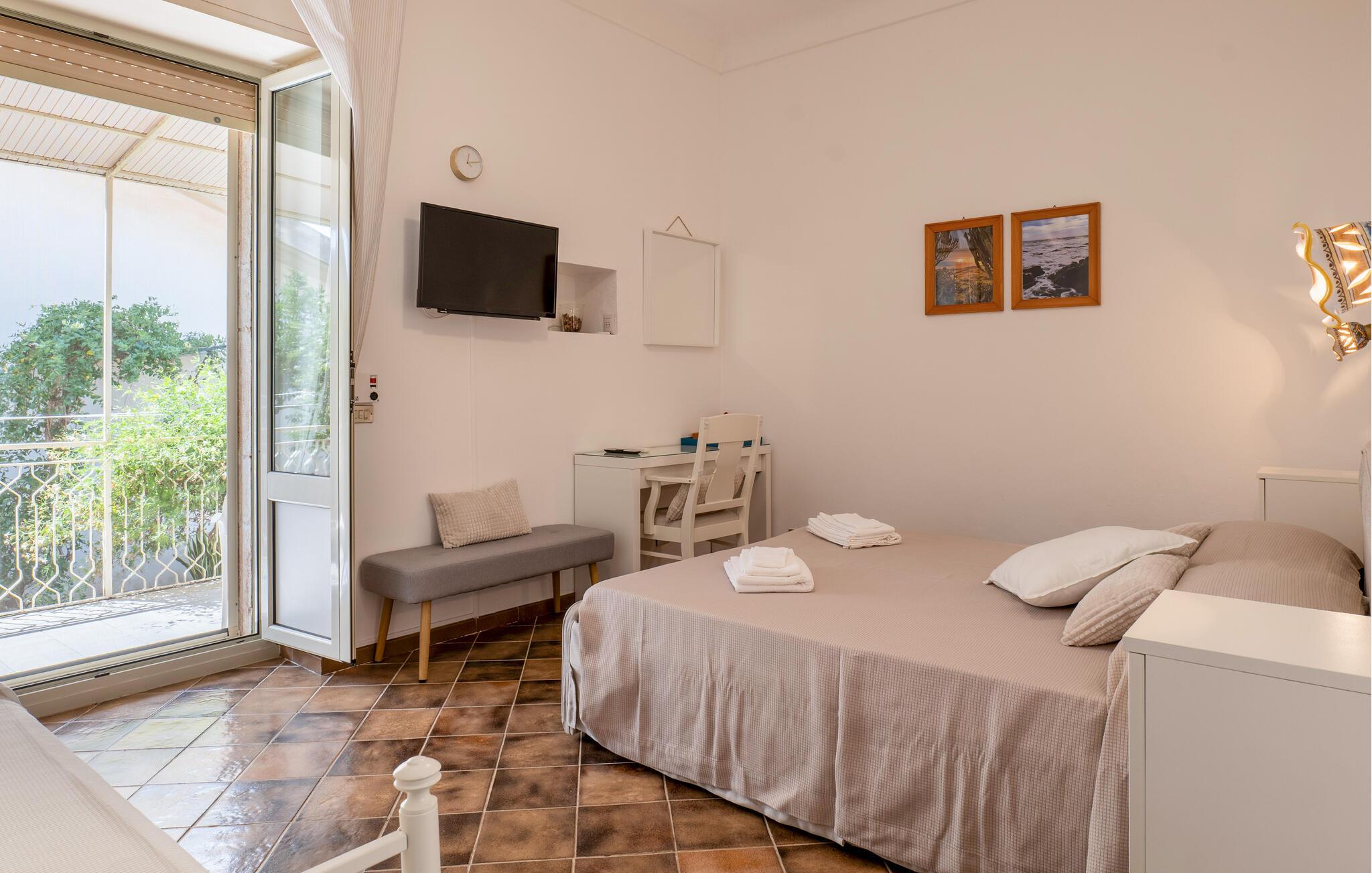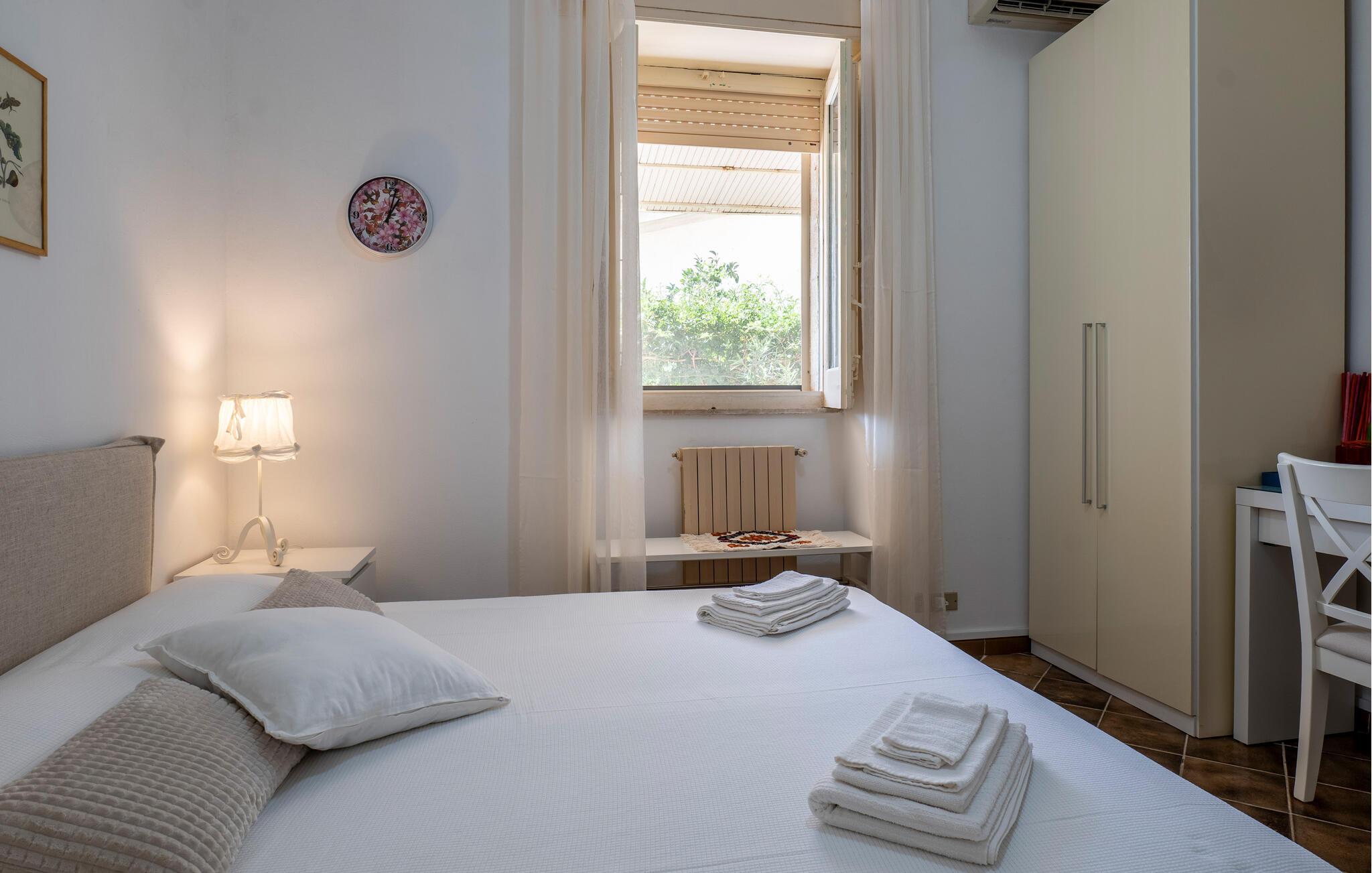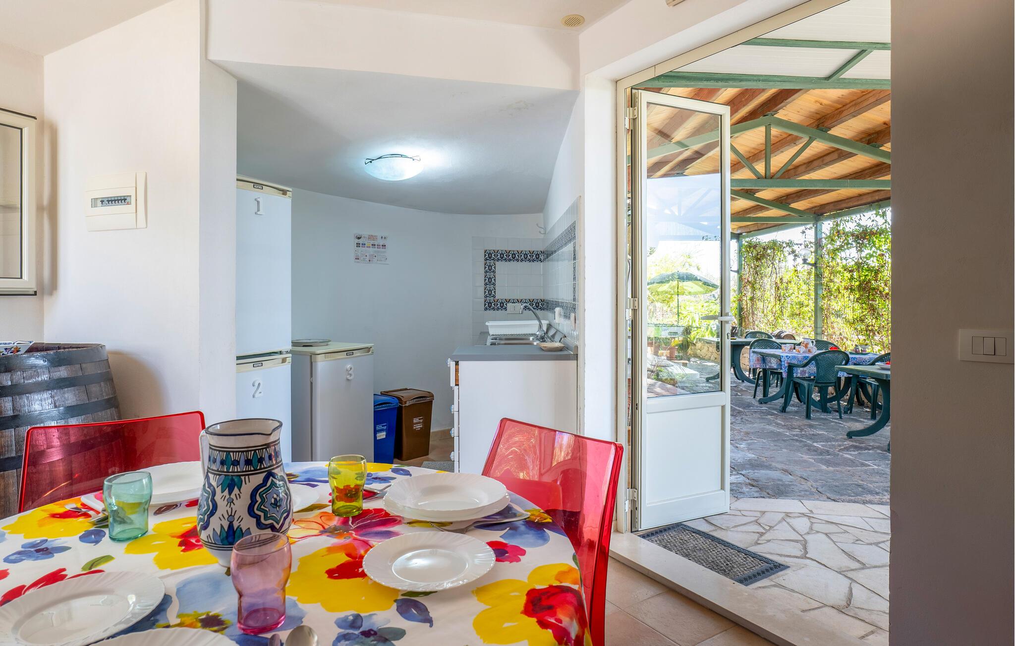 Tilbring en foryngende ferie i dette fortryllende feriehus med pool, der ligger kun få skridt fra sandstranden på Siciliens sydkyst. Læg hverdagens verden bag jer og nyd den store haves middelhavsplanter – uanset om I solbader, læser en god bog eller tager en forfriskende dukkert i jeres private pool. Begynd dagene med morgenmad på terrassen, og om aftenen kan I nyde et glas vin, mens I kigger ud over landskabet. Det hyggelige køkken lægger op til at tilberede regionale delikatesser og nyde dem i en afslappet atmosfære.