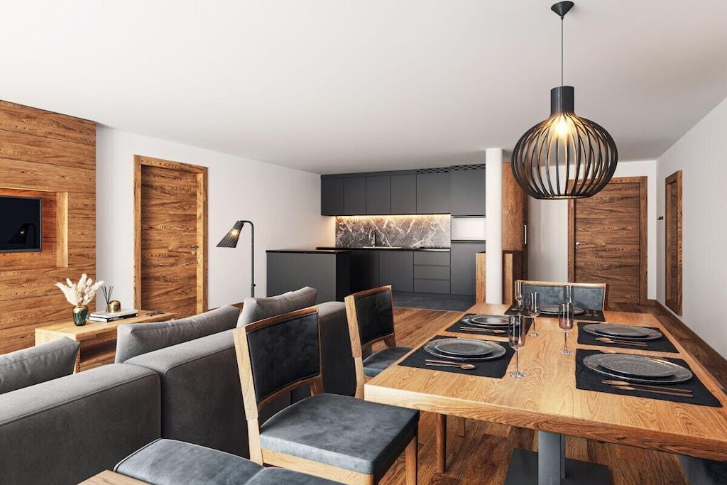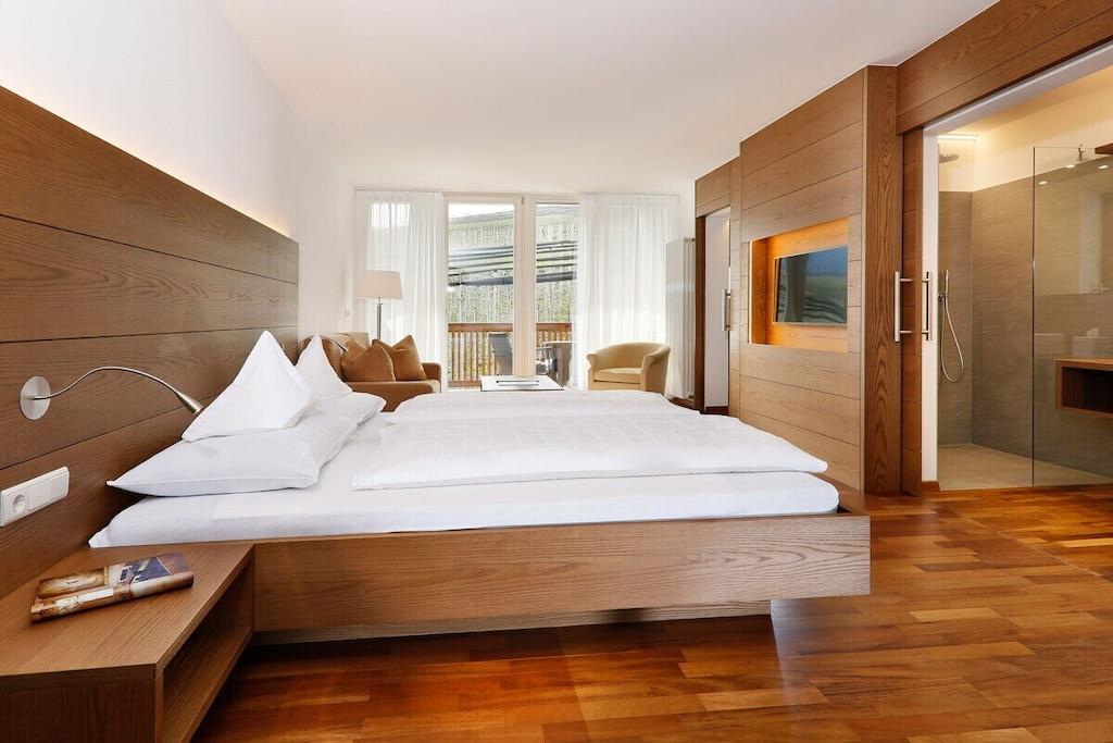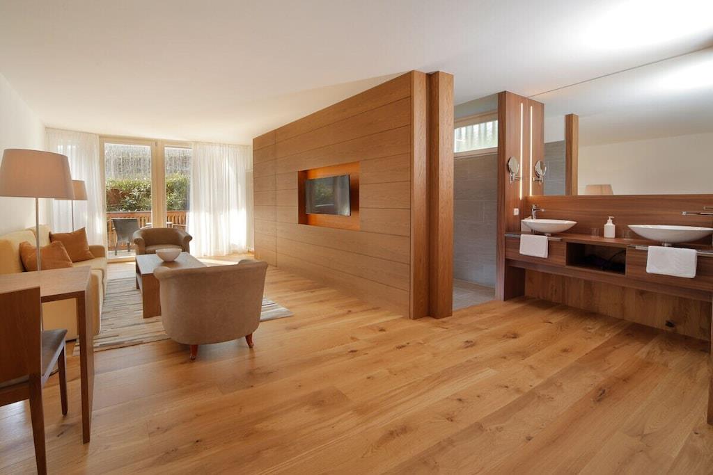Ferielejligheden har to separate dobbeltværelser med eget badeværelse og et fuldt udstyret køkken. Badeværelserne har bruser, toilet, og det ene har også bidet, hårtørrer og sminkespejl. Der er fladskærms-tv, Wi-Fi og telefon i den rummelige stue med en komfortabel sofa. Aircondition, drevet af vores solcelleanlæg, regulerer opvarmning og køling og sikrer et særligt behageligt indeklima. Et opvarmet swimmingpoolkompleks med en panoramalounge og en solterrasse i to niveauer samt en grustennisbane, fitnessrum og saunaområde forbedrer yderligere dit velvære på vores resort.