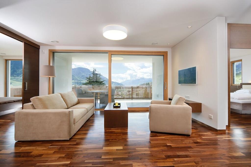 Ferielejligheden har to separate dobbeltværelser og et fuldt udstyret køkken. Det rummelige badeværelse har bruser, badekar, toilet, bidet, hårtørrer og sminkespejl. I den store stue med en komfortabel sofa er der fladskærms-tv, Wi-Fi og telefon. Et ventilationssystem regulerer opvarmning og køling, hvilket sikrer et særligt behageligt indeklima. Et opvarmet swimmingpoolkompleks med panoramalounge og en solterrasse i to niveauer samt en grustennisbane forbedrer dit velvære på vores resort. Der er et fitnessrum og en sauna i hovedbygningen.