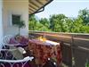 Tekøkken(kogeplade(Komfur med to kogeplader, glaskeramisk), elkedel, brødrister, kaffemaskine, køle-fryseskab), Stue/soveværelse(dobbeltseng, Fjernsyn, spisebord, sofahjørne), soveværelse(køjeseng), badeværelse(bruser, toilet, bidet), badeværelse(bruser, toilet), balkon, varme(olie), have, havemøbler, solstole, parkering, baby crib(free)