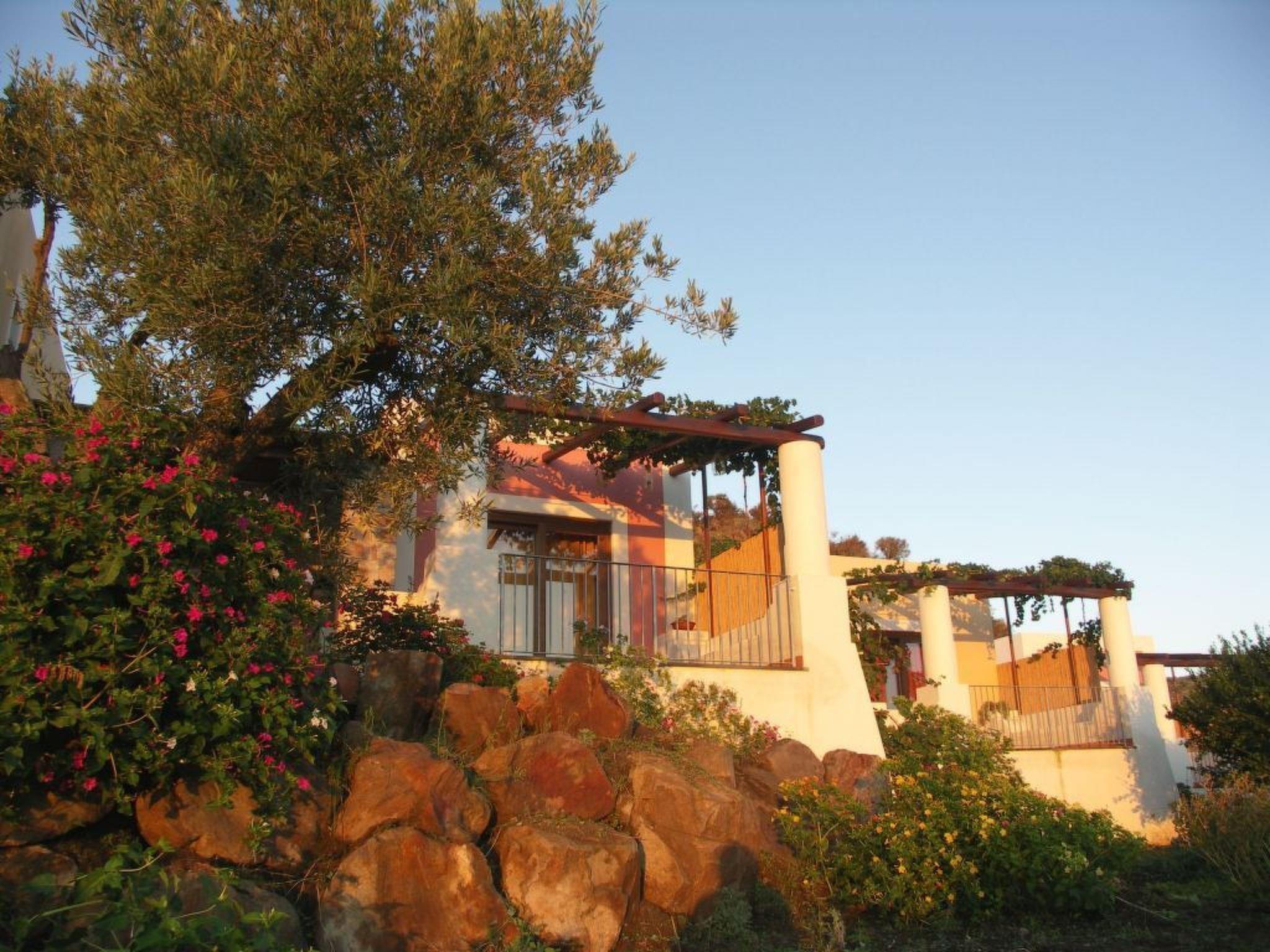 Complex of detached villas: two-room apartments with Aeolian-style terraces, covered and solarium, well-kept and equipped immersed in the greenery of the typical flora of the Aeolian islands. The small villas, with attention to the smallest details, offer every comfort, a large bedroom with air conditioning (split inverter and dehumidifier), with wardrobe and desk, complete bathroom with shower (box), comfortable living room/kitchen well equipped with satellite TVSatHd. free wi-fi. The staff is always at the complete disposal of guests. In addition to the services offered, the staff is available to provide information and collaboration in order to satisfy every request, simplifying your stay on the island, trying to do everything possible to make your stay in this little corner of paradise unforgettable. Animals are not accepted. We recommend a car or scooter, parking adjacent to the property, public transport 100 metres away and 1 km from the property. The beach of Valle Muria (pebbles) is about 1 km away and can be accessed via a pedestrian path. The port of Lipari is 3.5 km away.
