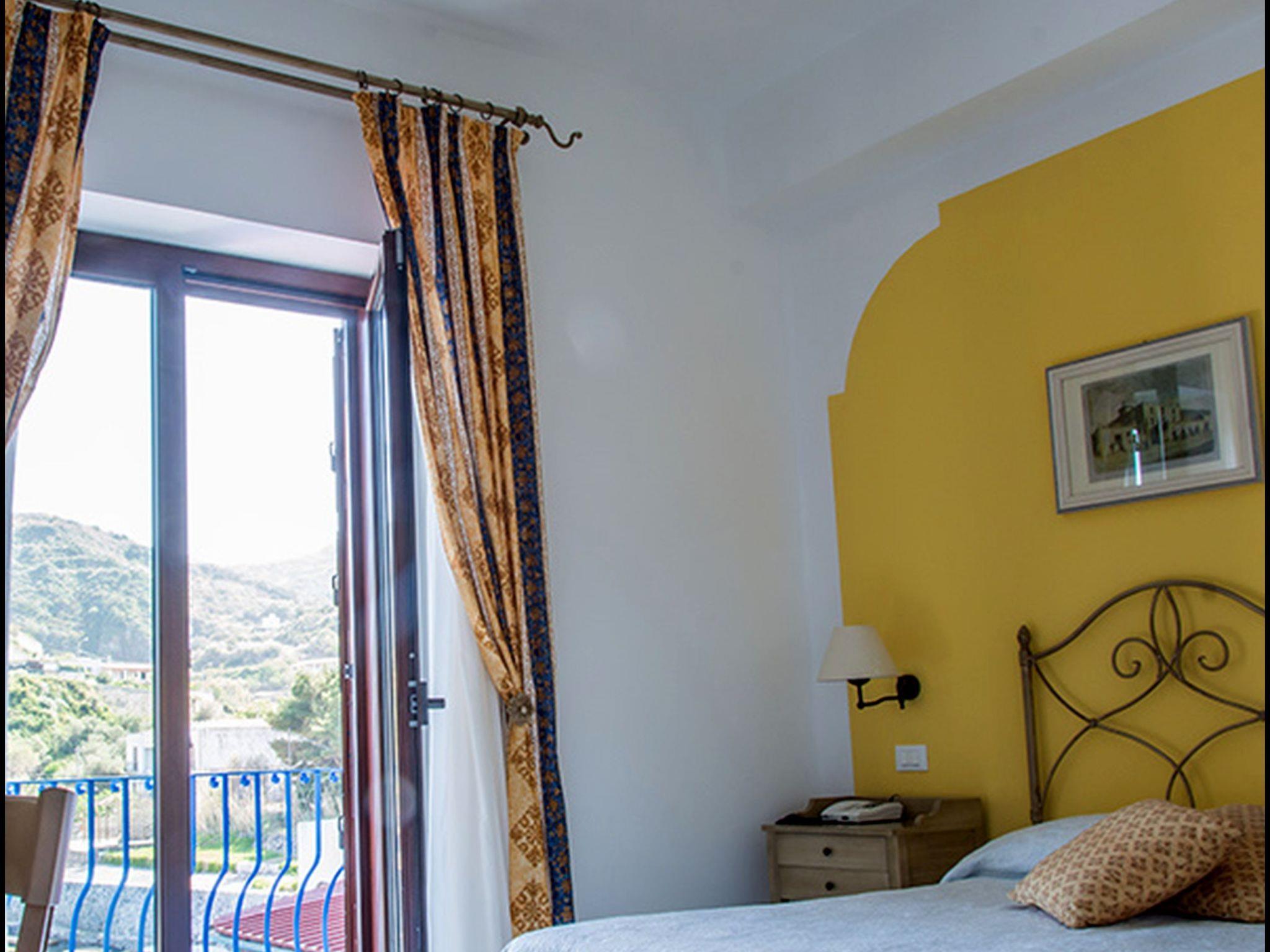 Externally, the hotel marvels with its privileged position on the rocks lapping against the clear blue waters of the Aeolian sea, and with a sandy beach in the small bay of Porto delle Genti. The bar and restaurant, with terraces directly overlooking the sea, and a platform built on the water equipped with sun loungers and parasols, ensure relaxation and enjoyment of the senses at all times of day.
