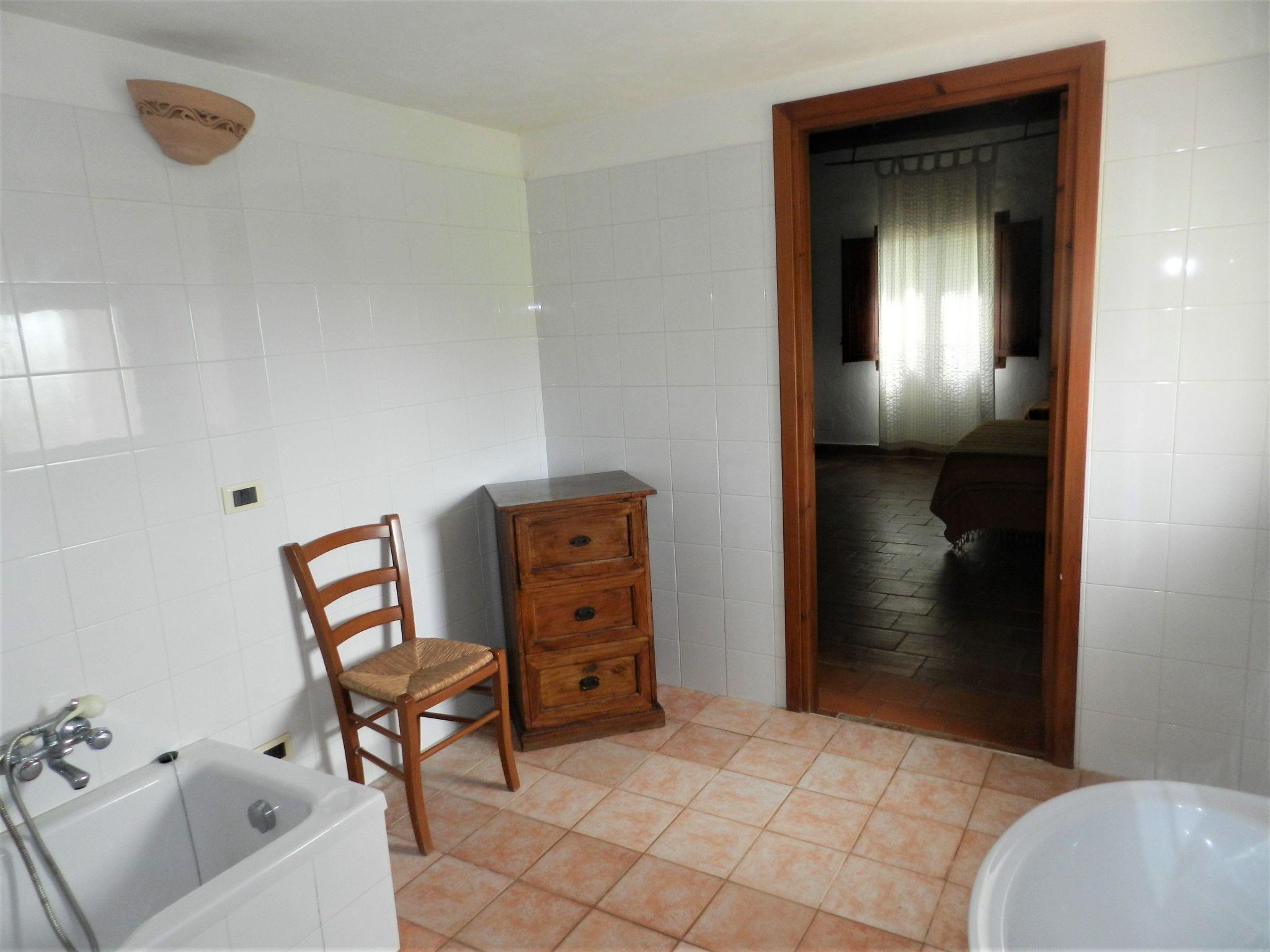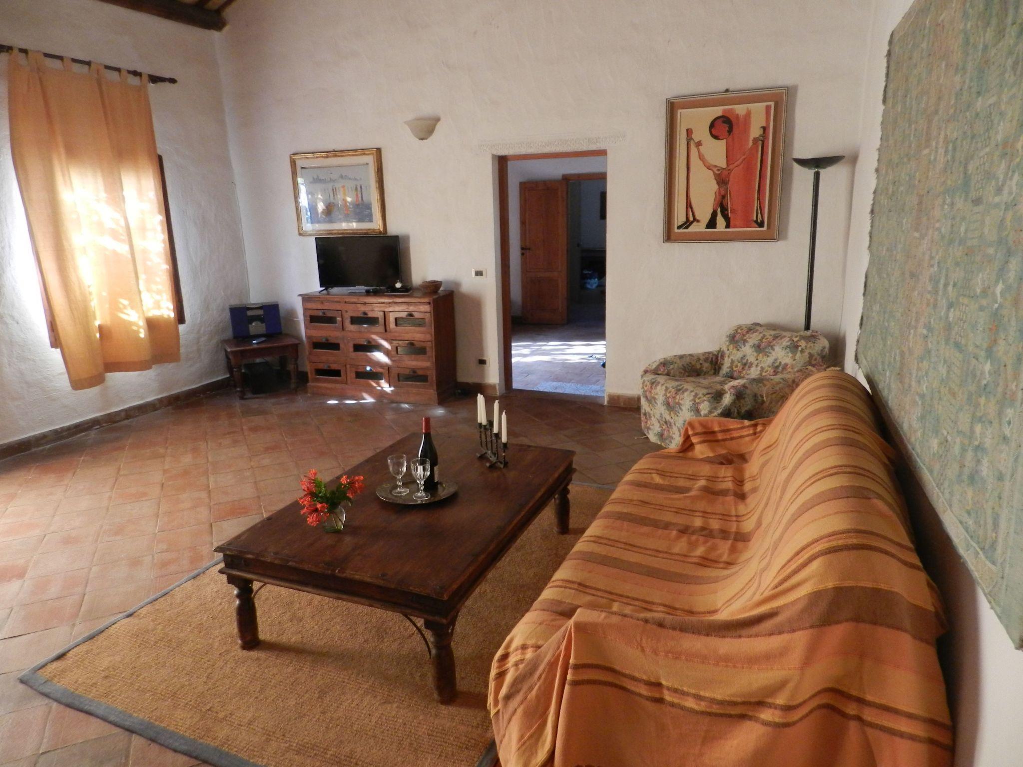 The main floor (approx. 190 square metres), which is arranged in a horseshoe shape around a small agrarian garden, has been lovingly and lavishly restored: large panoramic veranda / terrace with a view of the sea on the horizon in clear weather, 2nd veranda in front of the large dining kitchen (***, off. Fireplace, brick worktop, dishwasher, microwave and washing machine), immense living-bedroom with double sofa bed and exit to veranda, study with stereo, extra bed, lounge with 2 sofa beds, Sat.TV and exit to the garden, intermediate room with single bed and air conditioning, 2 further, very spacious 3-bed rooms, 2 small new bathrooms and a large bathroom (with bathtub) The furnishings are rich and good, many valuable, old pieces in dark wood, high rooms with typical wooden beam ceilings, beautiful terracotta floors, a wood stove and a gas heater are available for the transitional period.