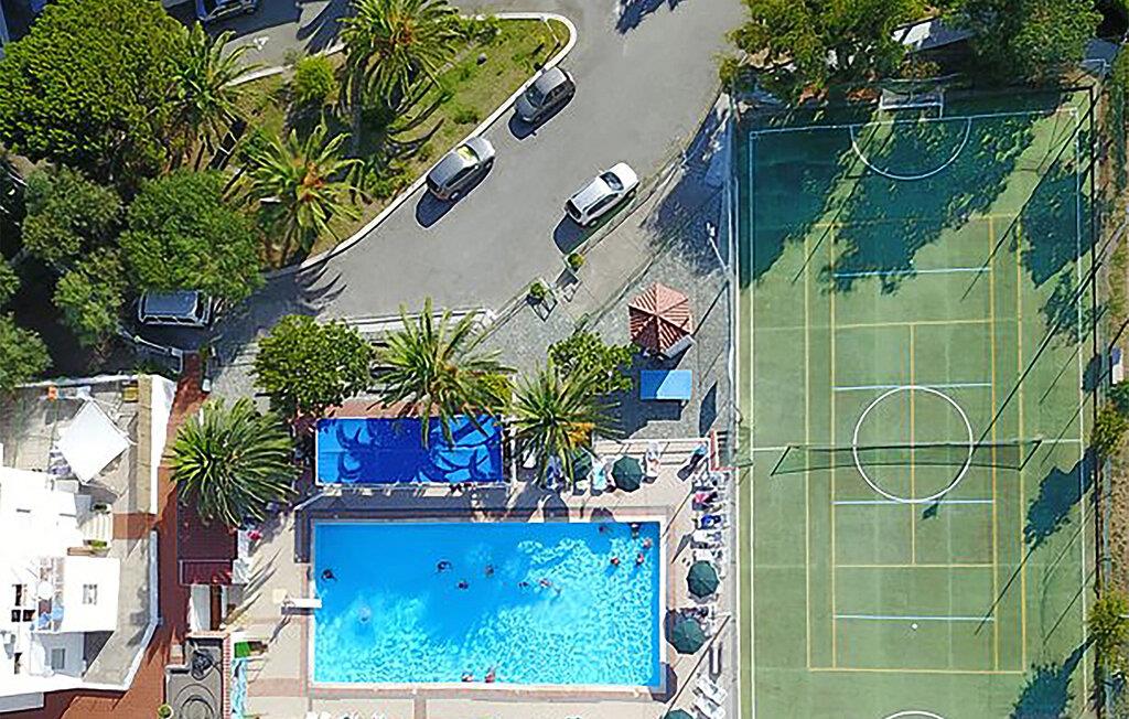 Fra altanen har I en vidunderlig udsigt over havet og bjergene, og her har I det bedste sted at nyde morgenkaffen i ro, mag og fuglesang. Trask ned til den fællespool for dagens første dukkert eller snup et slag tennis, inden I tager på tur.