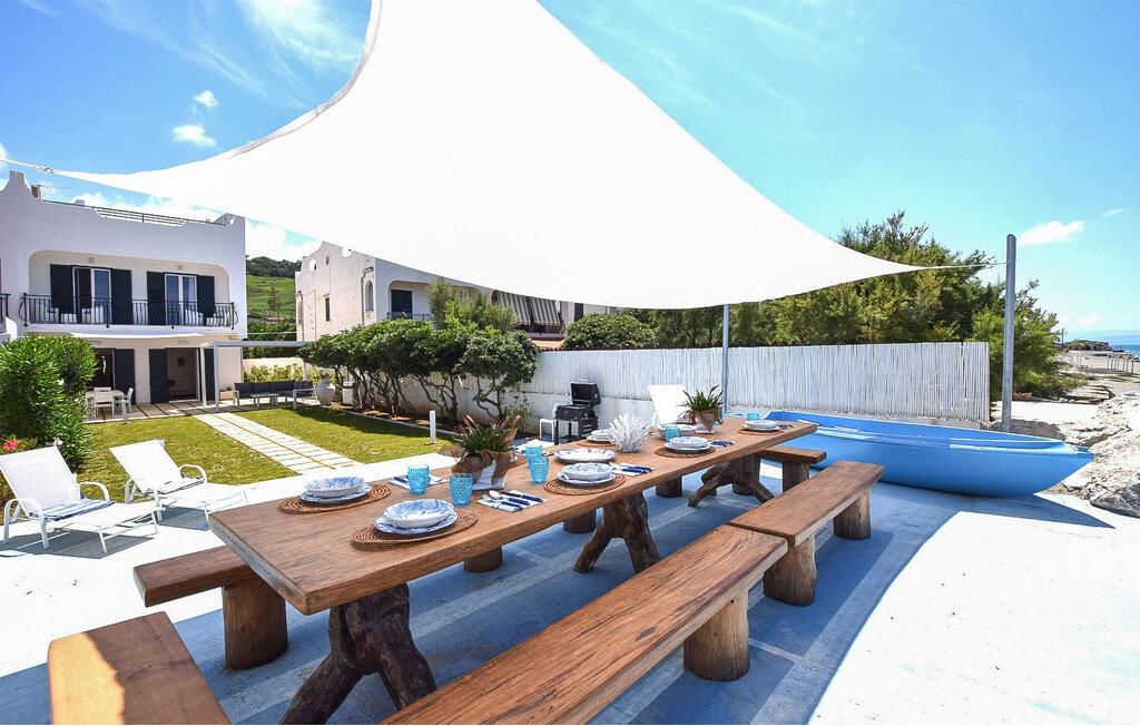Nyd en dejlig ferie i dette fortryllende feriehus ved stranden. I kan næppe være tættere på stranden end i denne rummelige og komfortable villa – Det Tyrrhenske Hav ligger lige for jeres fødder. Det lyse og smagfuldt indrettede interiør byder på masser af plads til venner eller familie – glæd jer til sjov madlavning med venner, hyggelige måltider og hyggelige aftener foran fjernsynet. Jeres have grænser op til stranden – så I kan forfriske jer i havet og vende tilbage til jeres skyggefulde område under teltet for kølige drinks og stemningsfulde måltider. Om aftenen kan I tænde grillen og lytte til den blide lyd af bølgerne med vin og stearinlys. Gå en tur gennem den charmerende gamle bydel i Pizzo og prøv den berømte Tartufo-is, besøg det imponerende Castello Murat, eller tag en bådtur langs den maleriske kyst i Tropea med dens turkisblå bugter. Vandr gennem naturparken Serre og nyd regionale specialiteter i en hyggelig trattoria.