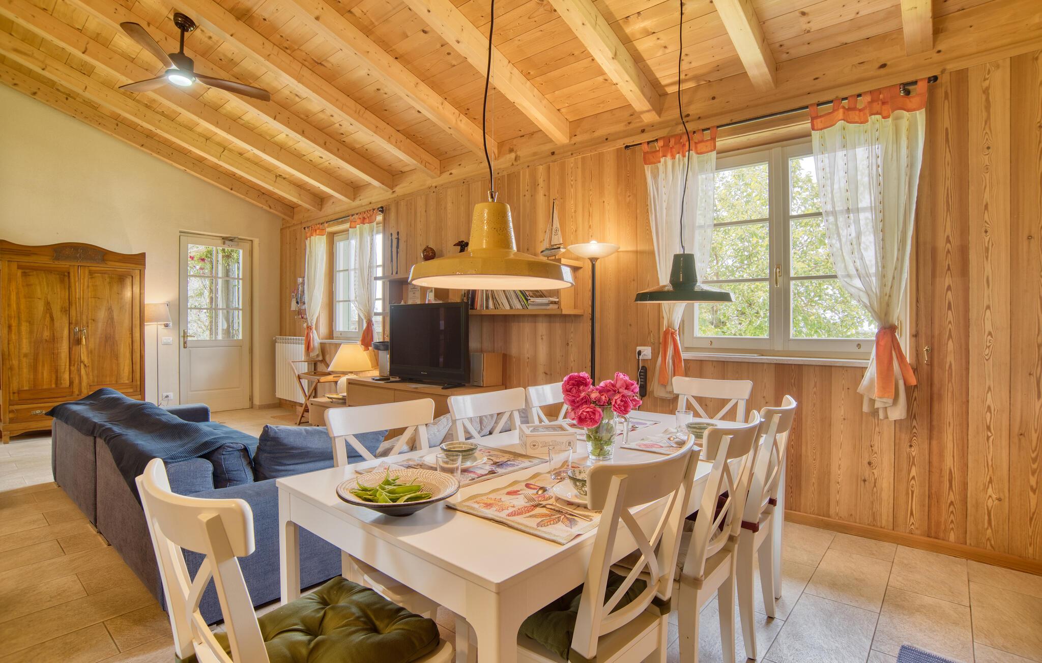 Velkommen til dette attraktive hus, som med sin beliggenhed er det optimale sted for en uforglemmelig ferie tæt på naturen. De hyggelige værelser med deres autentiske indretning i stil med et moderne landsted med skønne trælofter og delvist træbeklædte vægge, som her møder moderne møbler, gør det til det optimale grundlag for en afslappende pause. Slap af sammen i hyggelige rammer om aftenen, spil spil eller snak sent ved biopejsen.