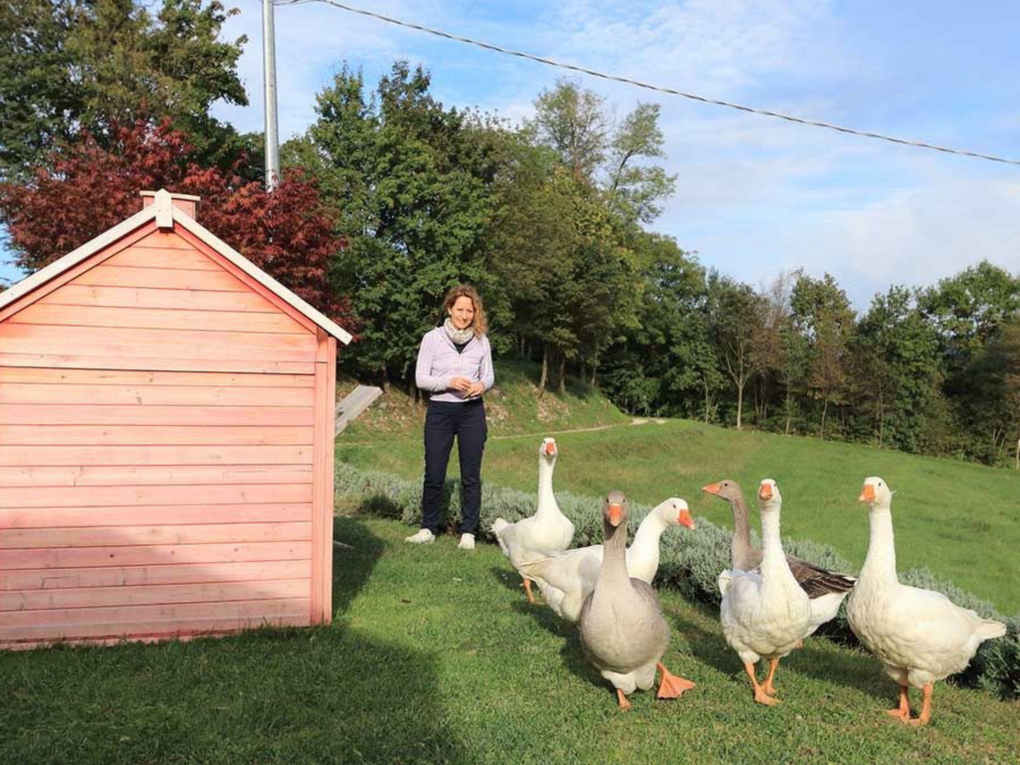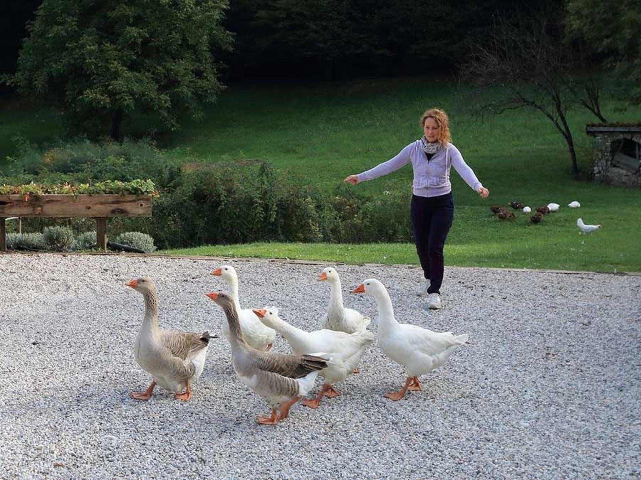 Large terrace equipped with gazebo, sunbeds, barbecue and games for the little ones. We live in a cottage with a large garden and we want to share this space also with our animal friends. Walking in the garden you can meet sweet ducks, geese and other farmyard animals that animate our pond; you can also pick seasonal fruits from the trees in our park; you can admire our industrious bee friends that produce delicious honey.