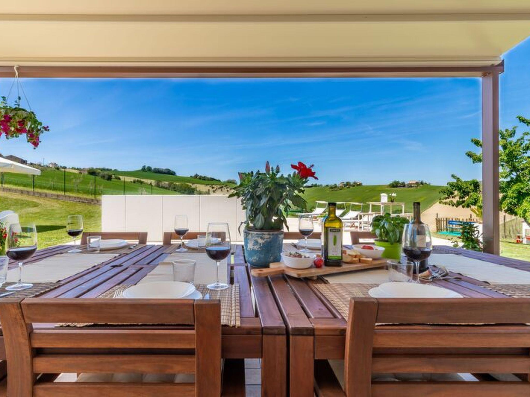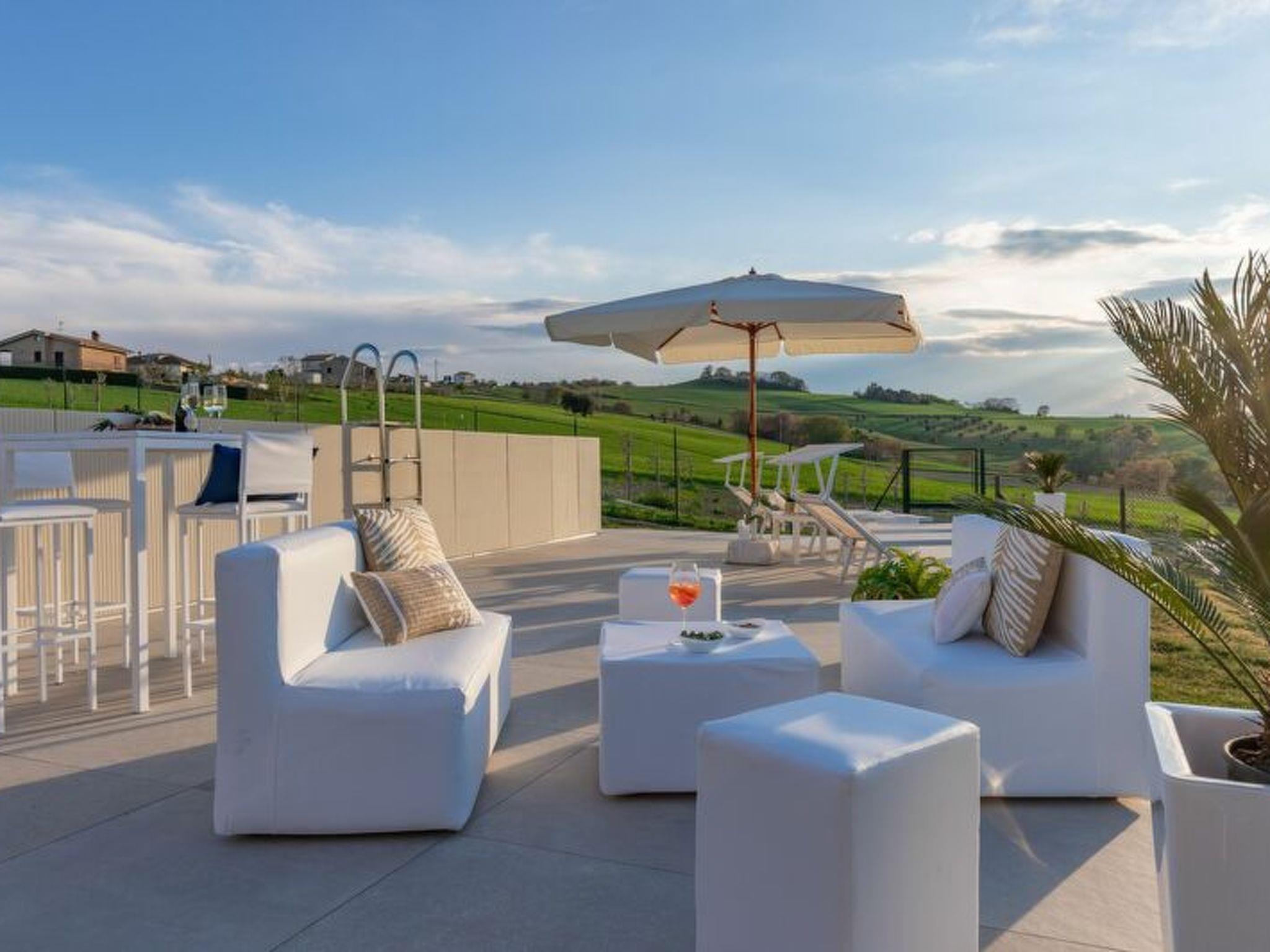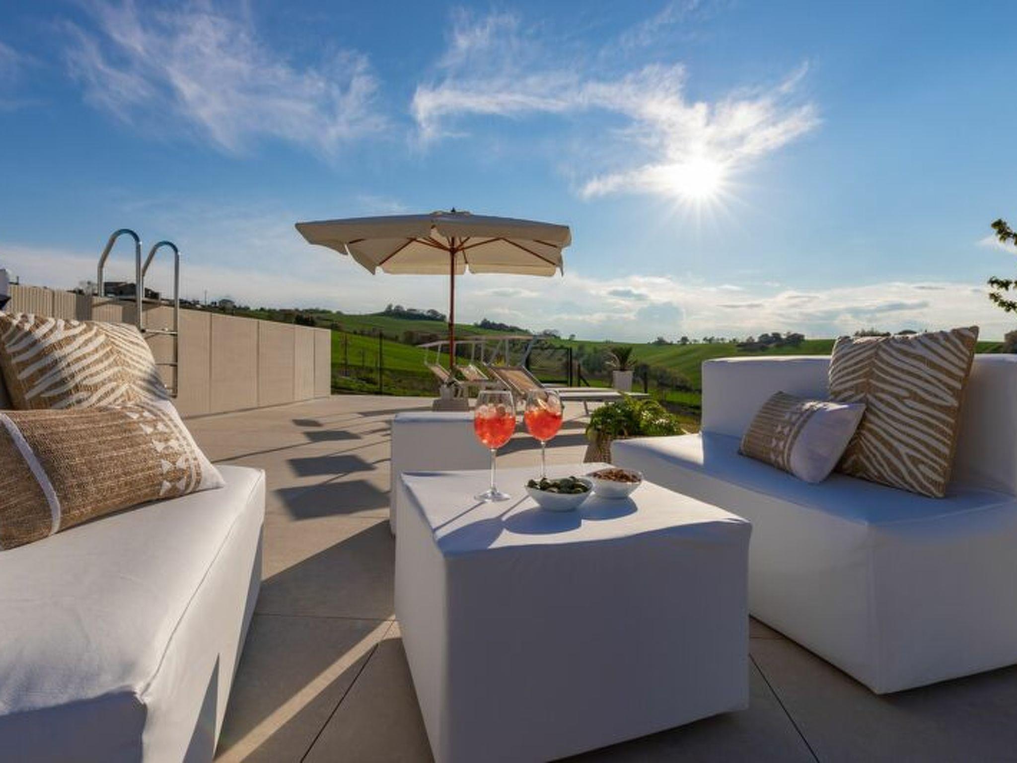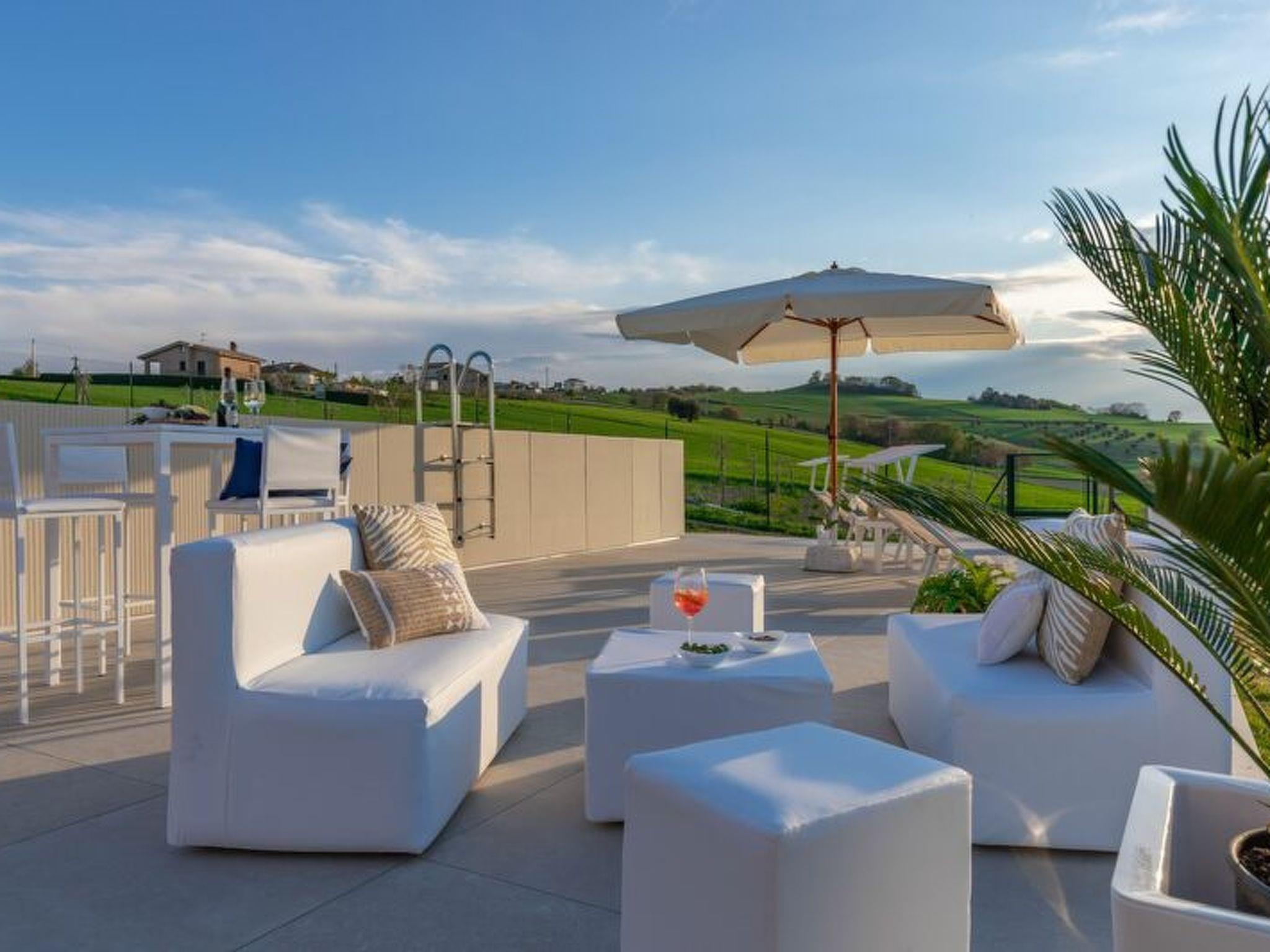 Villa Clair is a refined exclusive villa in the heart of the Marche that comfortably accommodates families and groups of friends up to 14 people to enjoy a relaxing holiday surrounded by nature. Every space of the villa has been designed to give maximum comfort to guests and enriched with details that will make your stay unforgettable.The villa is distributed over two floors for about 200 square meters in totalGround Floor - Living Areathe entrance of the villa overlooks the open space living area which is the heart of the house where you will find an elegant and large sofa, a pallet stove, a dining table for 15 people and large windows overlooking the garden and the pool area which they give the environment a priceless brightness.The large and modern eat-in kitchen is equipped with an American island seating 4, 5-burner hob, dishwasher, refrigerator, freezer, steam oven and electric oven, microwave, utensils and crockery.The living area is completed by a full service bathroom with shower, sink, toilet and bidetSleeping areaClimbing the large open staircase leading to the first floor you arrive at a landing before the sleeping area which offers a relaxation or reading corner with sofa and armchair (which become a sofa bed and armchair bed if necessary), a comfortable and large desk in glass overlooking the terrace equipped with garden armchairs.Along the corridor that crosses the sleeping area we find1 bedroom with two single beds (90x190) that can be joined and become a double1 full bathroom with window with shower, sink, toilet and bidet1 double bedroom (180x190)1 quadruple room with double bed (180x190) and two single beds, one of which retractable (90 * 180)1 triple room with double bed (180 * 190) and single bed (90 * 180)a complete bathroom with a window accessible from the triple room and the quadruple roomA laundry / storage area accessible from the quadruple room equipped with drying racks, washing machine, and wardrobesWELCOME KIT PROVIDED3 towels per person (1 shower towel, 1 face towel, 1 bidet towel)2 sheets per bed2 pillow casesBATH:1 shower mat for each bathroom1 liquid hand soap with disposable dispenser for each bathroom1 liquid shampoo shower with disposable dispenser for each bathroom2 rolls of wrapped toilet paper for each bathroomKITCHEN1 disposable dish sponge1 kitchen sponge cloth1 liquid hand dish detergent format 500 ml3 tabs dishwasher1 roll of paper towels1 disposable hand sanitizer gel of 500 ml2 kitchen tea towels2 kitchen tableclothsCLEANINGcleaning is carried out at the beginning and up to the stay with professional sanitization of the rooms at each guest changeINTERNETwifi internet is available for free throughout the hotel2 WI-FI: NORMAL AT 10MB AND FAST AT 65MB WITH A MAXIMUM OF 70GB NAVIGATIONAIR CONDITIONING AND HEATINGTo obtain a pleasant and optimal temperature, the villa has both underfloor heating and air conditioning.These systems also allow us to cope with sudden changes in temperature if necessaryKEEPERin the annex of the villa the caretaker is available for routine maintenance and cleaning of the garden and swimming pool and for any need.CHILDRENchildren are welcome and all environments are suitableACCESSIBILITY'there are internal steps to access the first floor of the villaVIEWpanoramic view on the surrounding hills and partially on the seaNOISEThe villa is surrounded by greenery and therefore is very quiet, the only noises you will hear are the sweet sounds of nature such as the chirping of birds and the rustle of leavesANIMALSpets are allowedPARKING AREAfree outdoor parking on sitePRIVACY AND SECURITYthere is a fire extinguisher and a first aid kitGround Floor - Living Areathe entrance of the villa overlooks the open space living area which is the heart of the house where you will find an elegant and large sofa, a pallet stove, a dining table for 10 people and large windows overlooking the garden and the pool area which they give the environment a priceless brightness.Sleeping areaAlong the corridor that crosses the sleeping area we find1 bedroom with two single beds (90x190) that can be joined and become a double1 full bathroom with window with shower, sink, toilet and bidet1 double bedroom (180x190)1 quadruple room with double bed (180x190) and two single beds, one of which is foldaway (90 * 180)1 triple room with double bed (180 * 190) and single bed (90 * 180)a complete bathroom with a window accessible from the triple room and the quadruple roomA laundry / storage area accessible from the quadruple room equipped with drying racks, washing machine, and wardrobesLinen and towels are provided free of charge and you can find an extra set of pillows if you prefer softer or firmer ones.we provide free toiletries, hairdryer, toilet paper, rugs and towels.Toiletries: shampoo-shower, hand soapGround Floor - Living AreaThe large and modern eat-in kitchen is equipped with an American island seating 4, 5-burner hob, dishwasher, refrigerator, freezer, steam oven and electric oven, microwave, utensils and crockery.Ground Floor - Living AreaThe living area is completed by a full service bathroom with shower, sink, toilet and bidetSleeping area1 full bathroom with window with shower, sink, toilet and bideta complete bathroom with a window accessible from the triple room and the quadruple roomA laundry / storage area accessible from the quadruple room equipped with drying racks, washing machine, and wardrobeswe provide free toiletries, hairdryer, toilet paper, rugs and towels.Toiletries: shampoo-shower, hand soap
