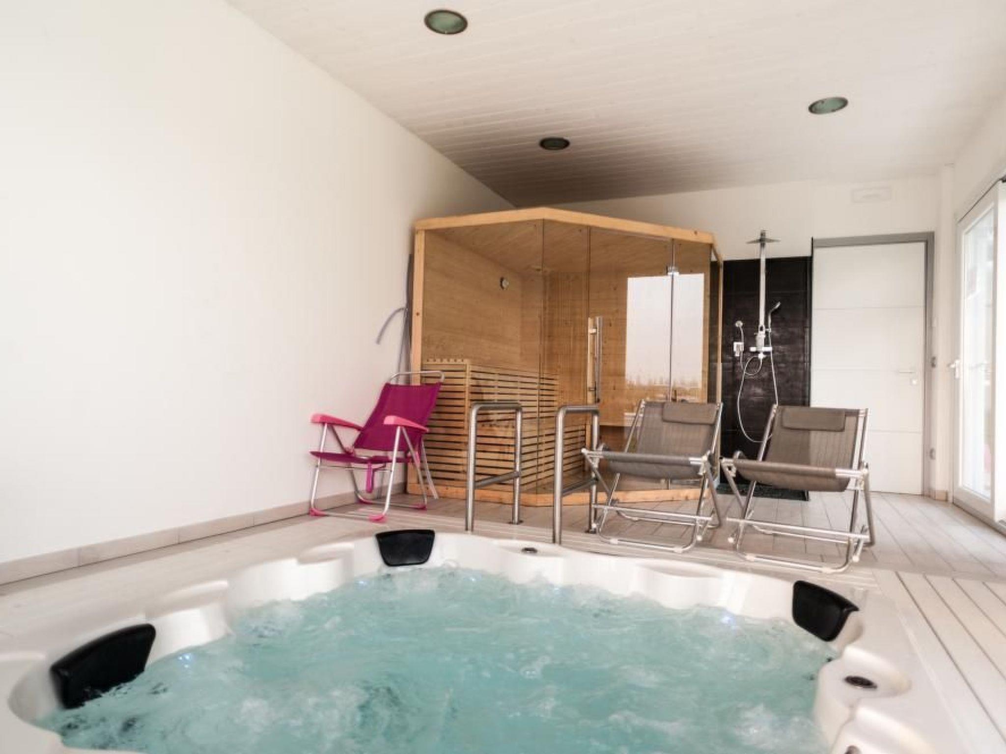 The property's garden is naturally enclosed by a hedge and is enriched by a small pool, a children's area and an indoor relaxation area with sauna and whirlpool.