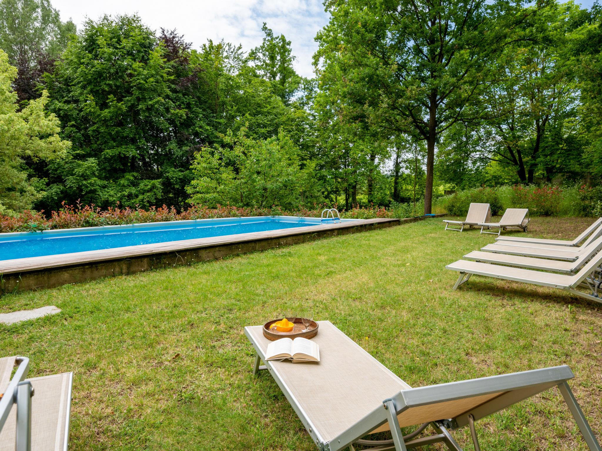 Rustic cottage "Giorgio Winery". 5 km from the centre of Ferrere, 19 km from the centre of Asti, 28 km from the centre of Alba, on a slope, in the countryside. Private: natural state property 5'000 m2 (fenced) with lawn and trees, meadow, swimming pool (above ground) (12 x 4 m, depth 140 cm, seasonal availability: 15.May. - 15.Oct.). Outdoor shower, terrace, garden furniture, barbecue, pool maintenance by the owner/gardener. 900 m long bumpy motor access. Parking (for 3 cars) at the house on the premises. Shop 3 km, supermarket 5 km, bus stop 34 km, railway station "Asti" 19 km. Nearby attractions: Turin 40 km.