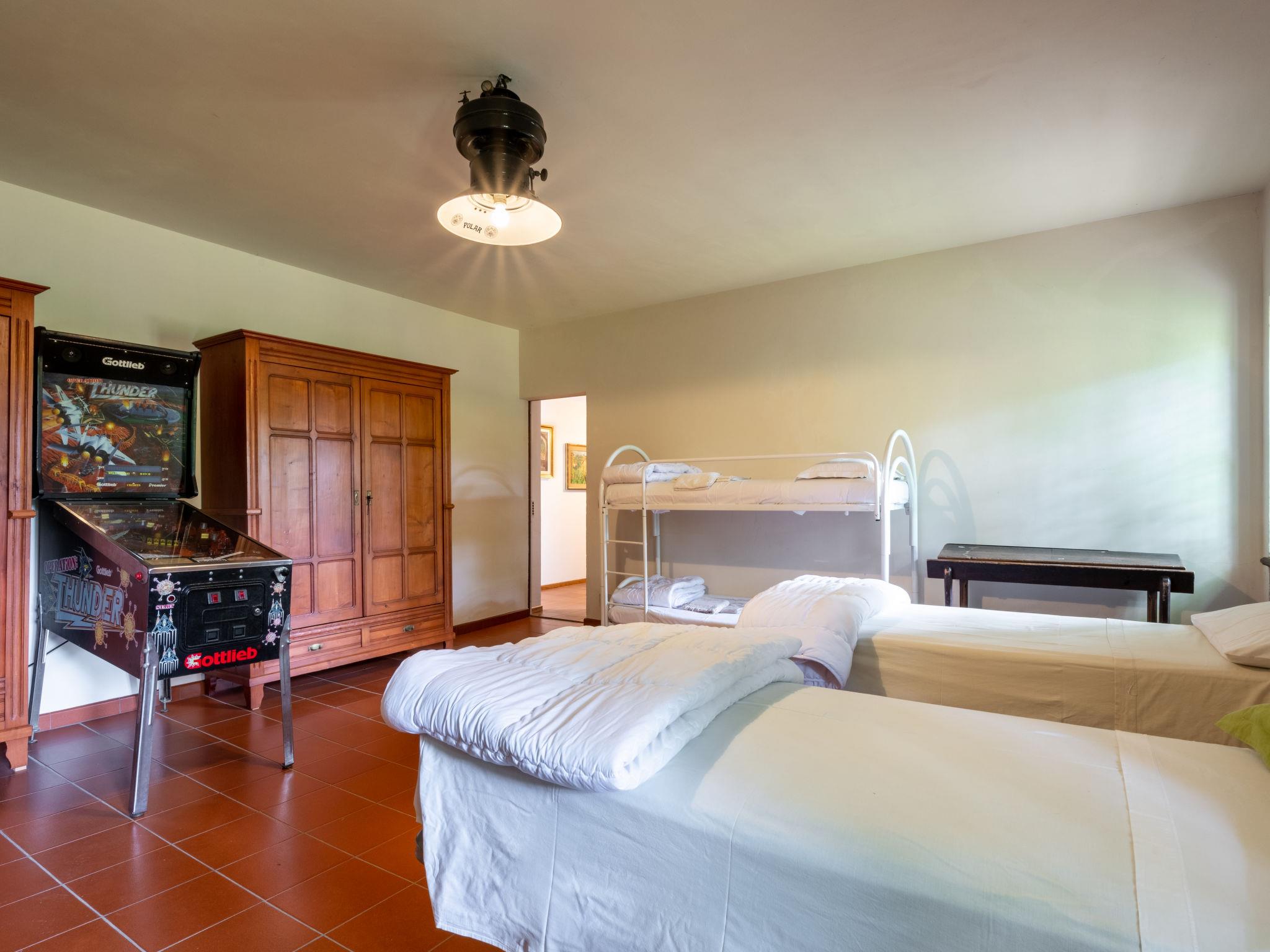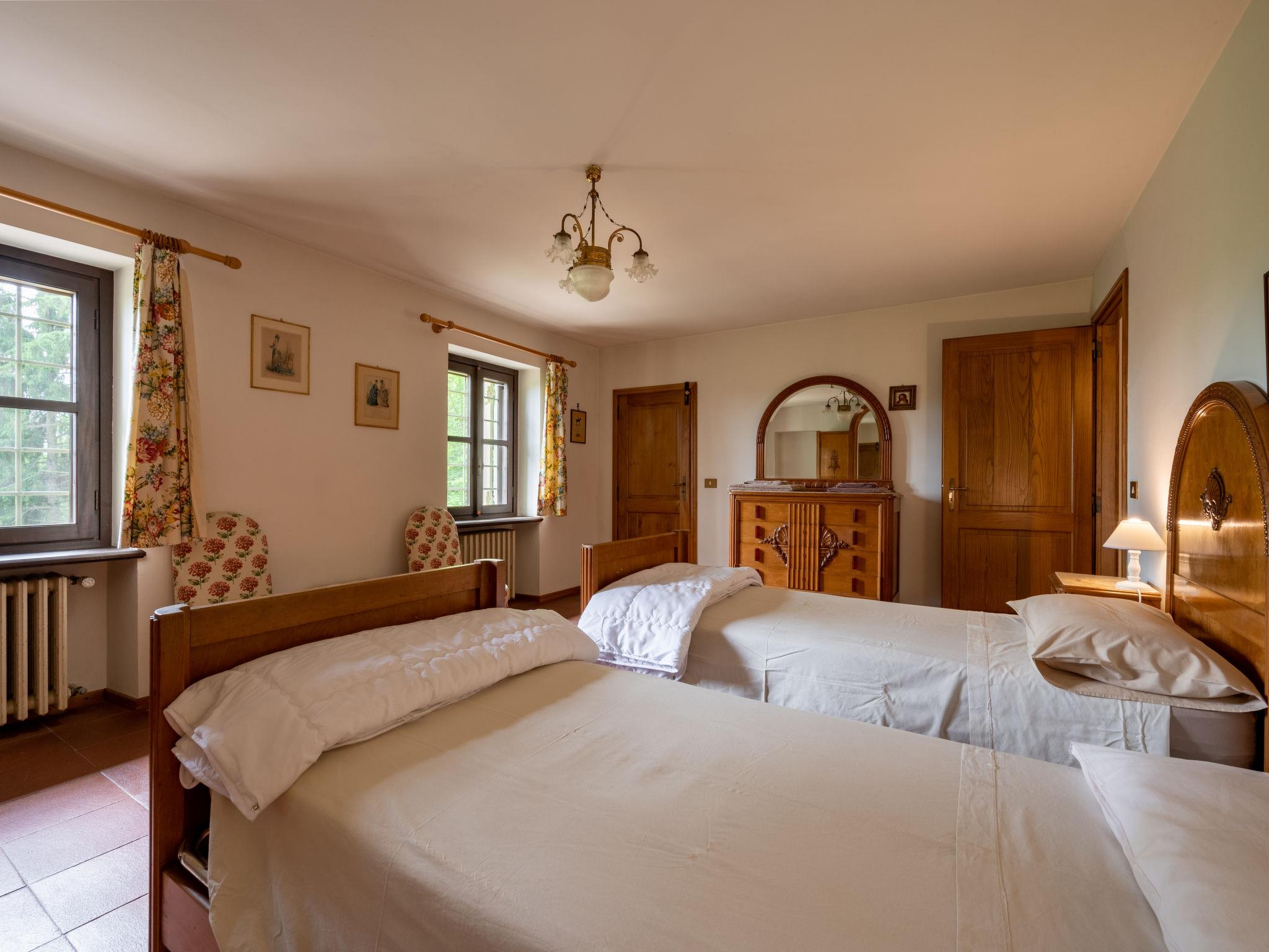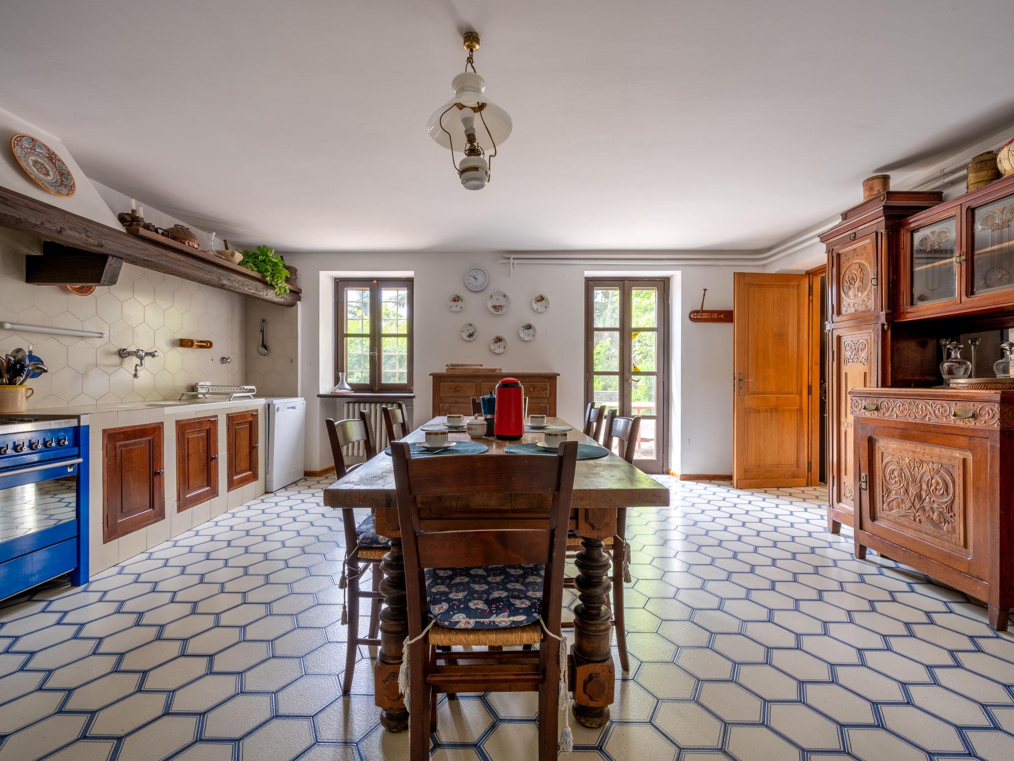 7-room house 200 m2 on 2 levels. Rustic and cosy furnishings: living room with open-hearth fireplace and TV. Kitchen (oven, dishwasher, 5 gas rings, toaster, freezer, electric coffee machine) with dining table. Exit to the garden. Shower/WC. Upper floor: living room. 1 room with 1 french bed (160 cm), open-hearth fireplace. 1 room with 1 french bed (160 cm). 2 rooms, each room with 2 beds. 1 room with 2 beds and 1 x 2 bunk beds. Bath/WC, shower/WC. Wood heating (extra). Heating available only from 01.10. to 15.04. Parquet floors. Box-room. Facilities: washing machine, children's high chair, baby cot. Internet (WiFi, free). Please note: non-smoking house. Maximum 1 pet/ dog allowed. IT005018C2T4VNPYVU