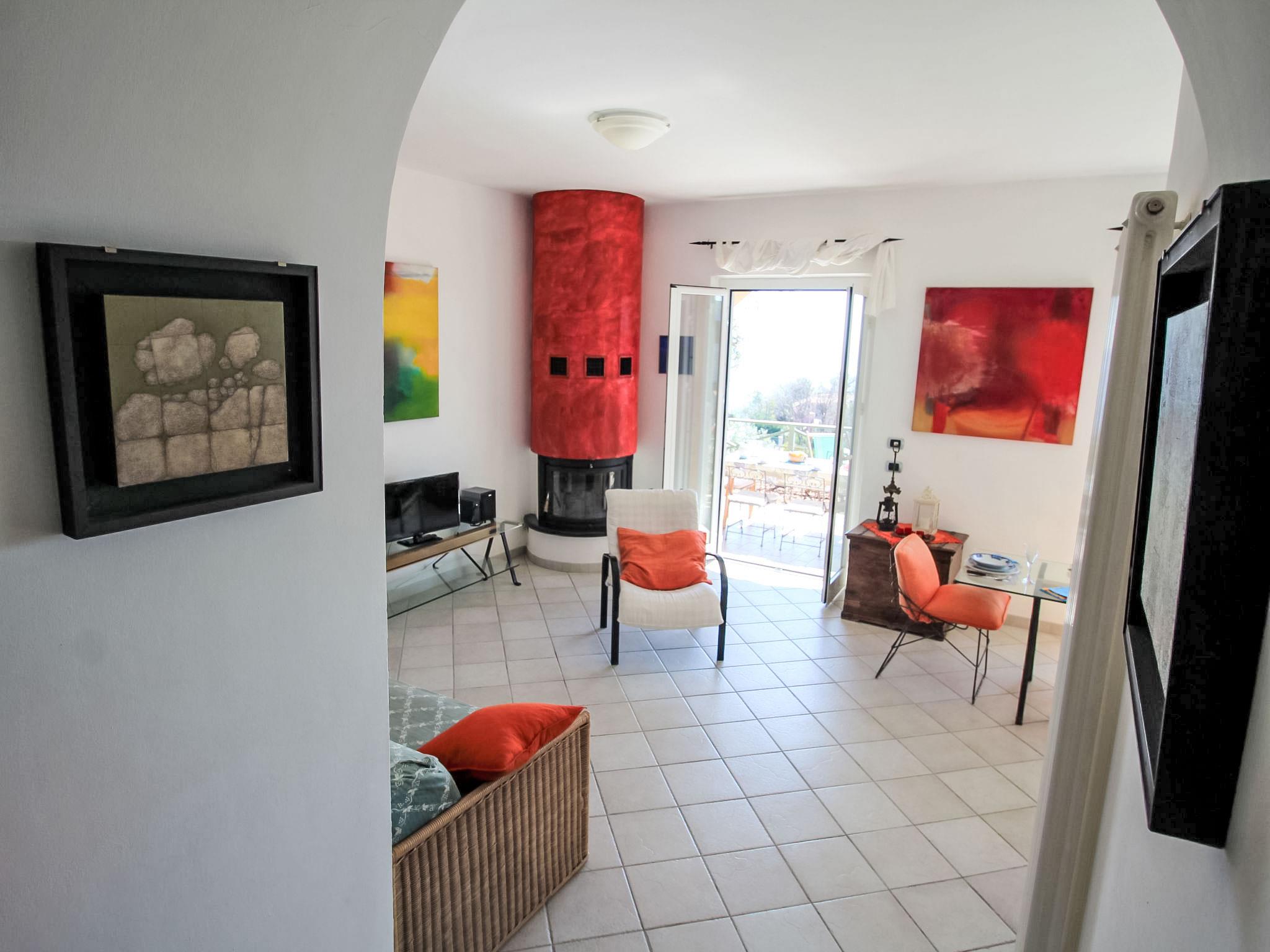 Single-family house "Sara". In the hamlet San Bernardino 3 km from the centre of Finale Ligure, in an elevated position on a slope, 3 km from the sea. Private: property 800 m2 (fenced) with lawn and trees. In the house: storage room for bicycles. Stepped path (20 steps) to the house. Public parking 50 m on the road. Shop 3 km, supermarket 3 km, restaurant 3 km, bus stop "32 Finale" 50 m, railway station "Finale Ligure" 3.5 km. Nearby attractions: Finalborgo 2 km, Pietra Ligure 10 km. Please note: car recommended.