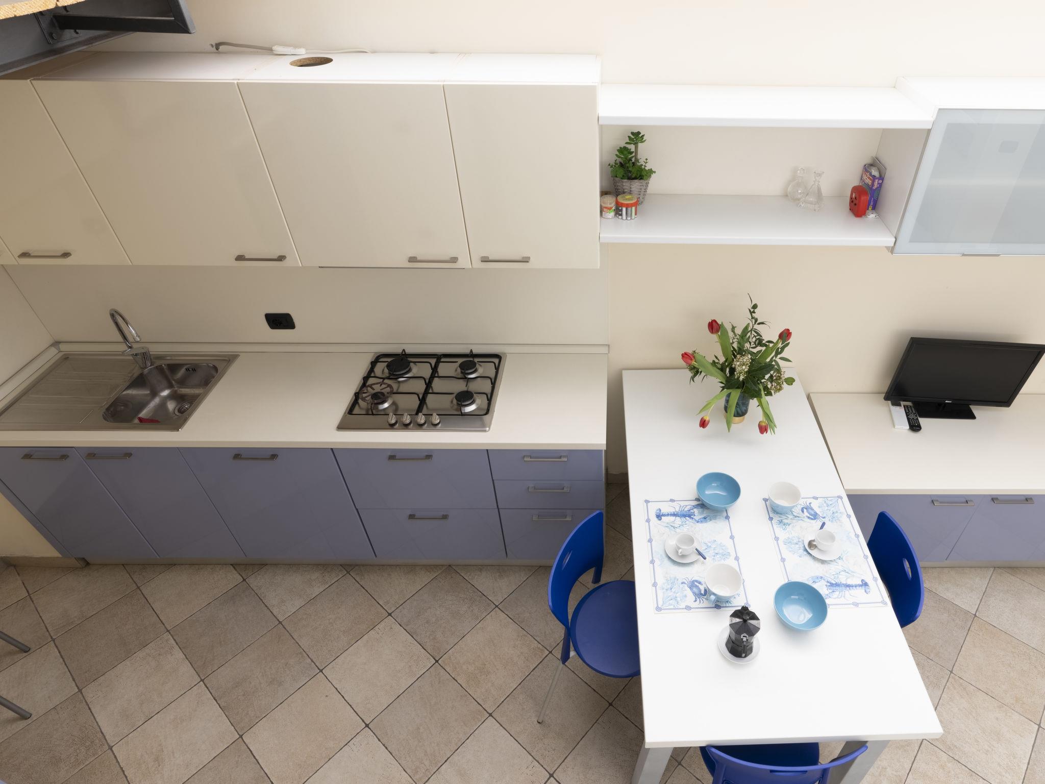 "Cielo e Mare (FLG111)", 1-room maisonette 50 m2, on the ground floor. Beautiful and cosy furnishings: living/sleeping room with 1 double sofabed (160 cm), dining table and TV. Open gallery with sloping ceilings, ceiling height 70 - 150 cm, without wardrobe with 2 beds (80 cm). Open kitchen (oven, dishwasher, 4 gas rings, toaster, kettle, freezer, electric coffee machine). Shower/WC. Air-conditioning, forced-air heating. Facilities: iron, hair dryer. Internet (WiFi, free). Please note: not suitable for small children. Private entrance. IT009029C2QGL6Y9JK