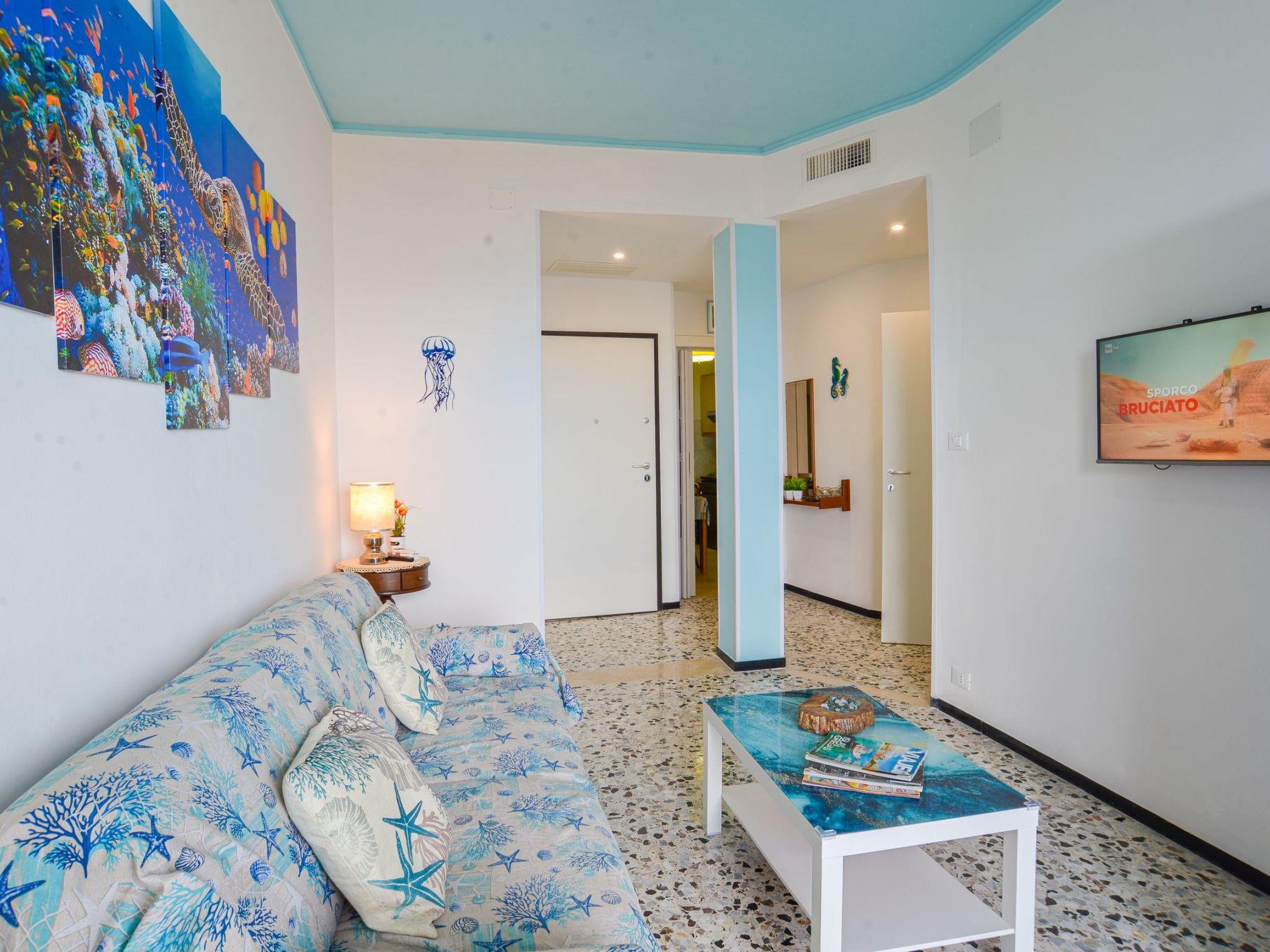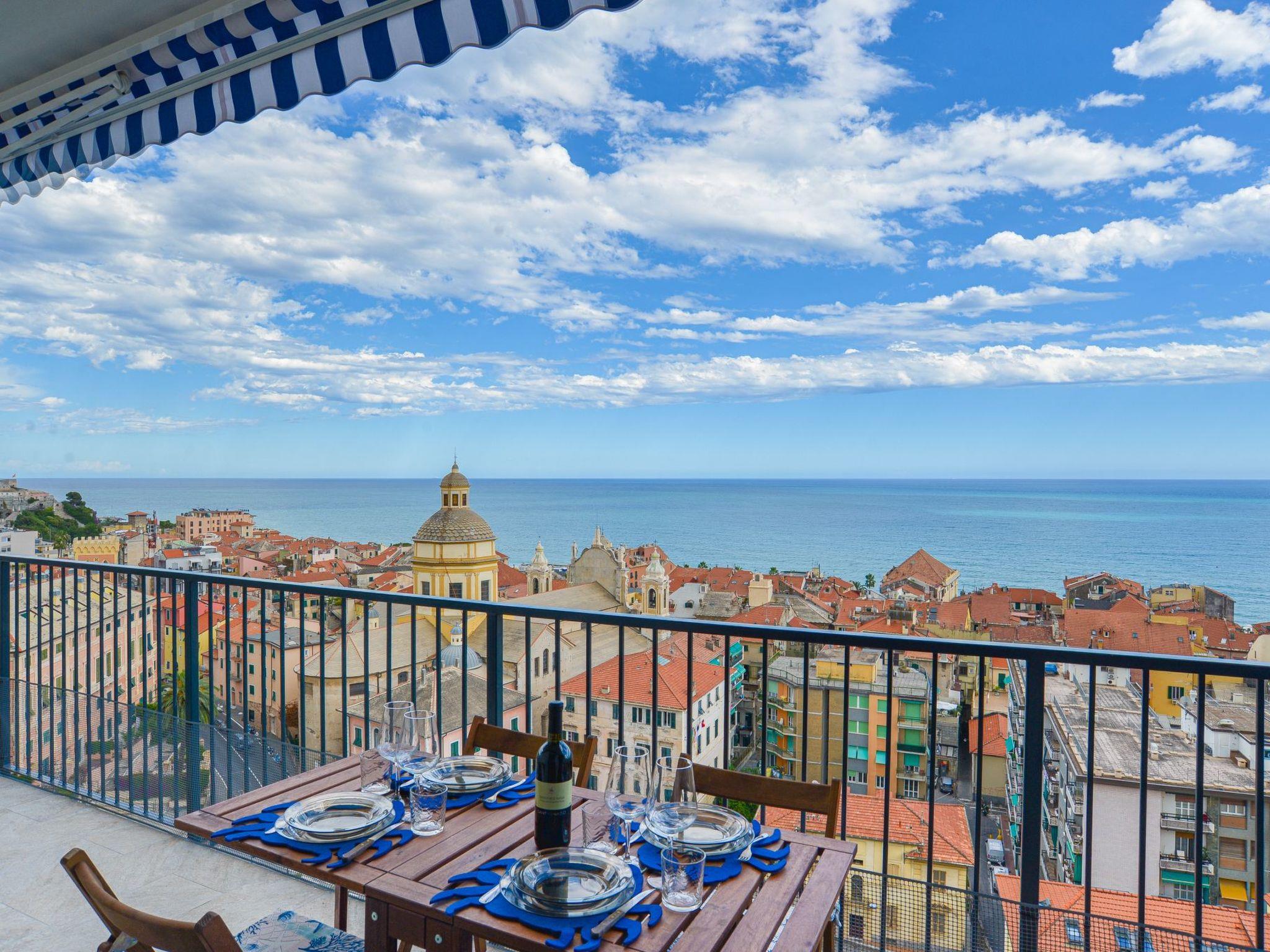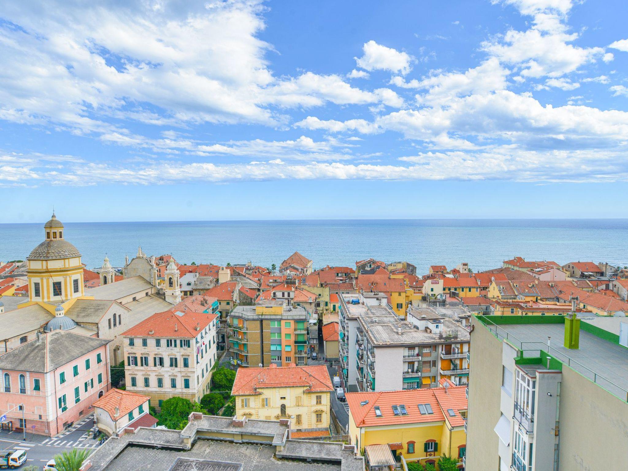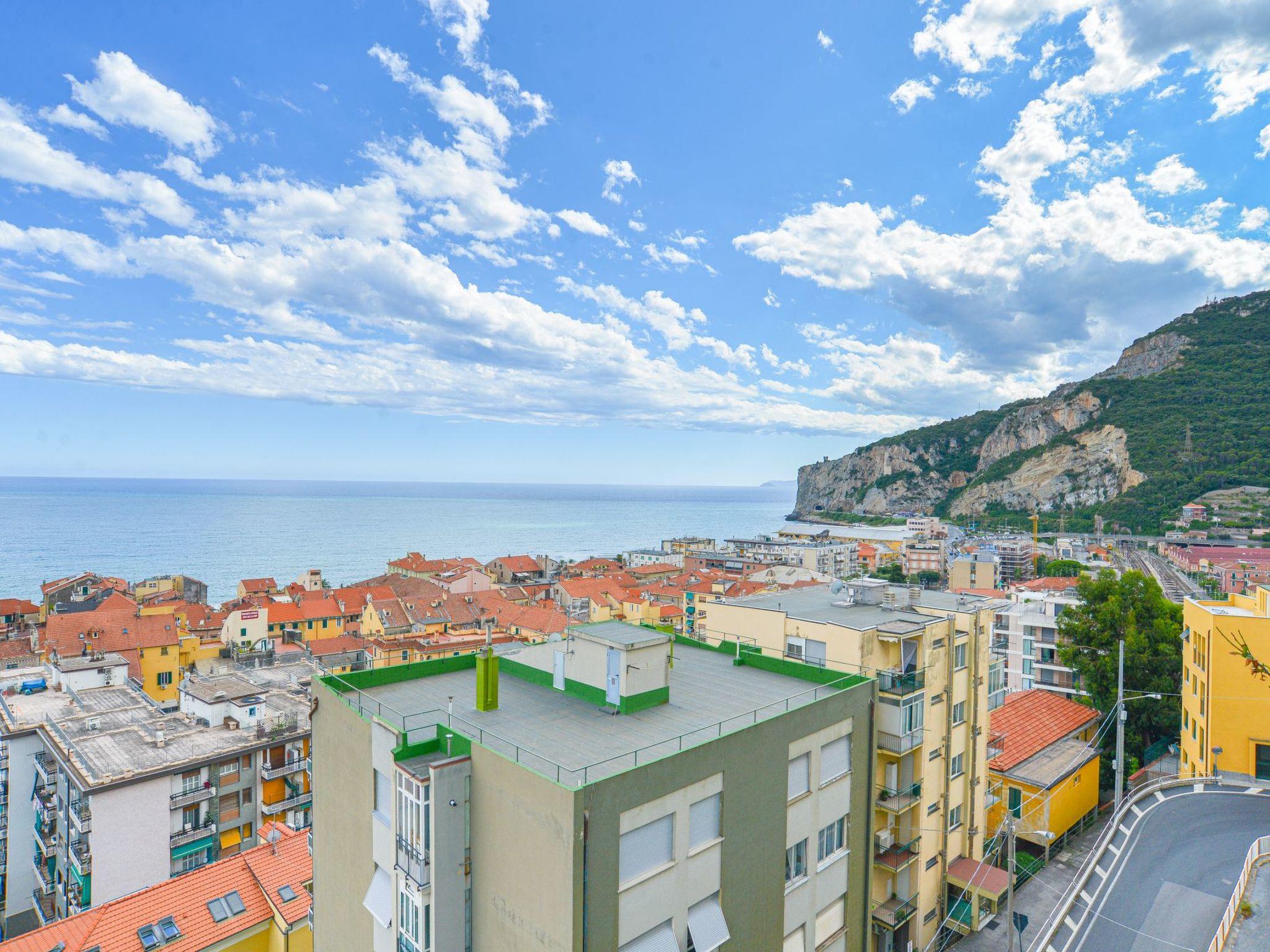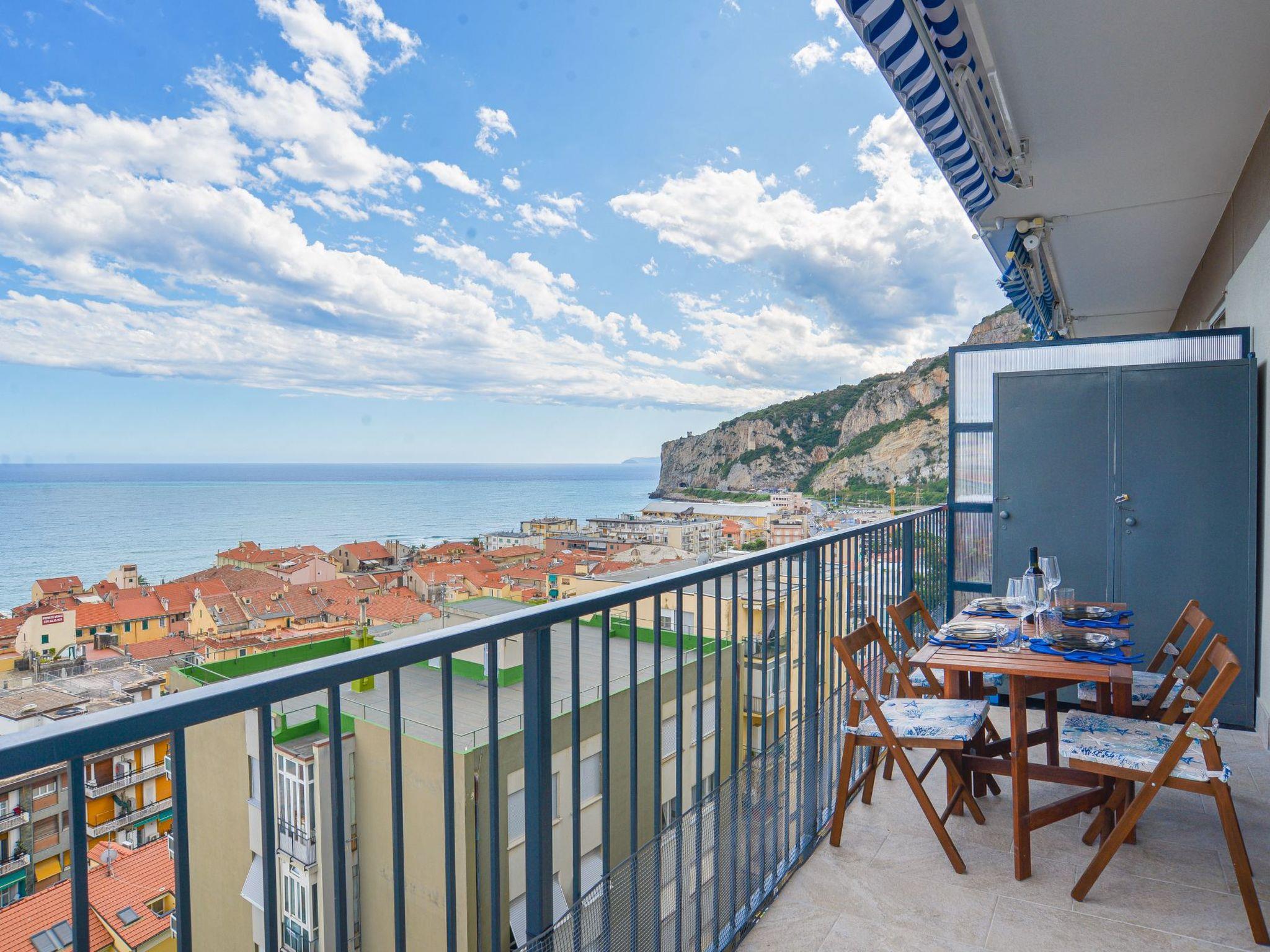 flat located on the top floor of an elegant seven-storey building, conveniently served by a lift. The apartment is composed of a cosy living area with sofa bed, an eat-in kitchen, a spacious double bedroom and a windowed bathroom complete with shower cubicle. The strong point is the spectacular and breathtaking view of the sea and the town of Finale, which can be admired from a large livable balcony, perfect for outdoor dining or relaxing moments at sunset. The house is equipped with air conditioning and Wi-Fi connection, to ensure maximum comfort during your stay. A convenient private garage is available about 450 metres from the flat, a real asset on busy summer days.