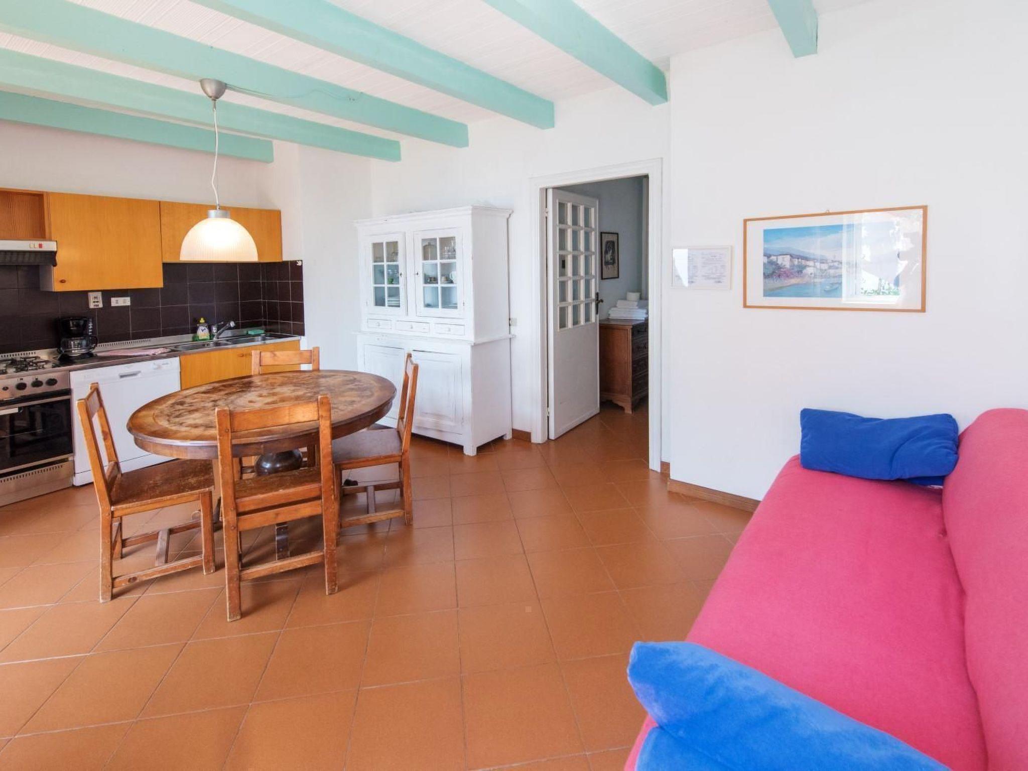 Three-room flat for 4 people + 2 children, ground floor, 50 sq m. Living room with double sofa bed, dining area, kitchenette. 1 double bedroom . 1 bedroom with bunk bed. Shower/WC. Terrace facing the sea. Maximum capacity: 4 adults + 2 children.