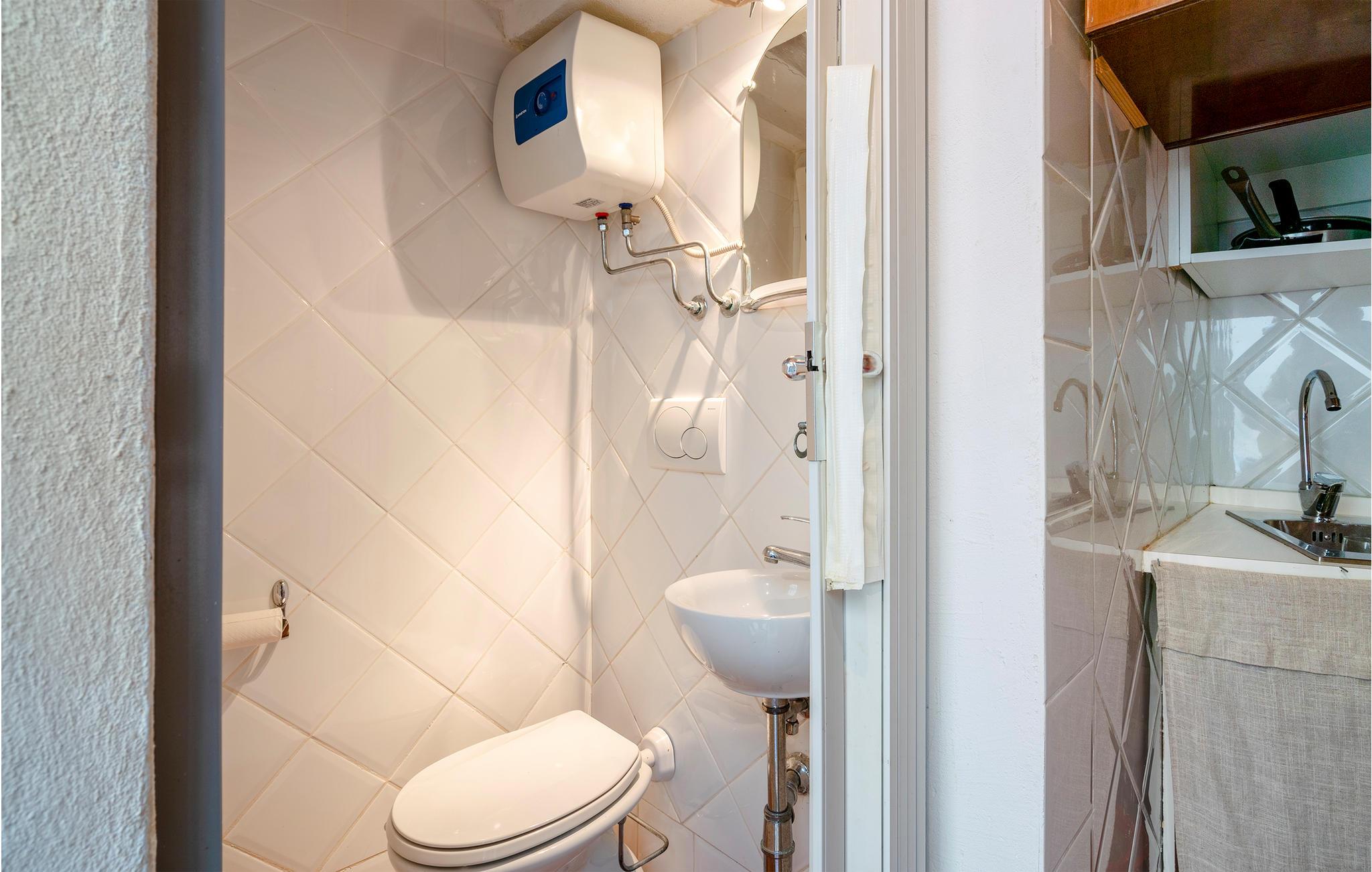Badeværelse (nr. 1) - WC. Varmt og koldt vand. Bruser
