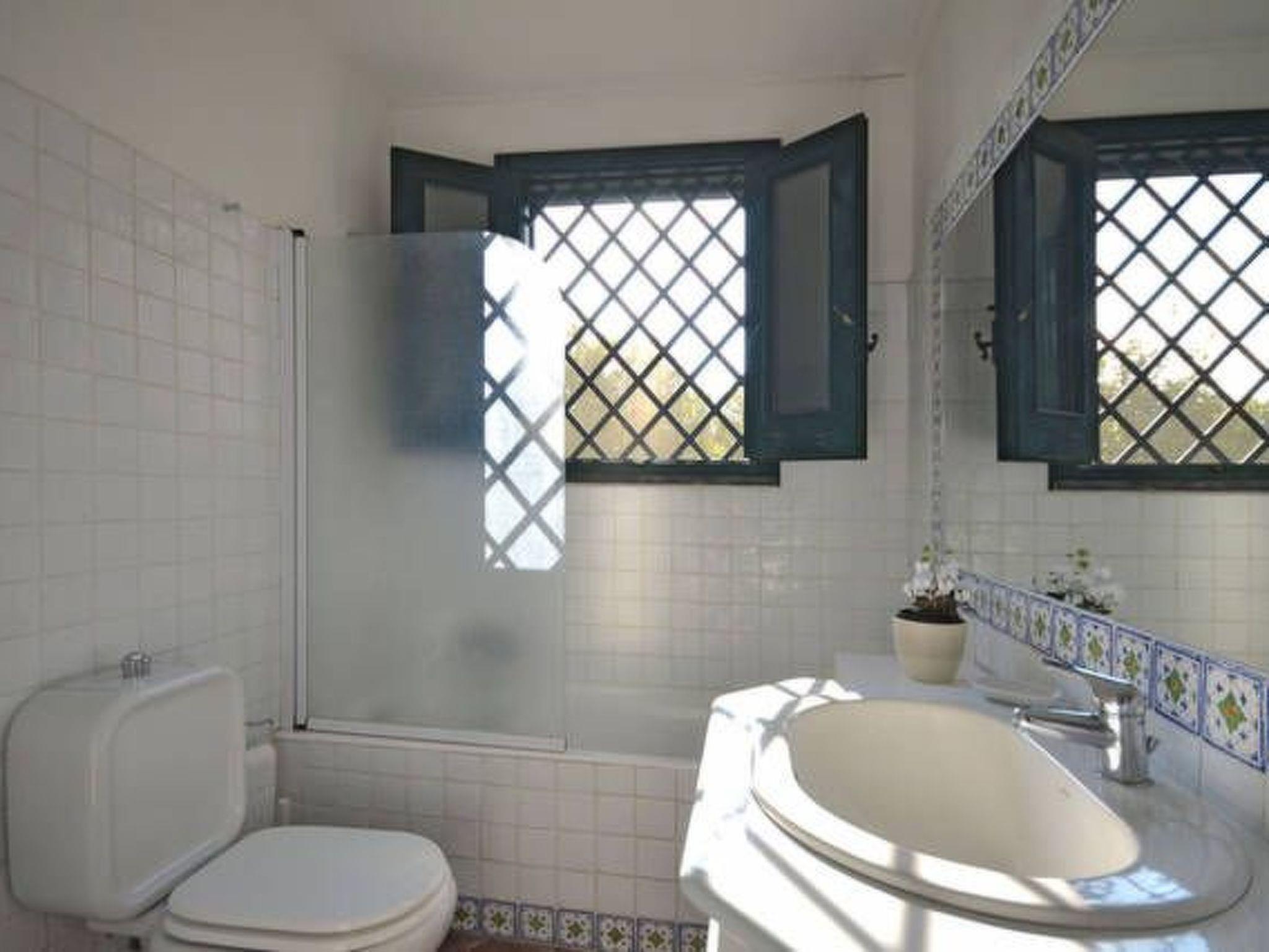 Between the houses is a patio with a large dining table for 16 people, overlooking the orange grove, the sea and the pool. The large, elegantly designed swimming pool blends perfectly with the terraces and lawn buildings. There are numerous shaded areas for outdoor dining and relaxing, enjoying the view of the surrounding countryside and the sea.