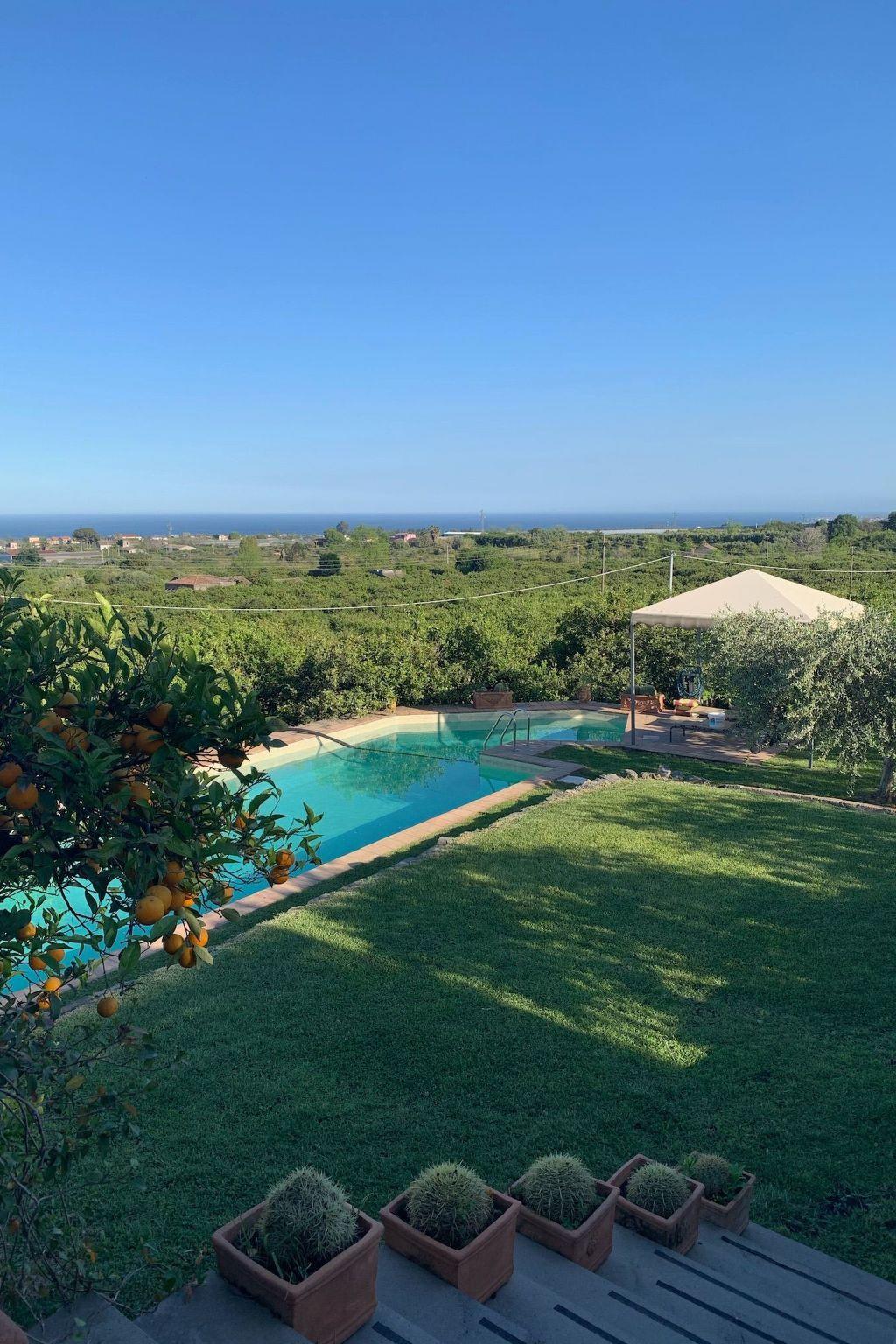 The property is immersed in the scents and colours of 3 hectares of orange groves, offering a splendid natural backdrop to Mount Etna and the sea. You can swim or ski while admiring the sea or explore the roads through Etna's vineyards.