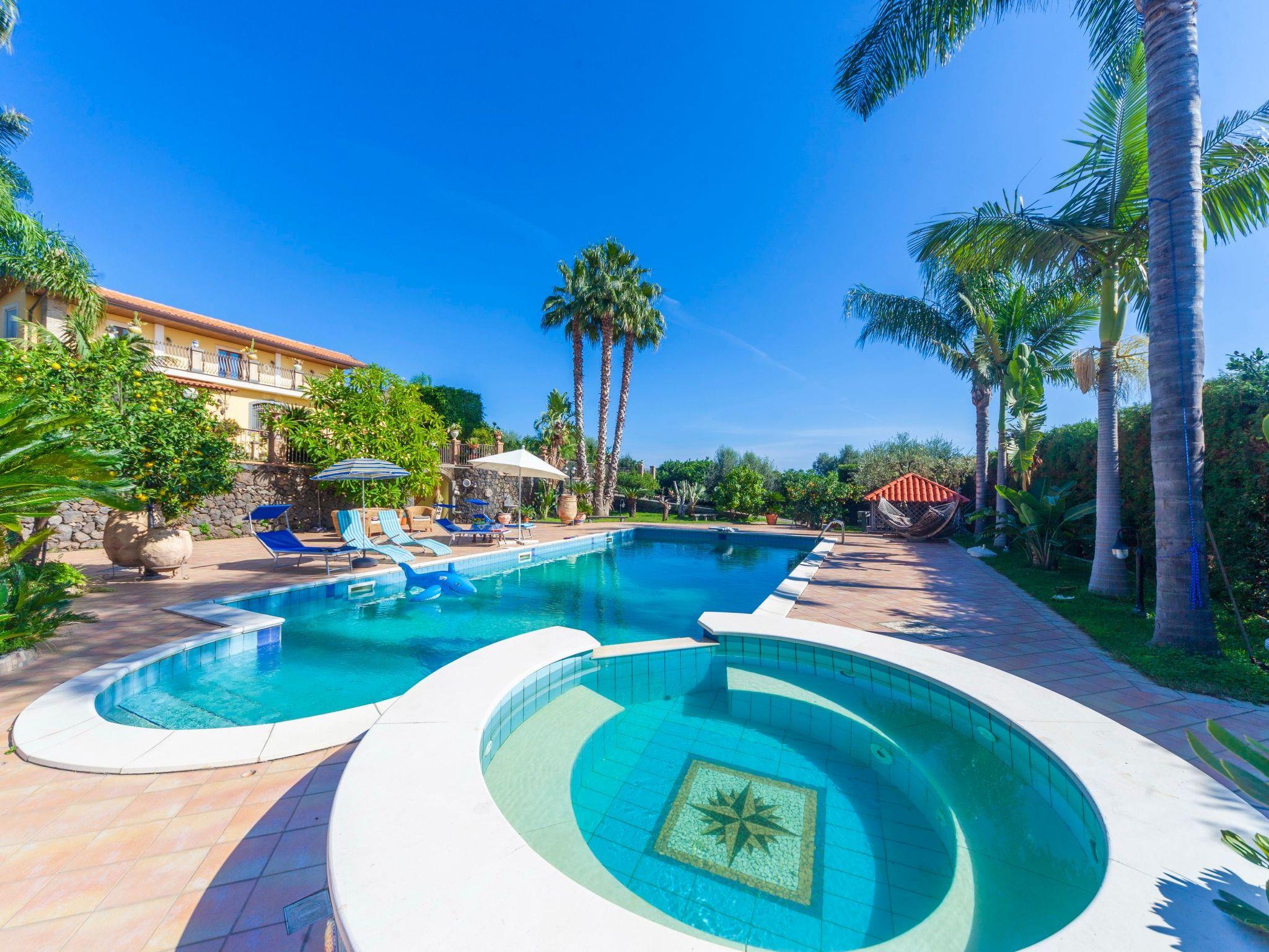 Mamma Nella is built using the renowned local lava stone which together with the tropical plants, the lawn and the Sicilian ceramics elegantly harmonize this important property.