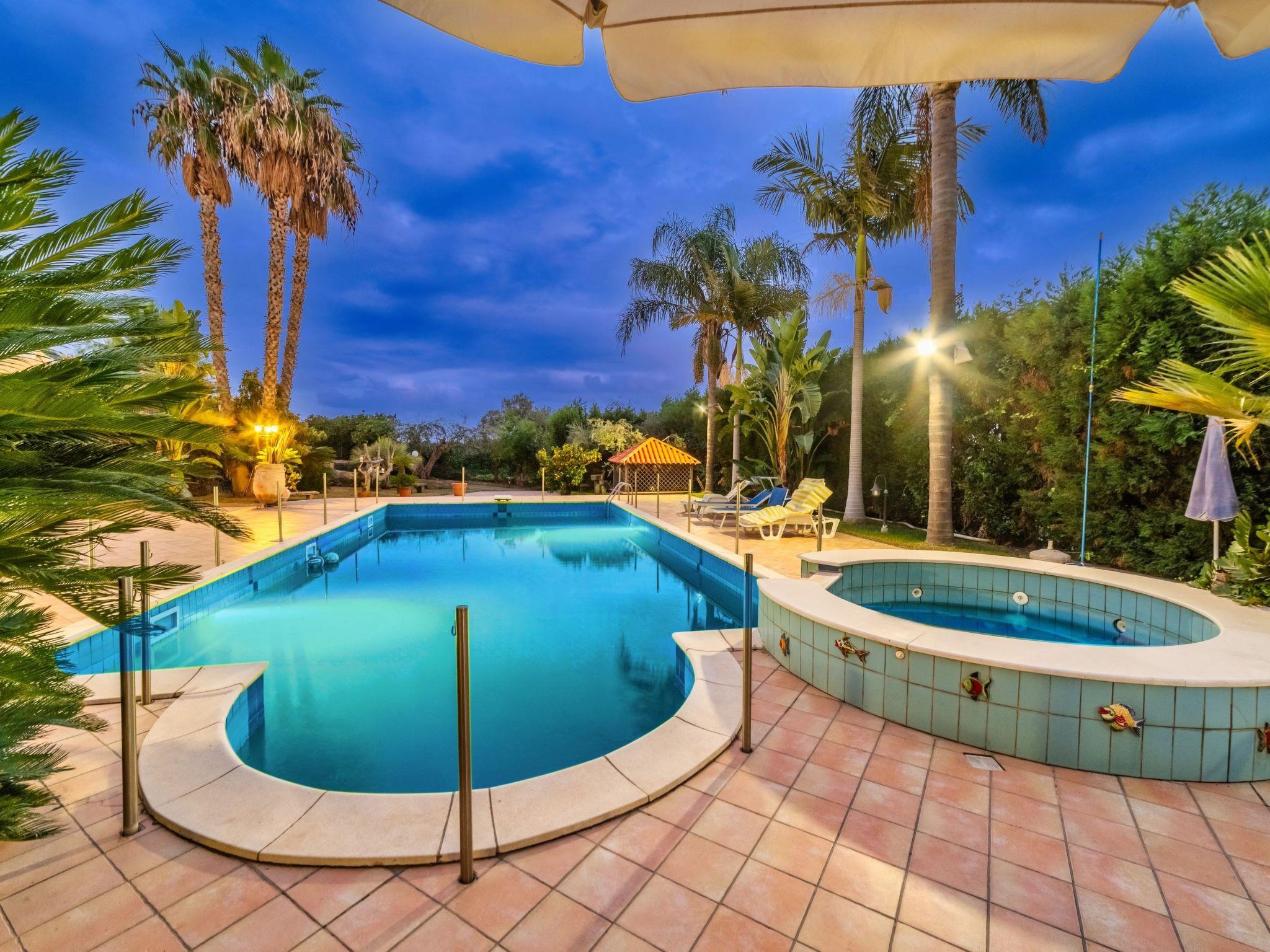 Bedrooms (5) and bathrooms (4): five double bedrooms, one with an additional single bed; 1 bathroom with bathub and Jacuzzi; 1 bathroom with double shower; 1 bathroom with shower; on the exterior we have another bathroom and a shower both adjacent the pool