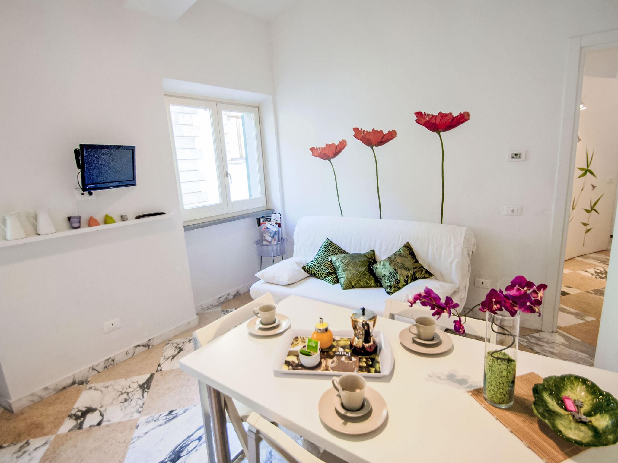 "Bufalini 2 - Raffaello", 2-room apartment 50 m2 on 3rd floor. Living/dining room with 1 double sofabed, satellite TV and air conditioning. 1 large double bedroom with air conditioning. Kitchenette (oven, dishwasher, 4 ceramic glass hob hotplates, microwave, freezer, electric coffee machine). Shower/bidet/WC. Facilities: iron, children's high chair. Internet (WiFi, free). Please note: non-smokers only. Shared driveway with the "Bufalini 3" apartment (IT5270.546.3). IT048017C23GIACFAN