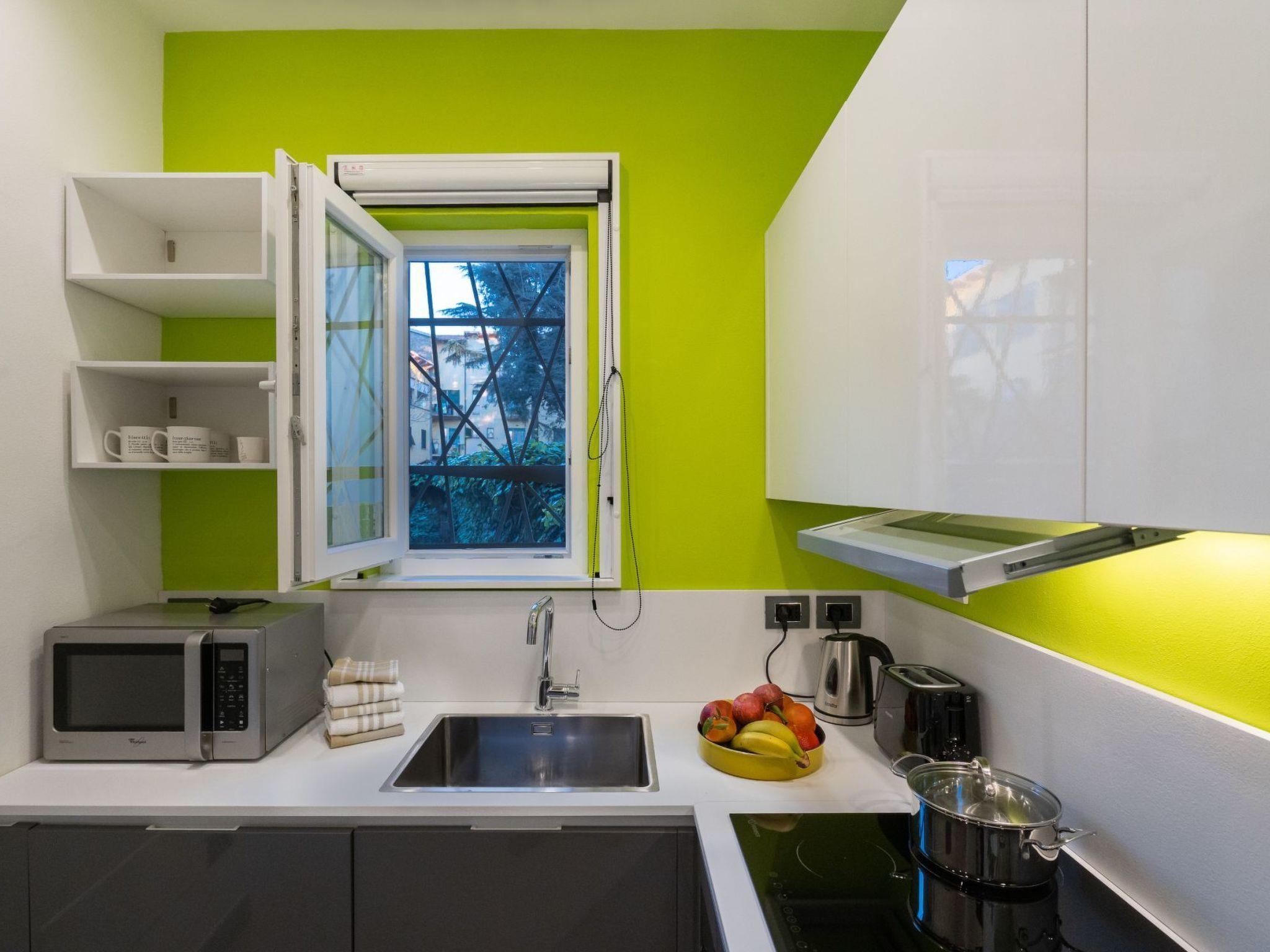 Garden Apartment is a comfortable flat with attention to every detail. This absolutely inviting three-room apartment is located on the ground floor, surrounded by greenery and overlooking a private courtyard that guarantees privacy and tranquillity. The flat can accommodate up to four people, with one double bedroom and one bedroom with bunk beds. Each room is equipped with TV, mosquito nets and air conditioning. The garden flat has a modern, functional bathroom and a kitchen with induction hob, oven, microwave, dishwasher and refrigerator. Outside there is a laundry area. Reliable Wi-Fi with 95.4 downloads.