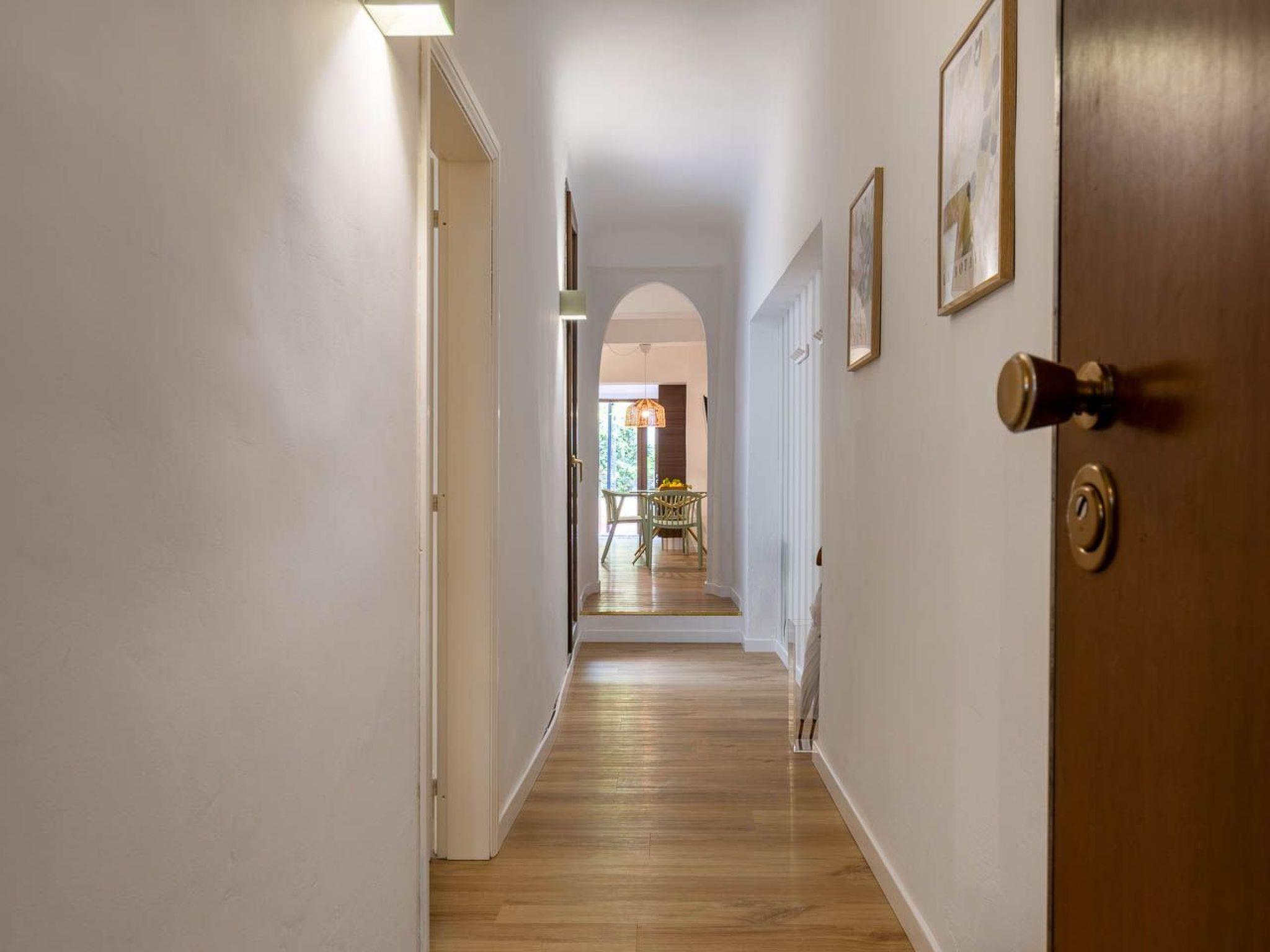 The flat is fully equipped with modern, functional furniture and all the essentials of home. Prepare everything from snacks for walking tours to family-style parties in the fully equipped kitchen and dine together at the table set for six, inside or outside, as you prefer! A 50-inch flat-screen smart TV and a sofa in the living room await you for a well-deserved rest after the day's adventures. The master bedroom includes a private bathroom. The other double room shares a bathroom with the study room. Additional benefits include individual air conditioning, free superfast WiFi with fibre, dishwasher and washing machine.