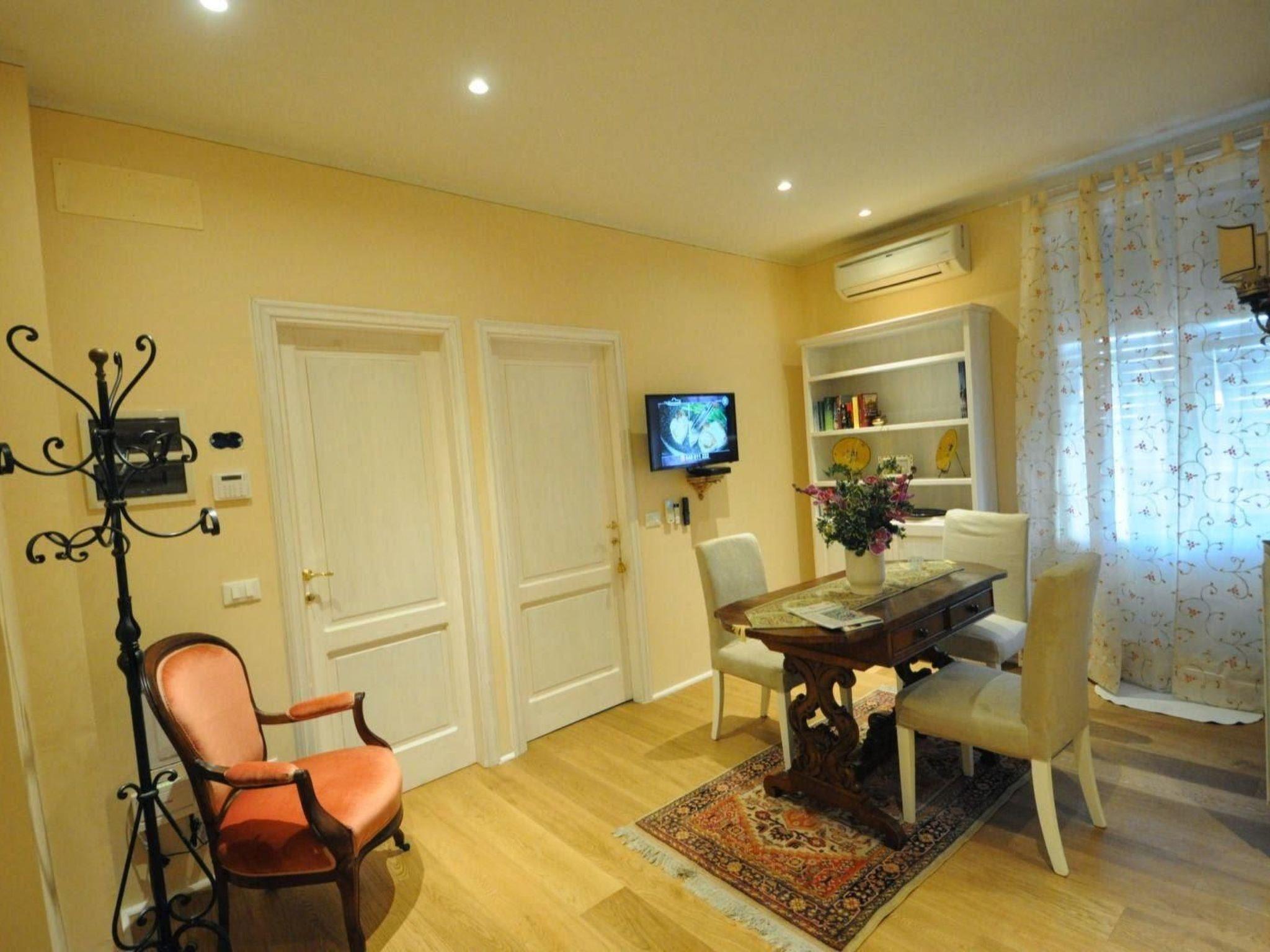 Located in the heart of Florence, just 250 metres from Piazza del Duomo, this beautiful and comfortable one-bedroom apartment (25 sqm + 8 sqm terrace) is suitable for 3 people. Located on the 4th floor of a historical building (with lift), the flat enjoys a wonderful view of the Church of Santa Croce. Very well furnished in ancient and modern style, the flat consists of a living room with a single sofa bed, a fully equipped kitchenette (fridge, oven, toaster, coffee machine, microwave, dishwasher, washing machine), a double bedroom and a bathroom with shower. Beautiful terrace with panoramic view. At guests' disposal: air conditioning, Wi-Fi internet and satellite TV with USB connection. Mosquito nets. Situated in an excellent central location, surrounded by restaurants and shops, the flat is ideal for fully enjoying Florence. All the most important monuments are within walking distance in a few minutes: the Duomo is 250 metres away, Santa Croce 400 metres, Piazza Signoria 750 metres, the Uffizi 800 metres, Ponte Vecchio 900 metres. The main railway station is about 1 km away.