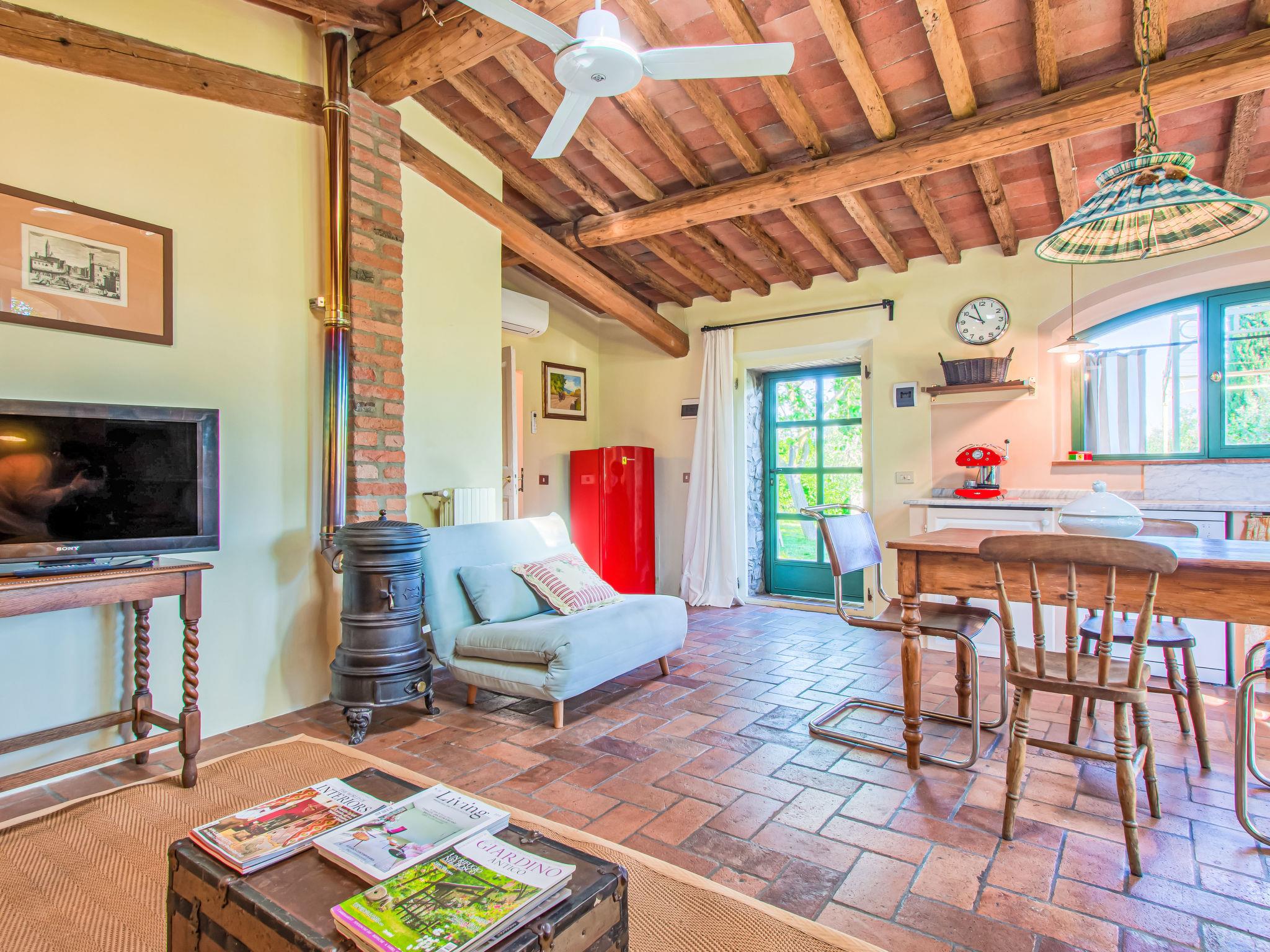 "Il Fienile", 2-room house 45 m2, on the ground floor. Comfortable and cosy furnishings: living/dining room with 1 sofabed, TV, air conditioning and forced-air heating. Exit to the garden. 1 double bedroom. Kitchenette (4 hot plates, oven, dishwasher, toaster, kettle, freezer). Shower/bidet/WC. Garden 80 m2. Terrace furniture, barbecue (portable). Panoramic view of the countryside. Facilities: washing machine, hair dryer. Internet (WiFi, free). Please note: smoke alarm, fire extinguisher. IT048041C2D7PEBJPT